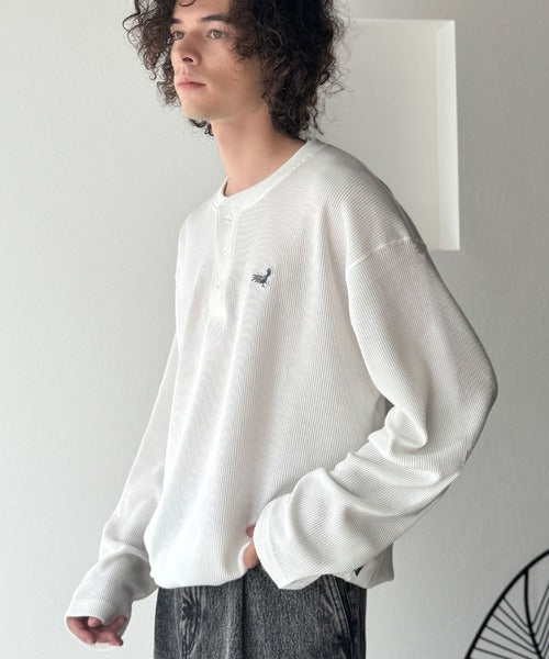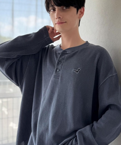 「Pigment-Dyed Thermal Henley T-Shirt/