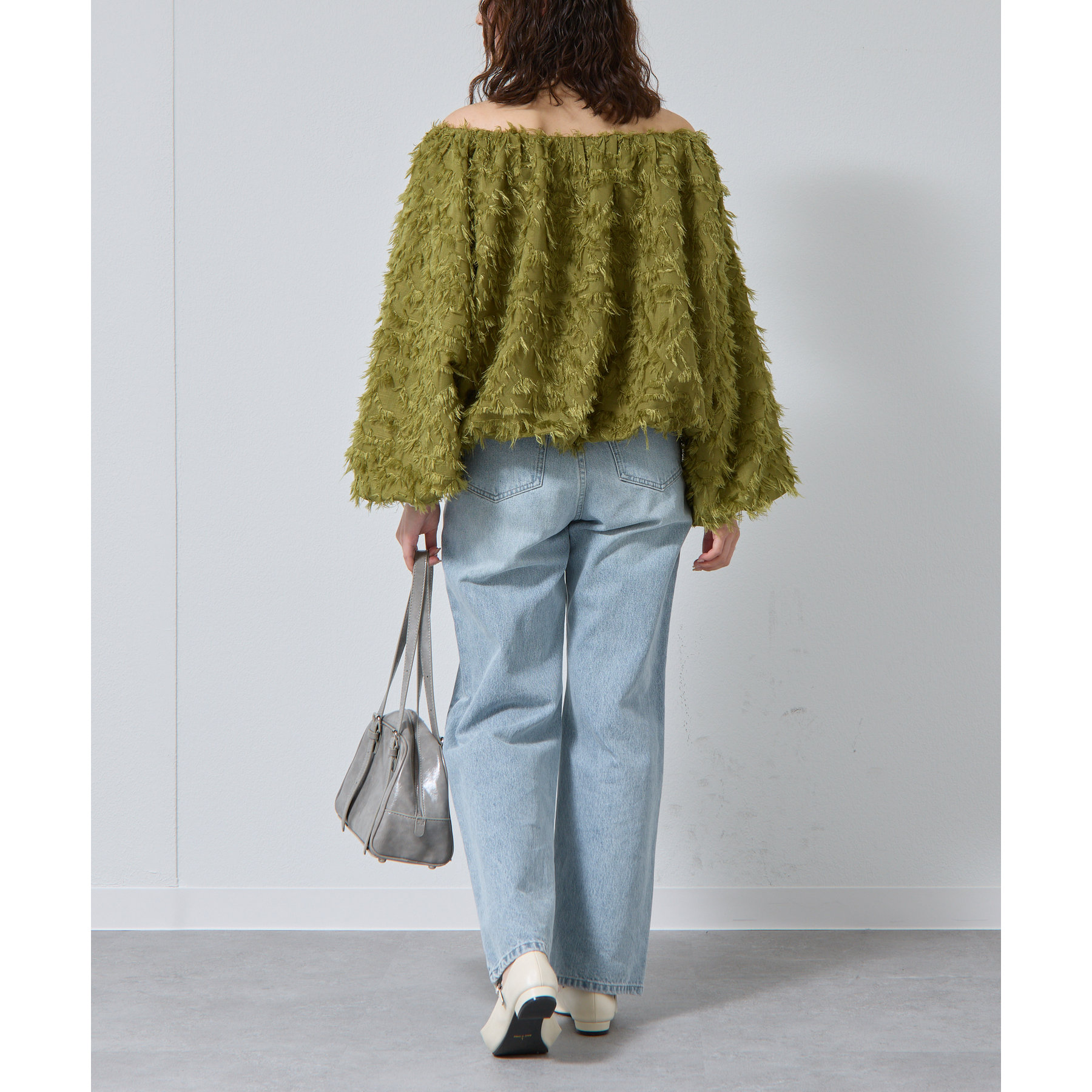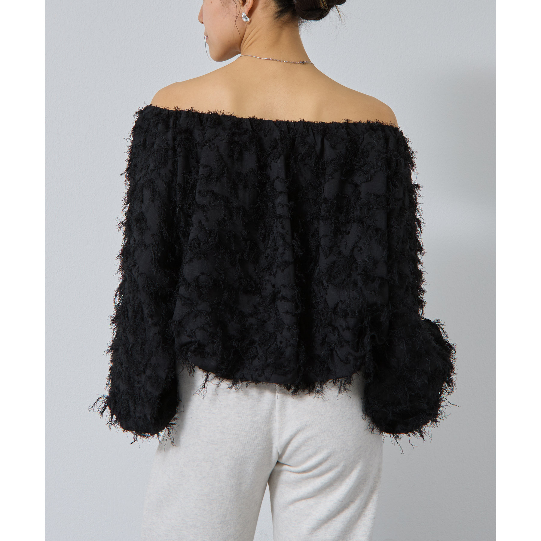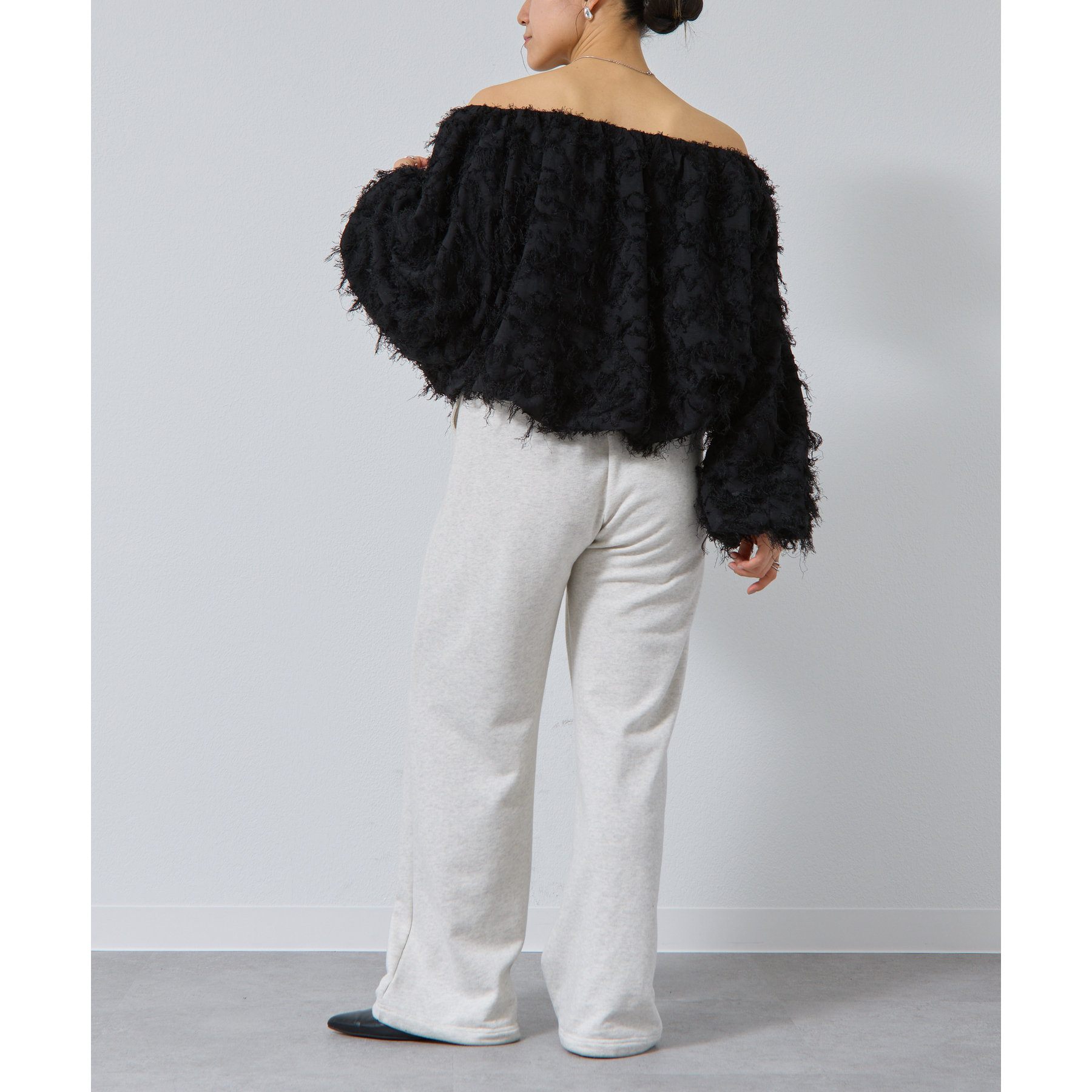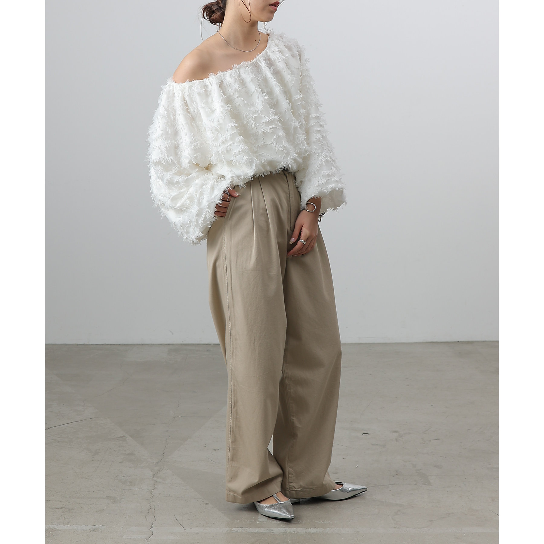 フリンジジャガードオフショルトップス