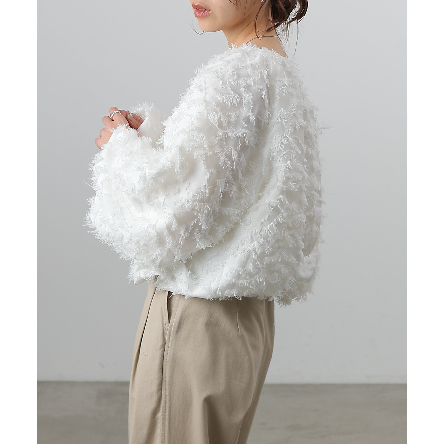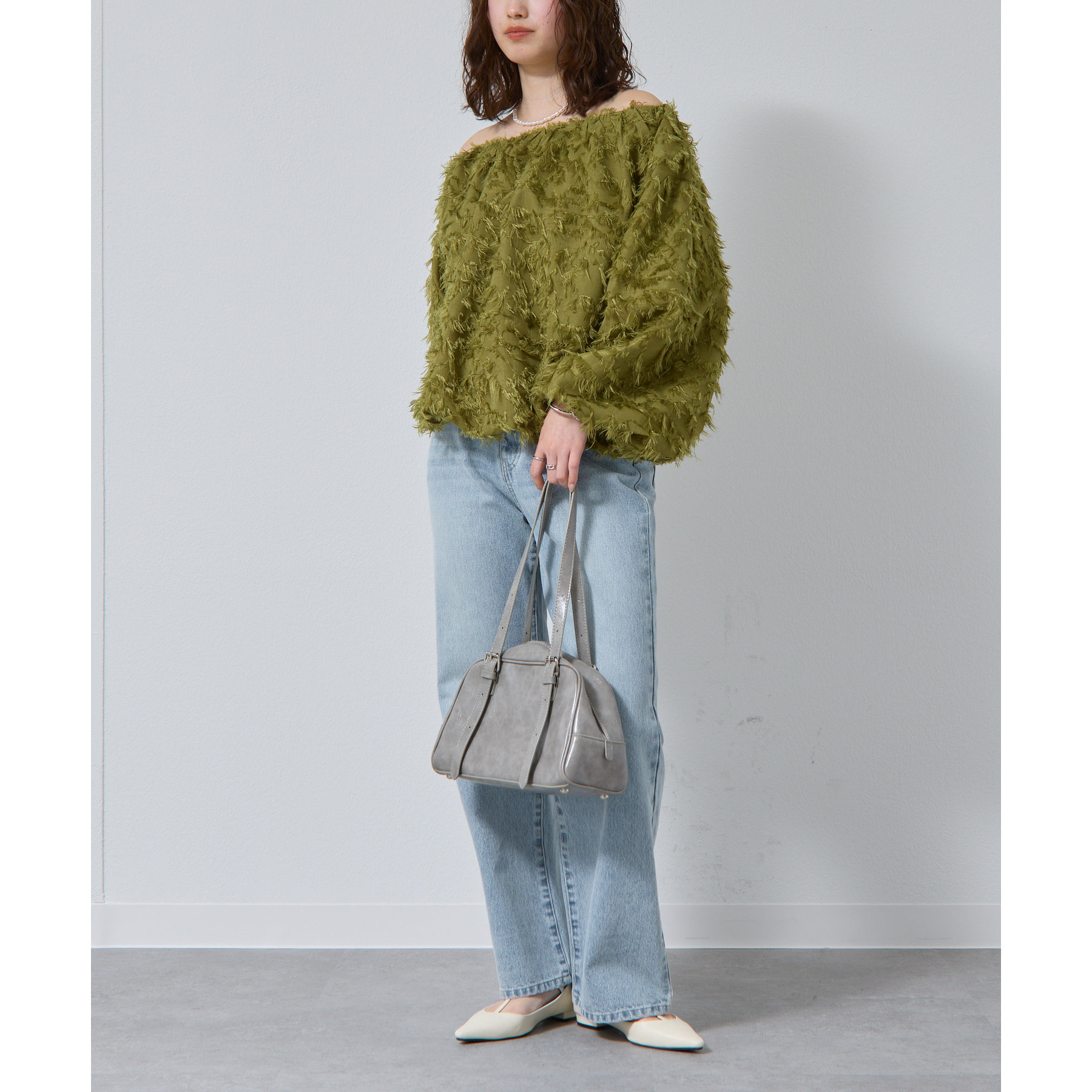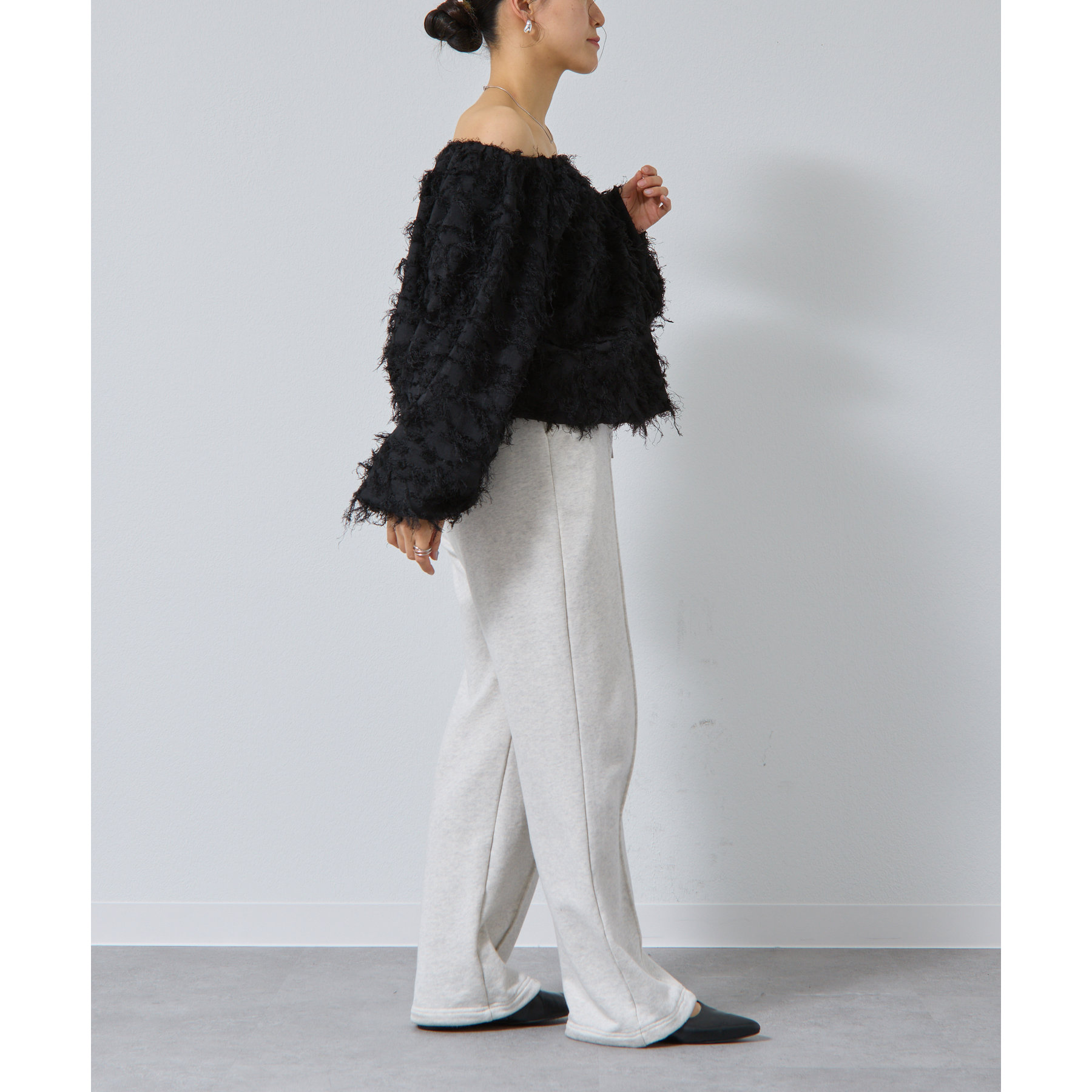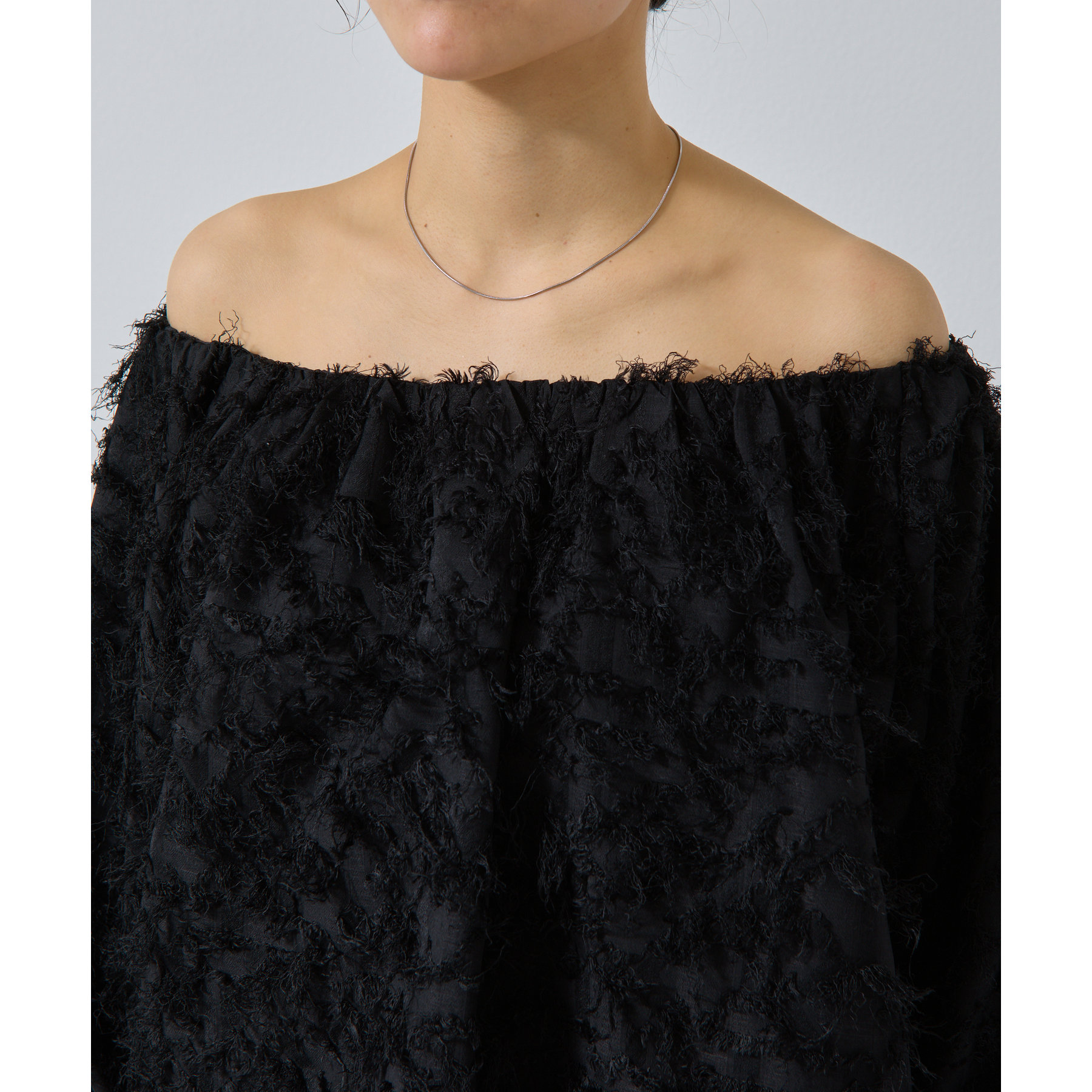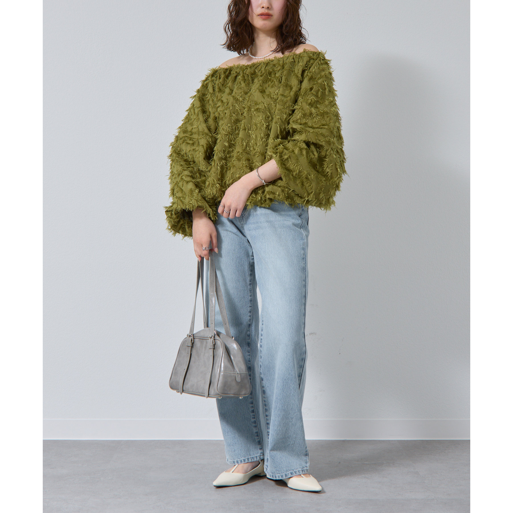 フリンジジャガードオフショルトップス