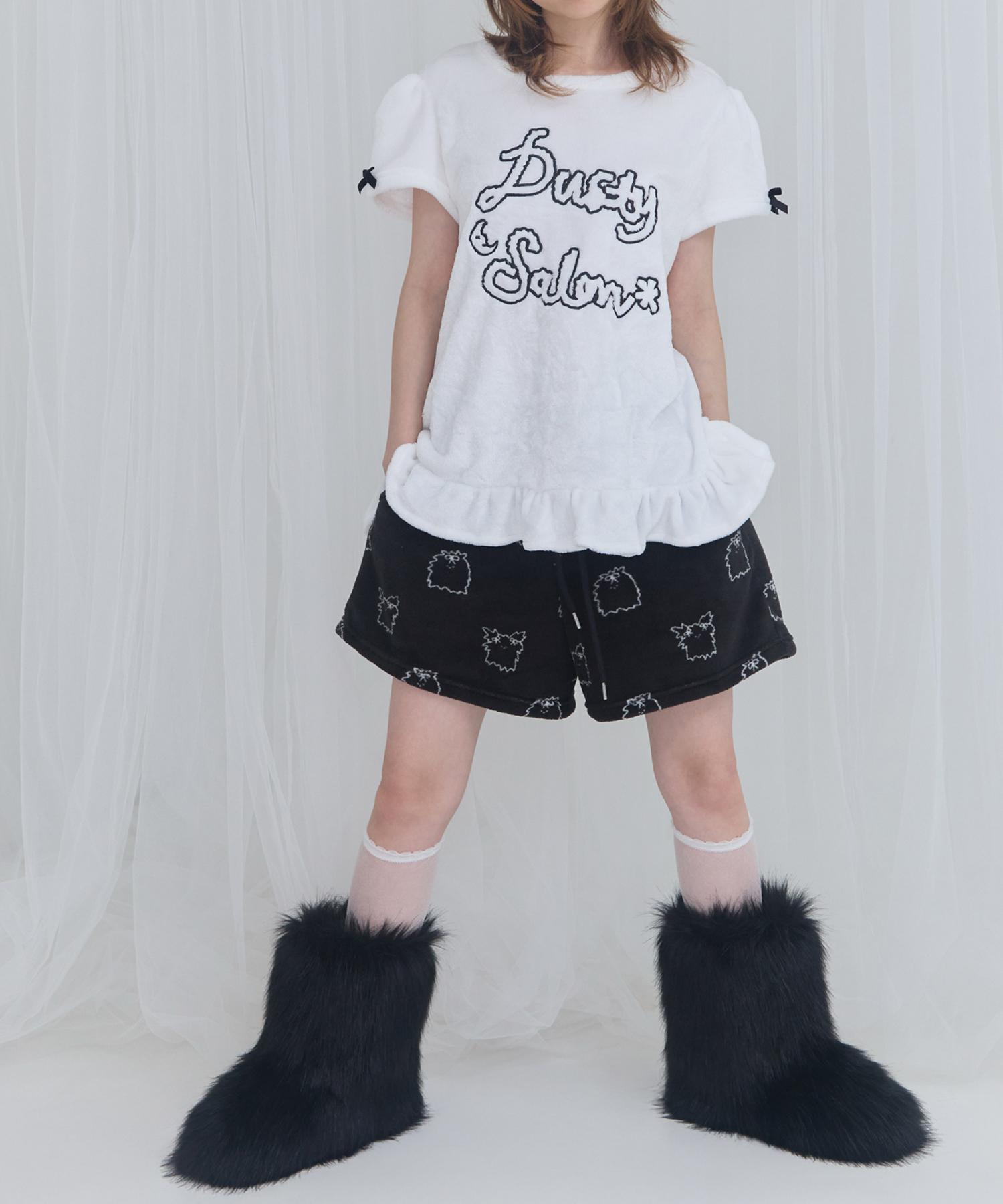 [FANCY X DUSTY] Zzz DUSTY SALON PAJAMA SHORT PANTS (BLACK) F25NM1017