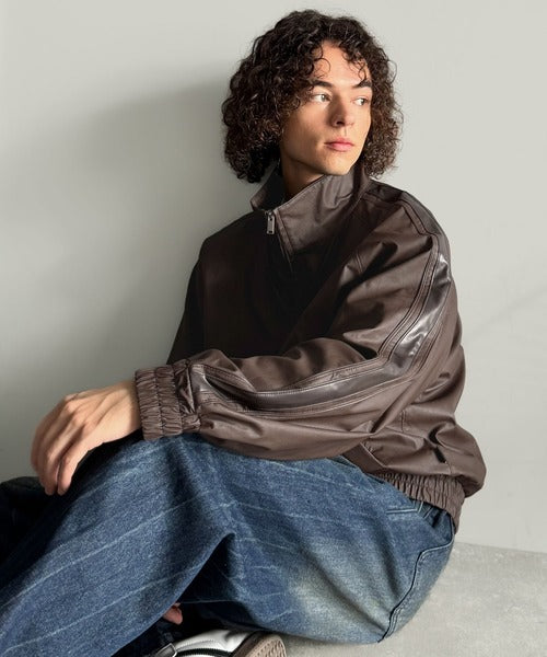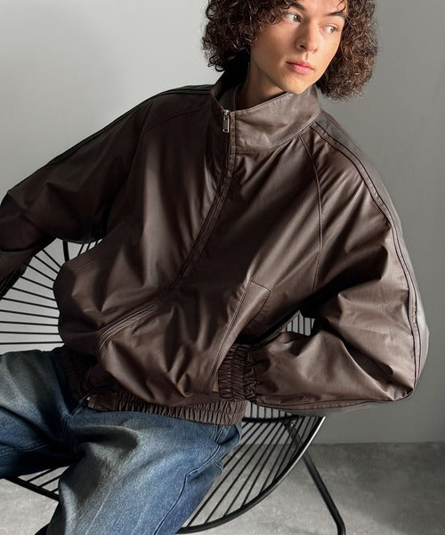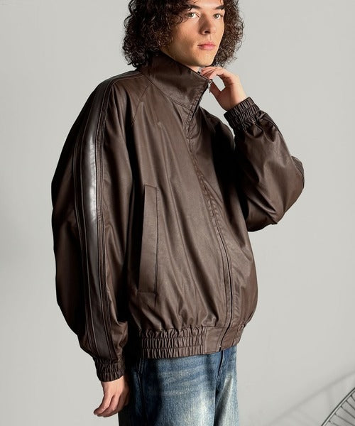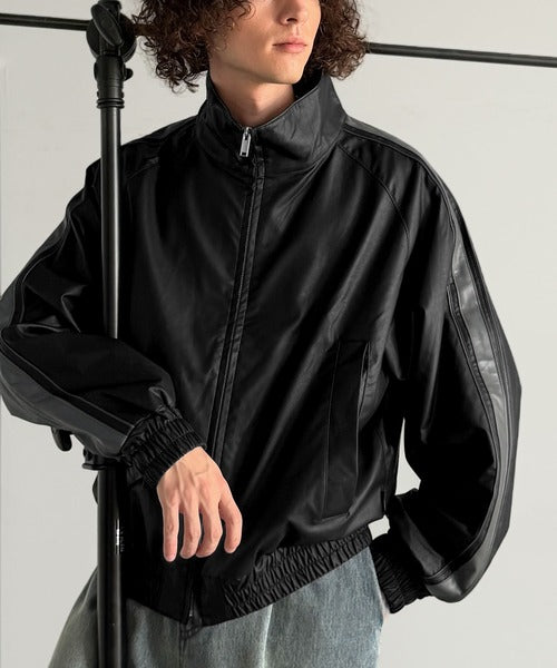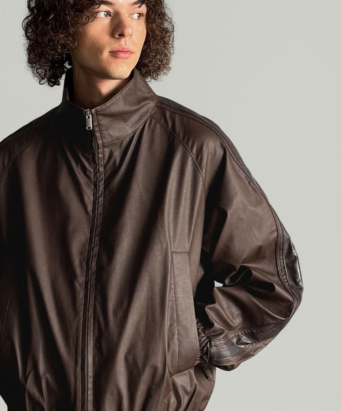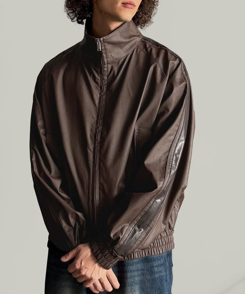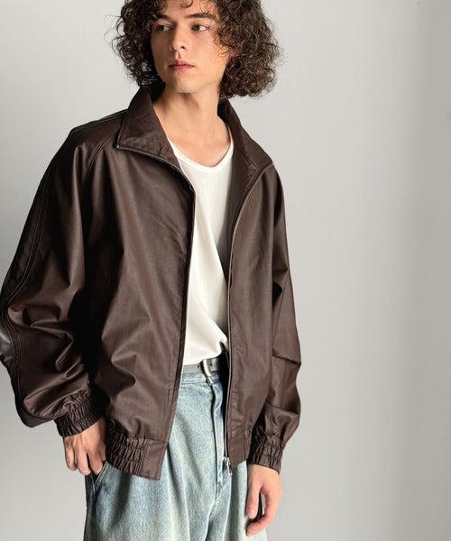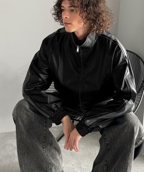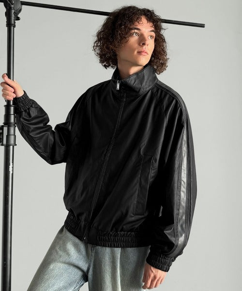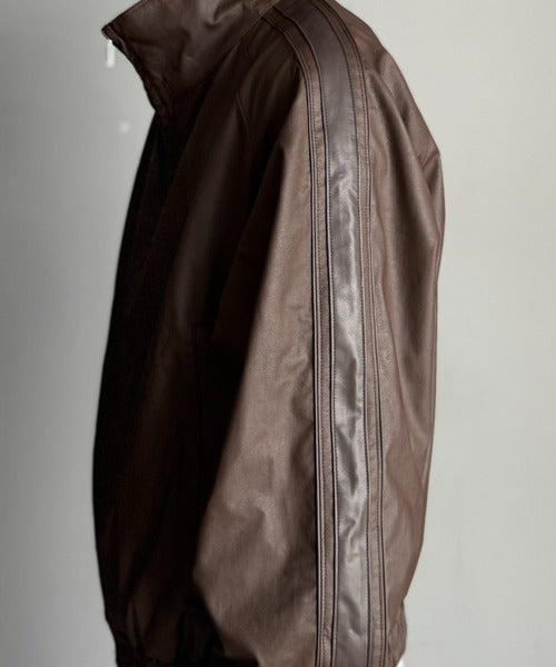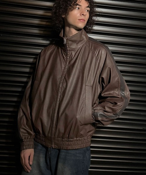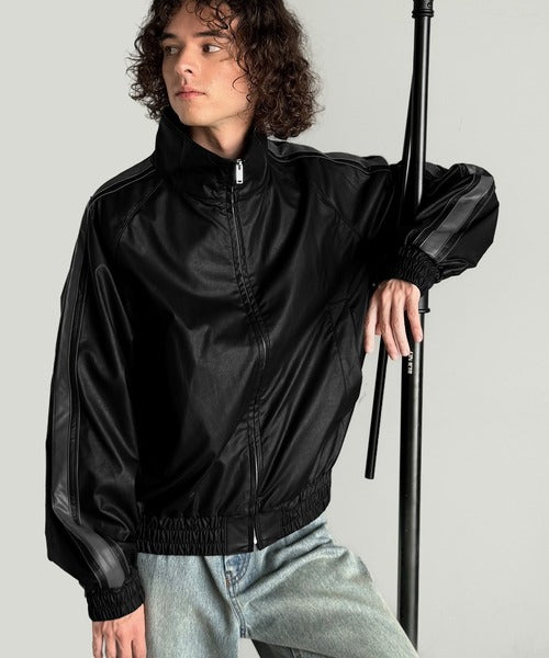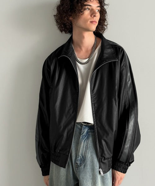 「High-Neck Leather Track Jacket/ハイネックレザートラックジャケット」