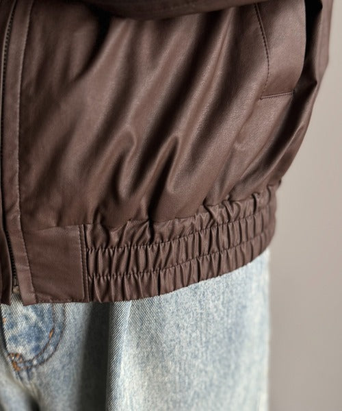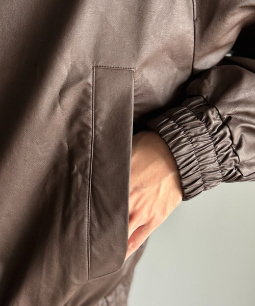 柔らかなフェイクレザーを採用し、軽快で着回しやすい一着。
