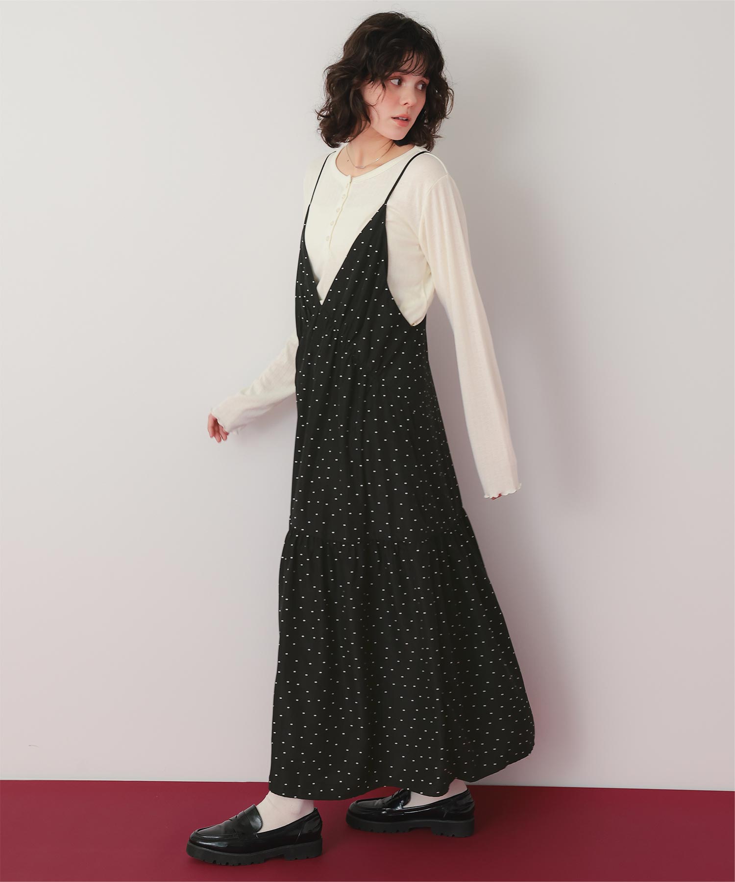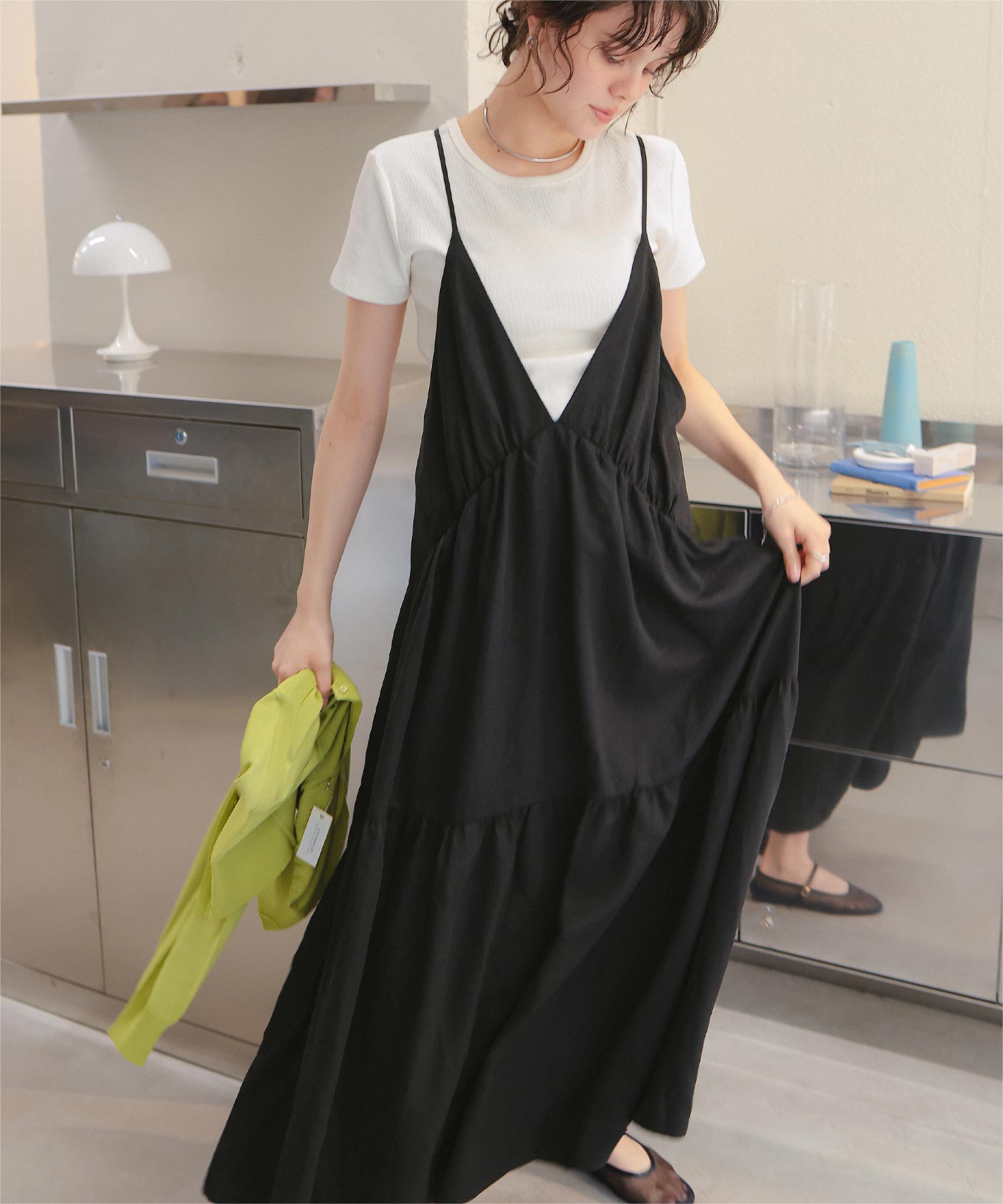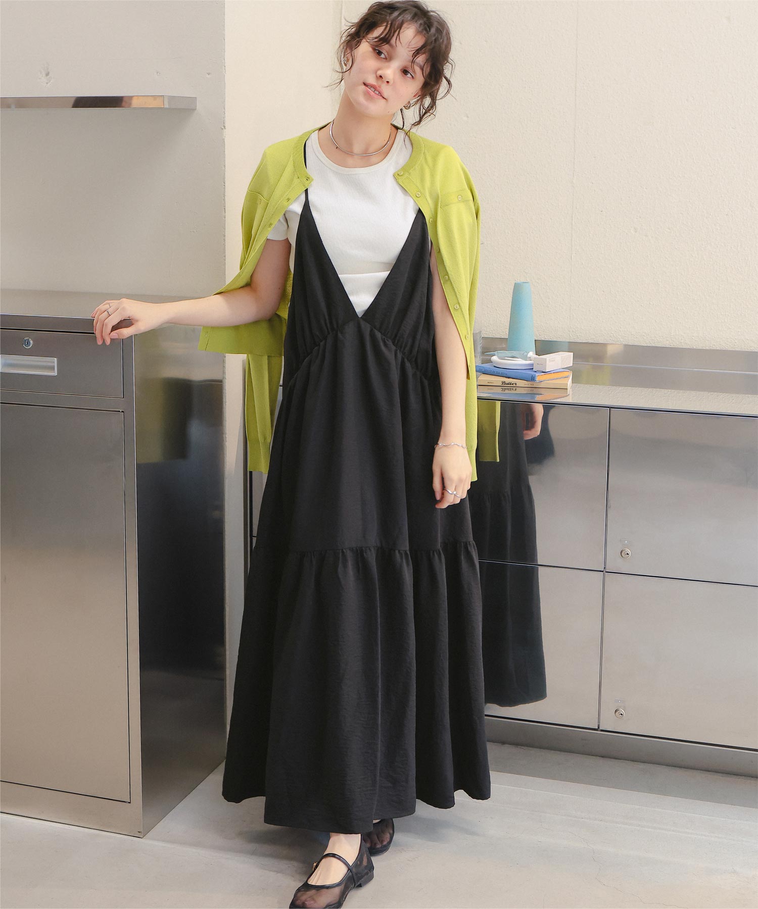 Vネックフレアシルエットキャミソールワンピース
