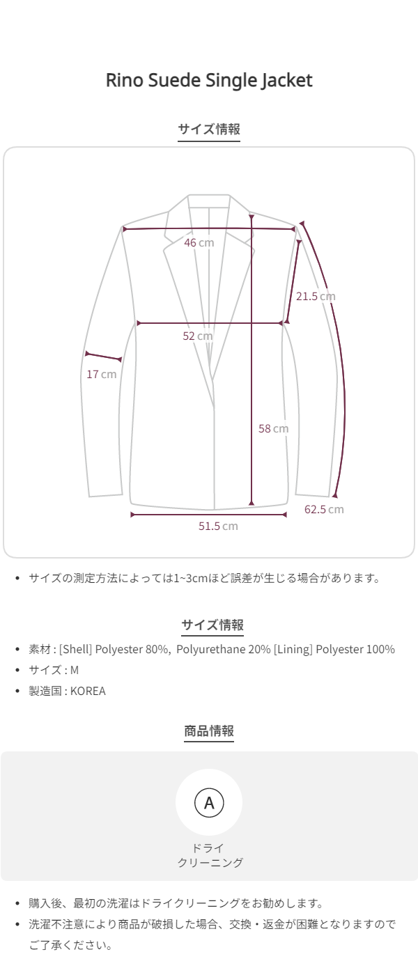 クリーンなシルエットが魅力の Rino Suede Single Jacket(リノ スエード シングルジャケット) です。