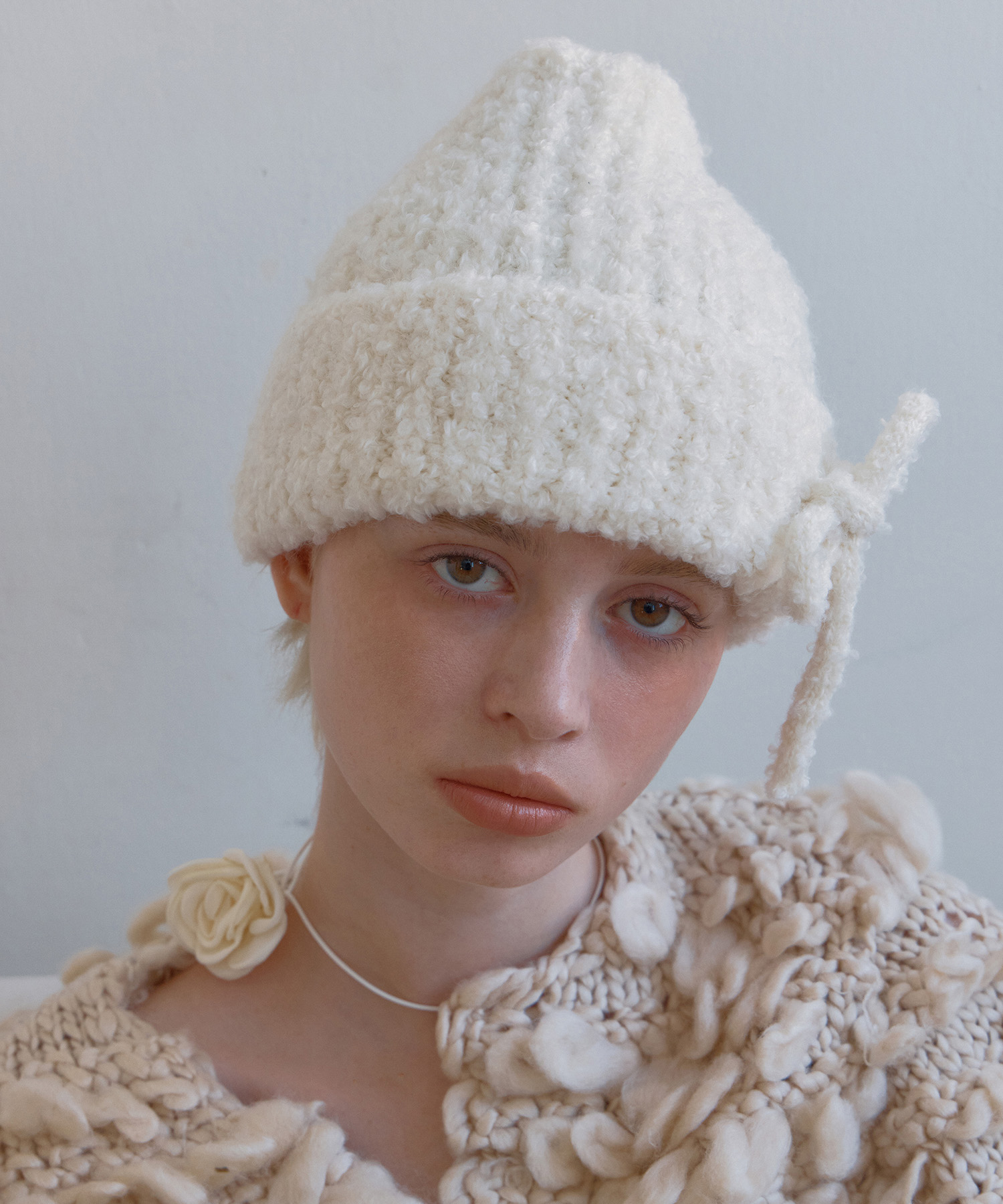 RIBBON BEANIE / MOHAIR BOUCLE / IV(冬 リボン ビニ)