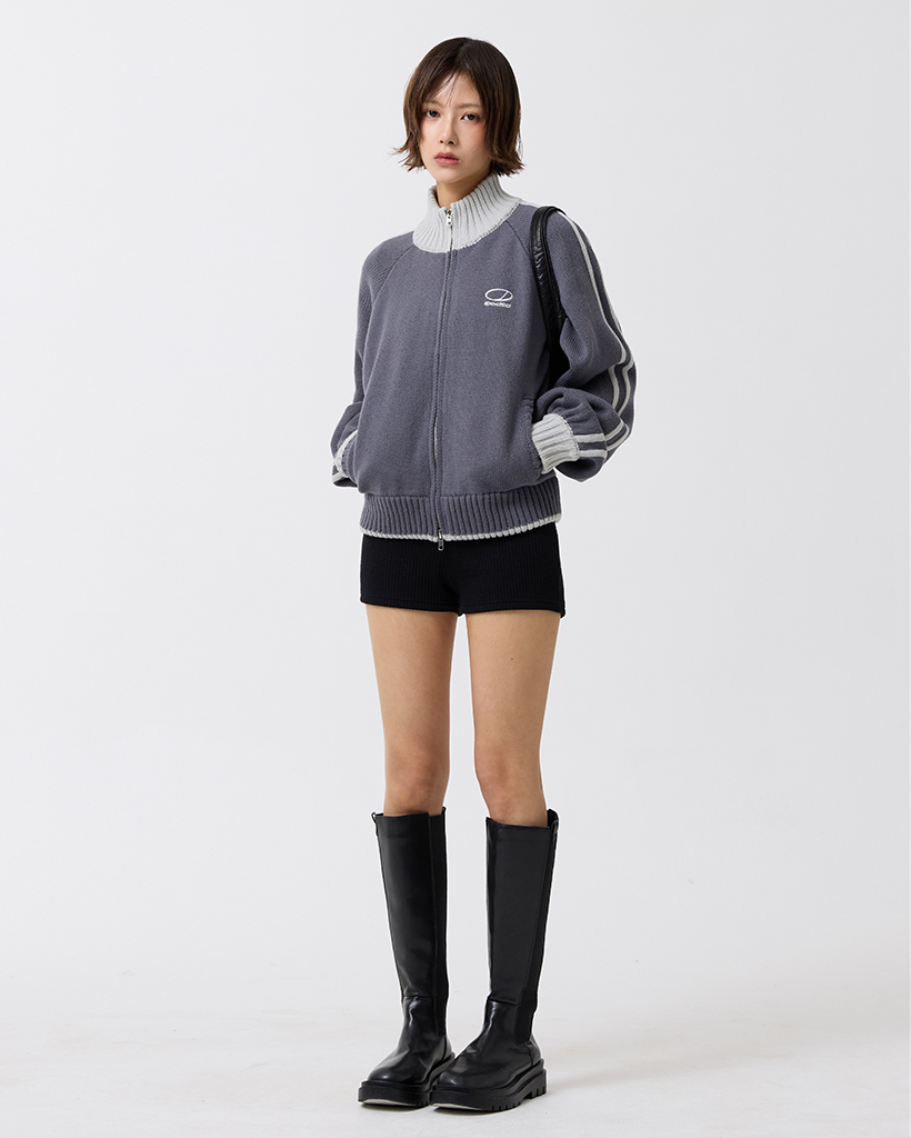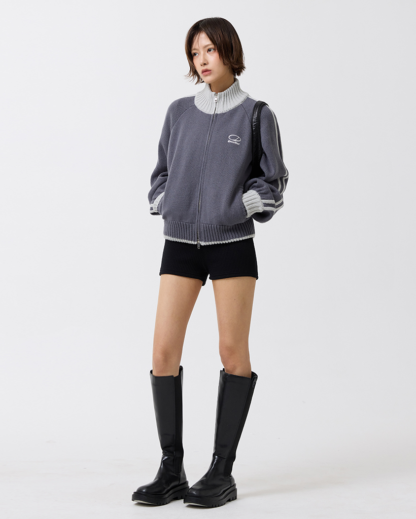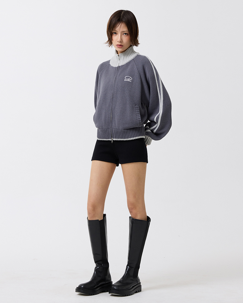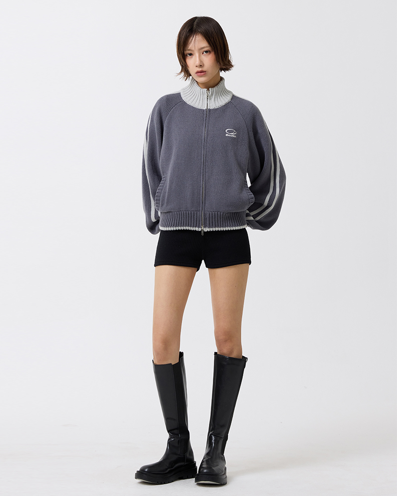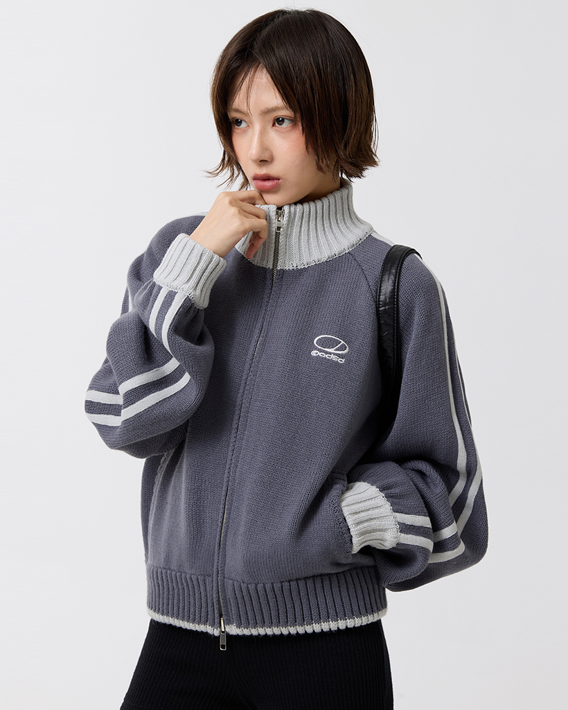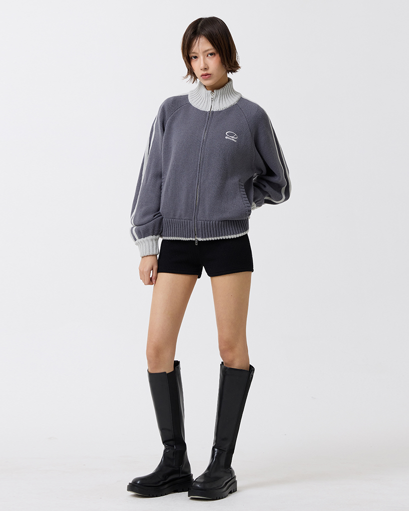 Sporty Track Semi Crop Knit Zip-Up - GRAY