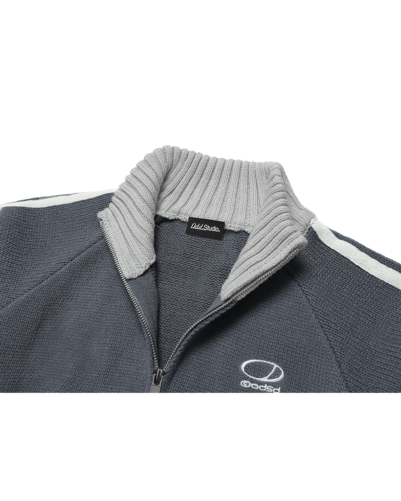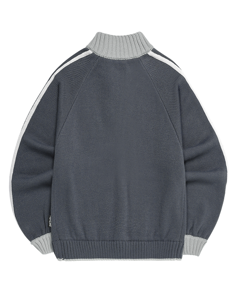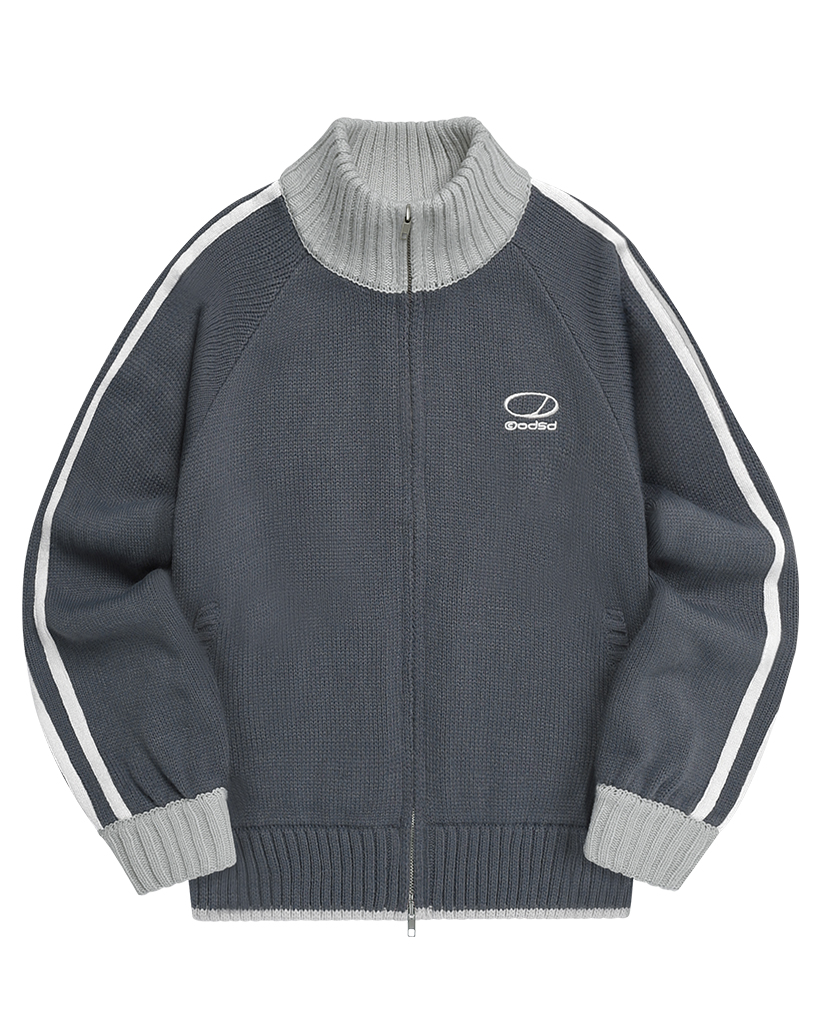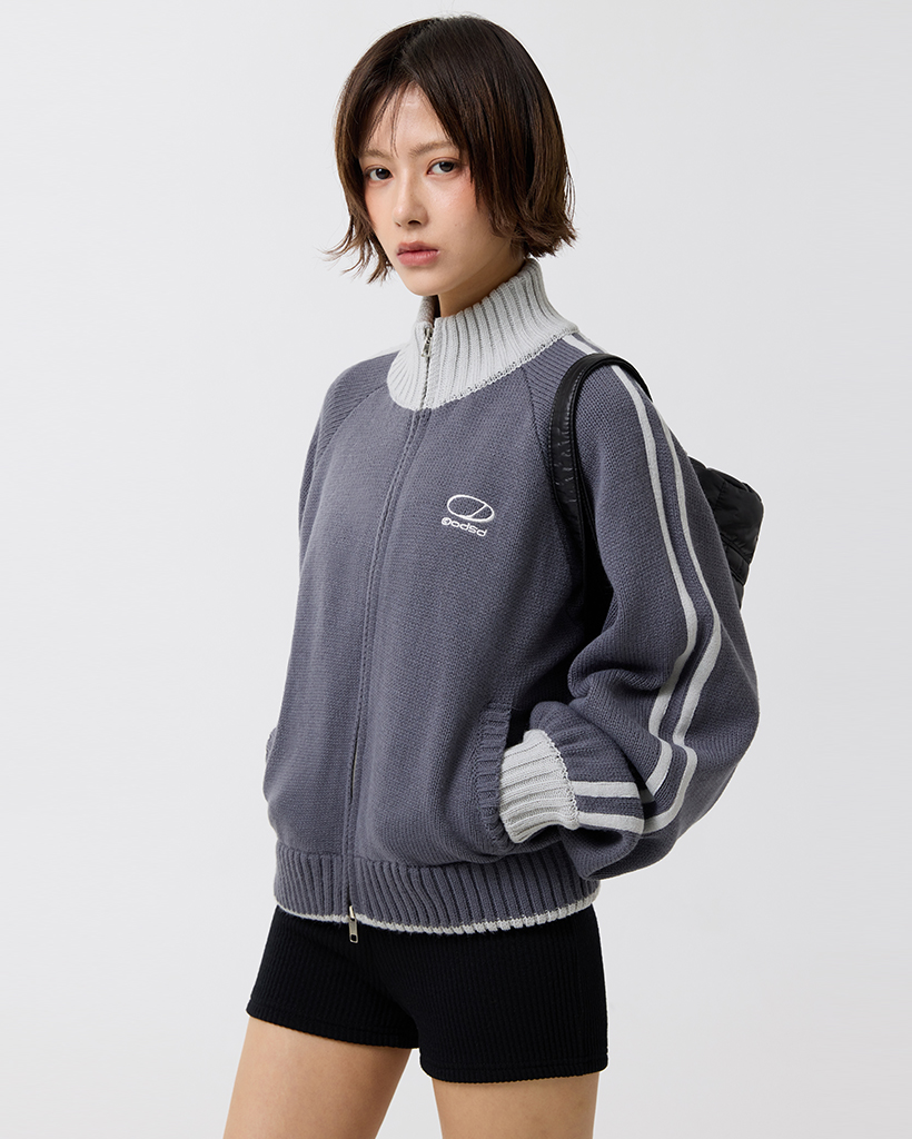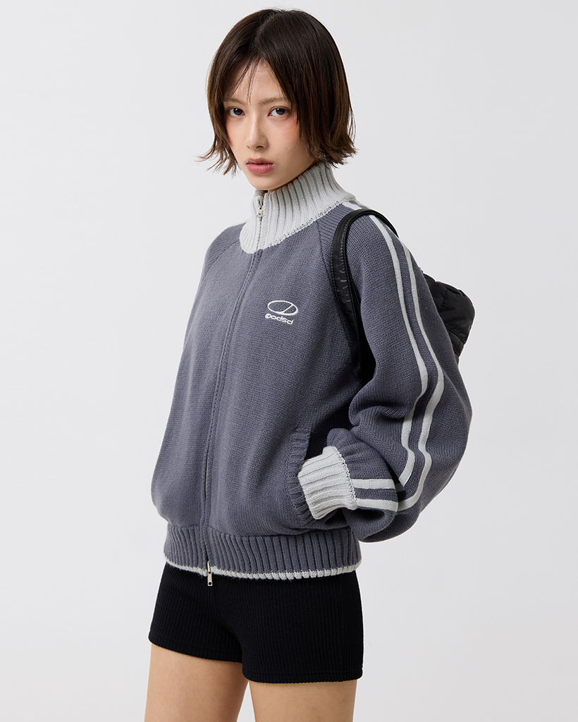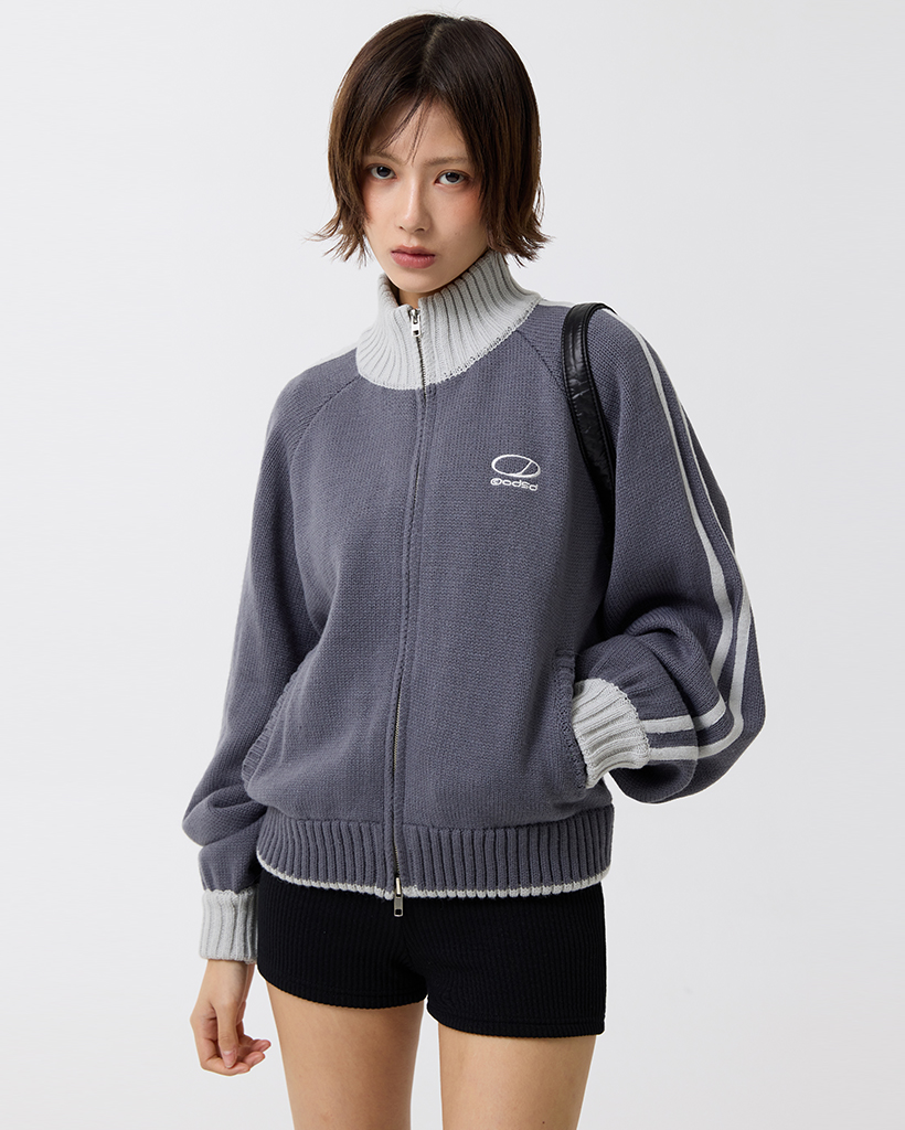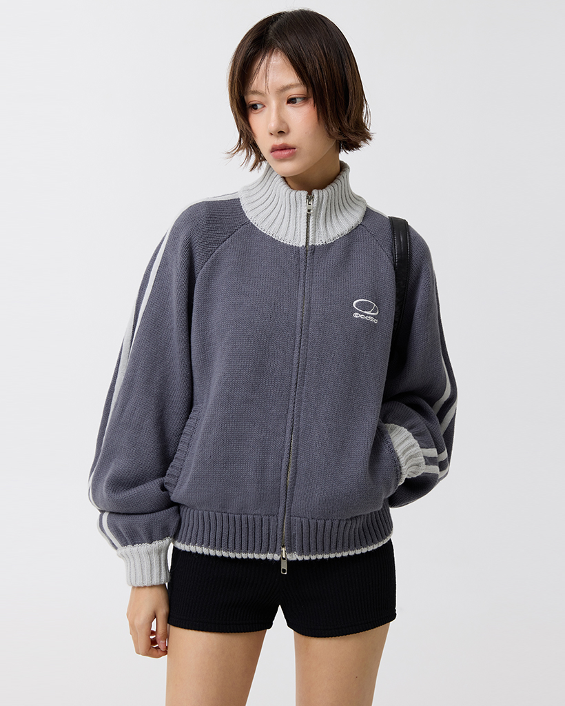 Sporty Track Semi Crop Knit Zip-Up - GRAY
