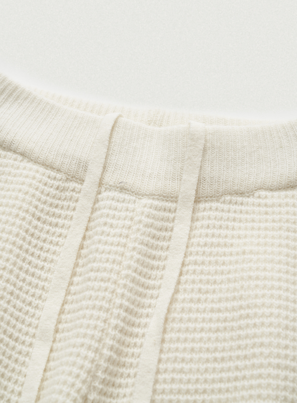 リラックスフィットのトレーニングパンツタイプで、ウエスト部分には調整可能なドローストリングが付いています。