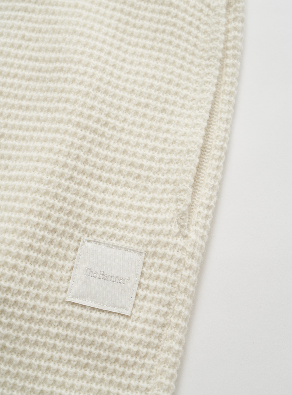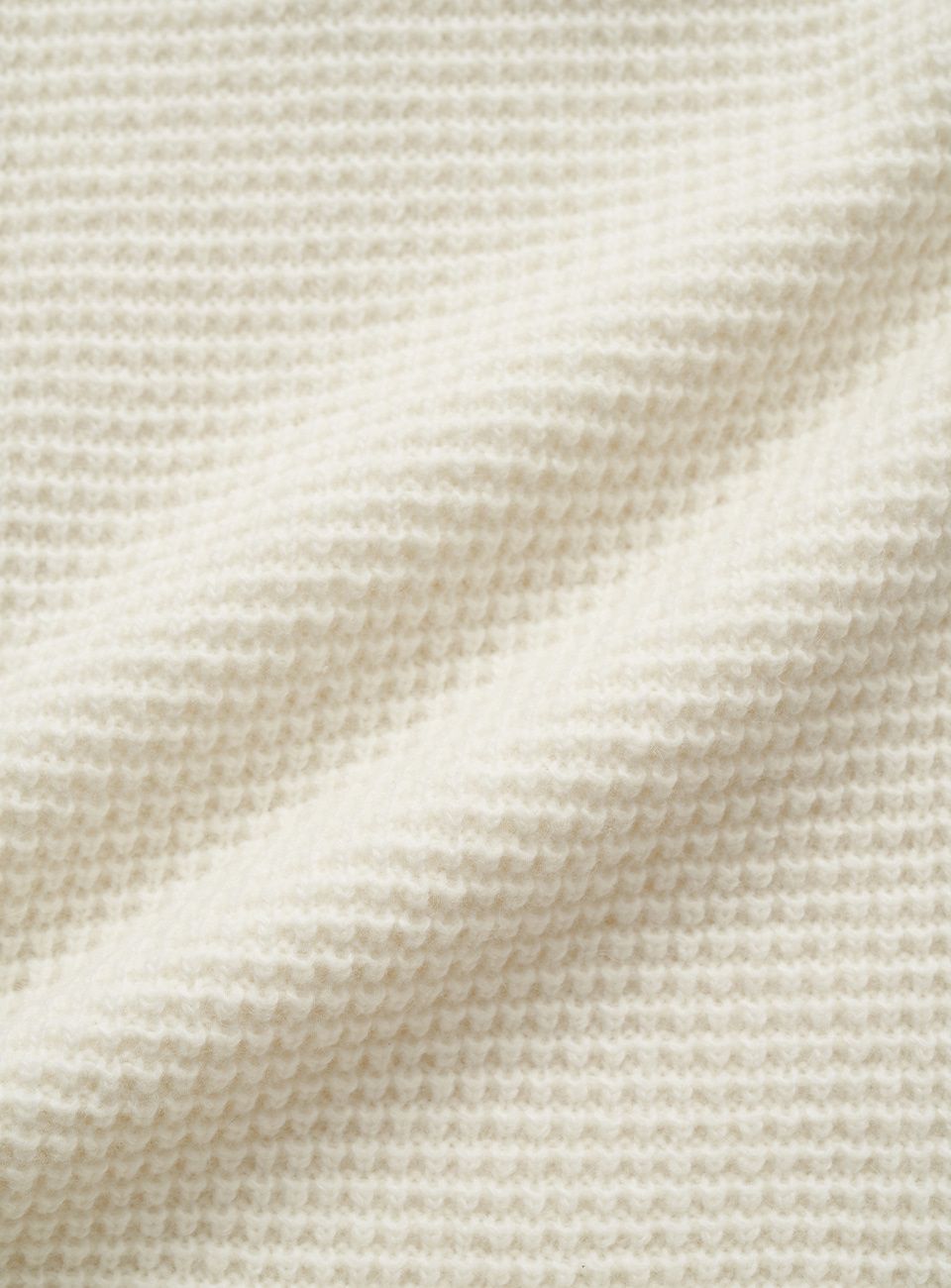 "アイボリーカラーと生地特有の柔らかなテクスチャーが際立つカシミヤ・ウール混紡ファブリック。
