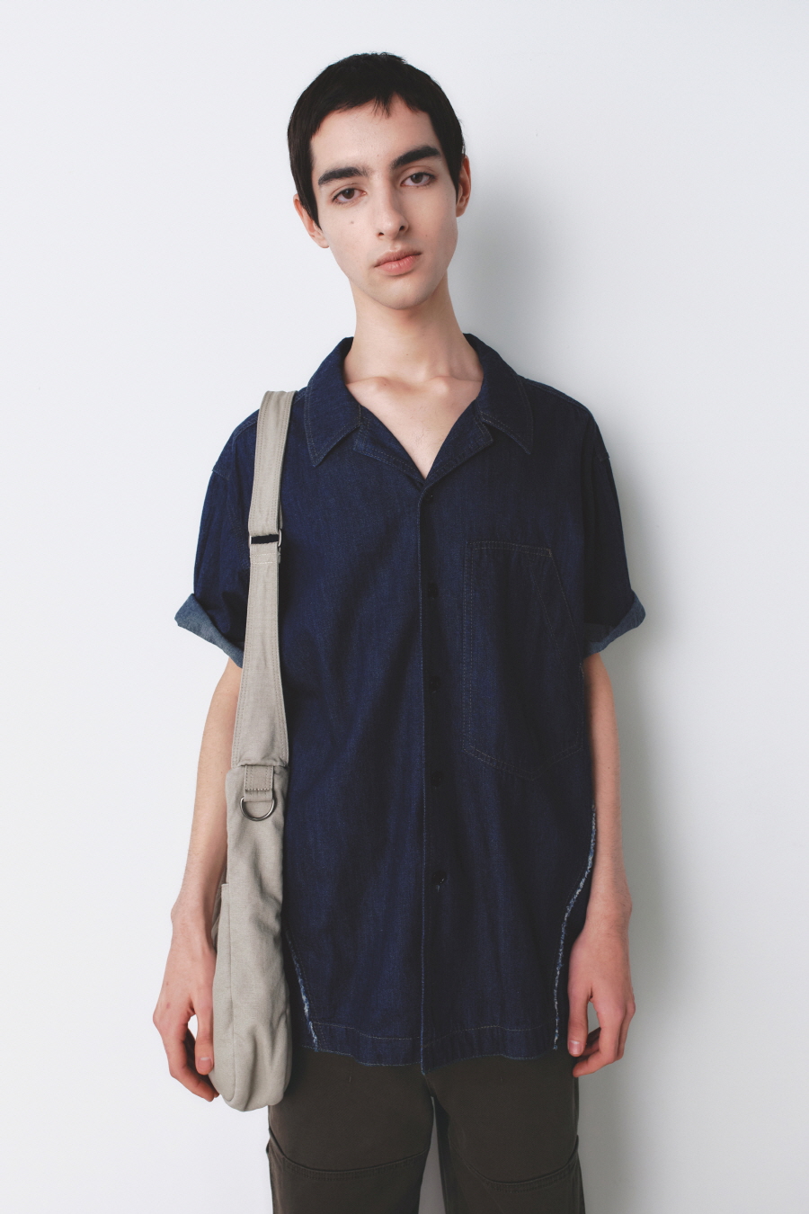 カットオフ リネン デニム シャツ INDIGO BLUE