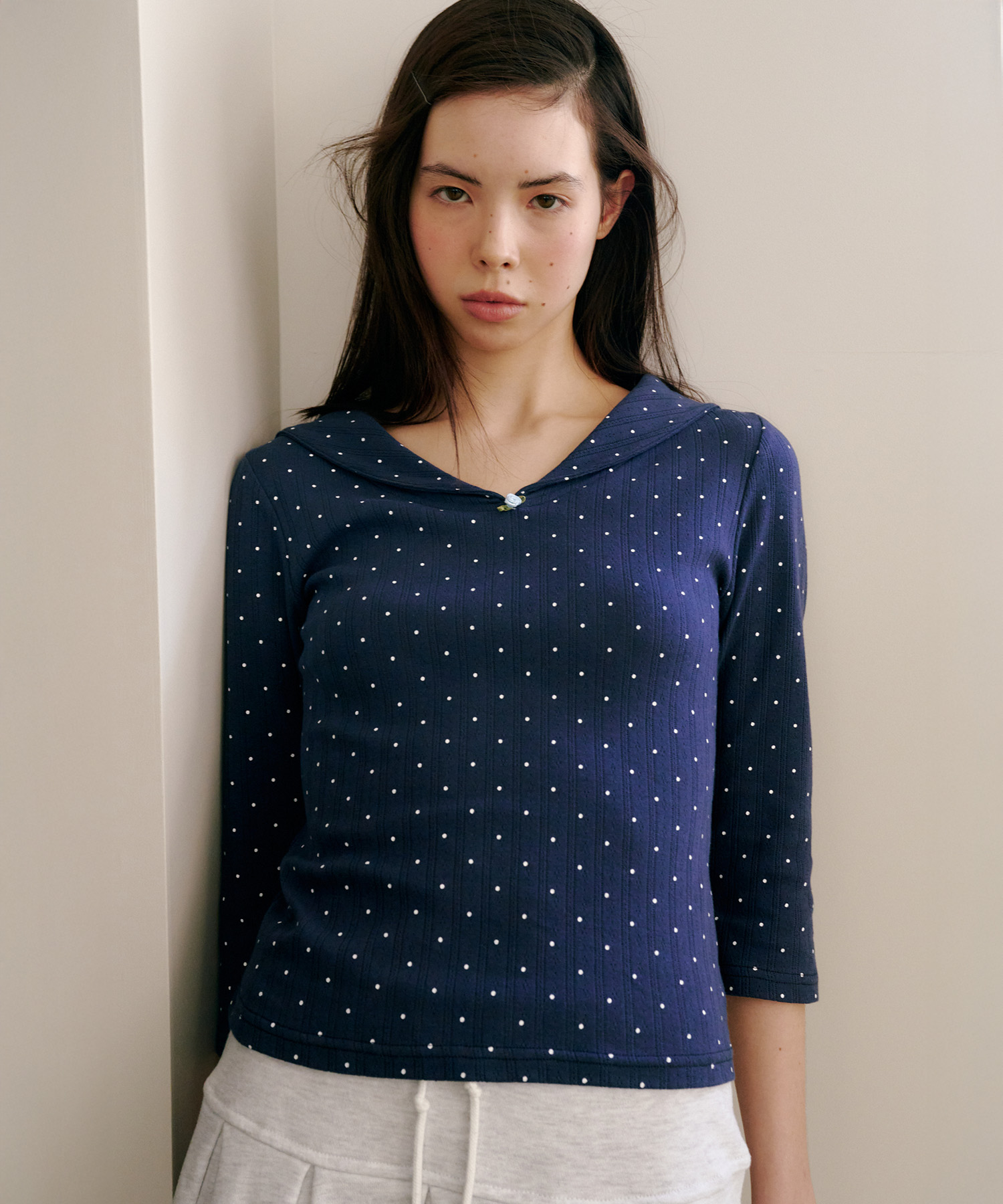 Eyelet Sailor Tee, Navy