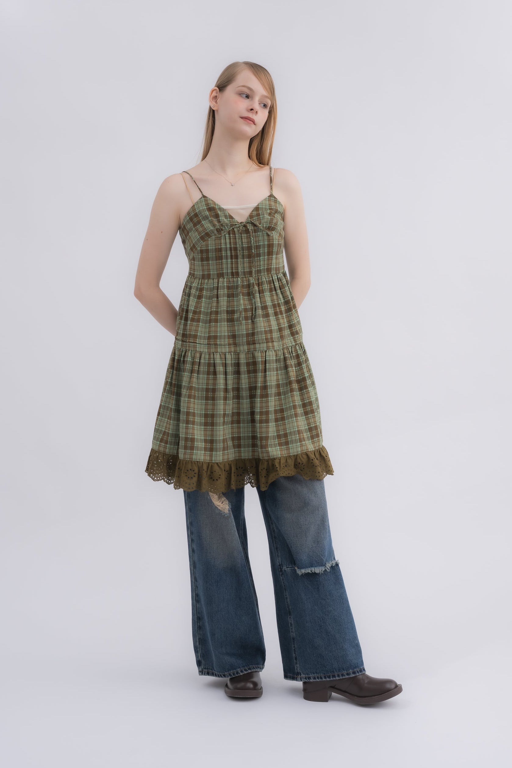 レイヤードコーデを楽しめるコットンキャミワンピース