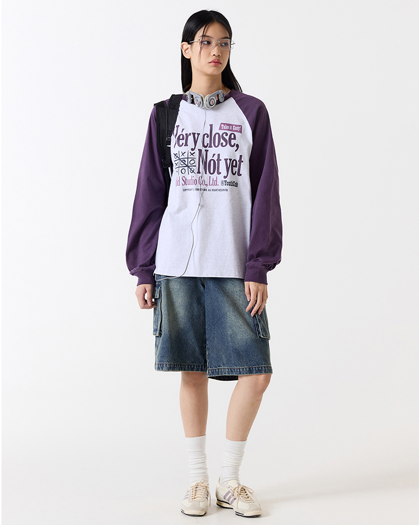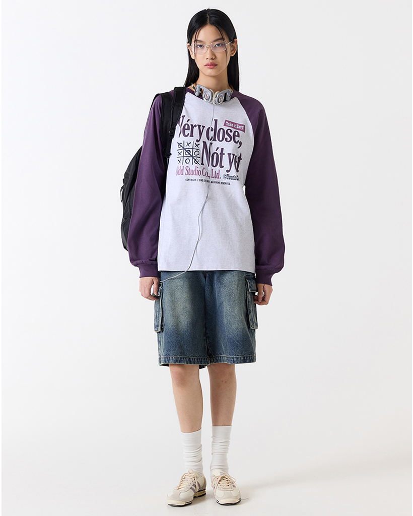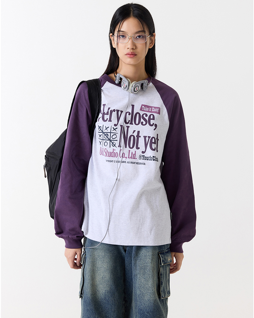 [Kアイドル着用]VeryCloseRaglanOverfitLongSleeve-WHITEMELANGE/ PURPLE