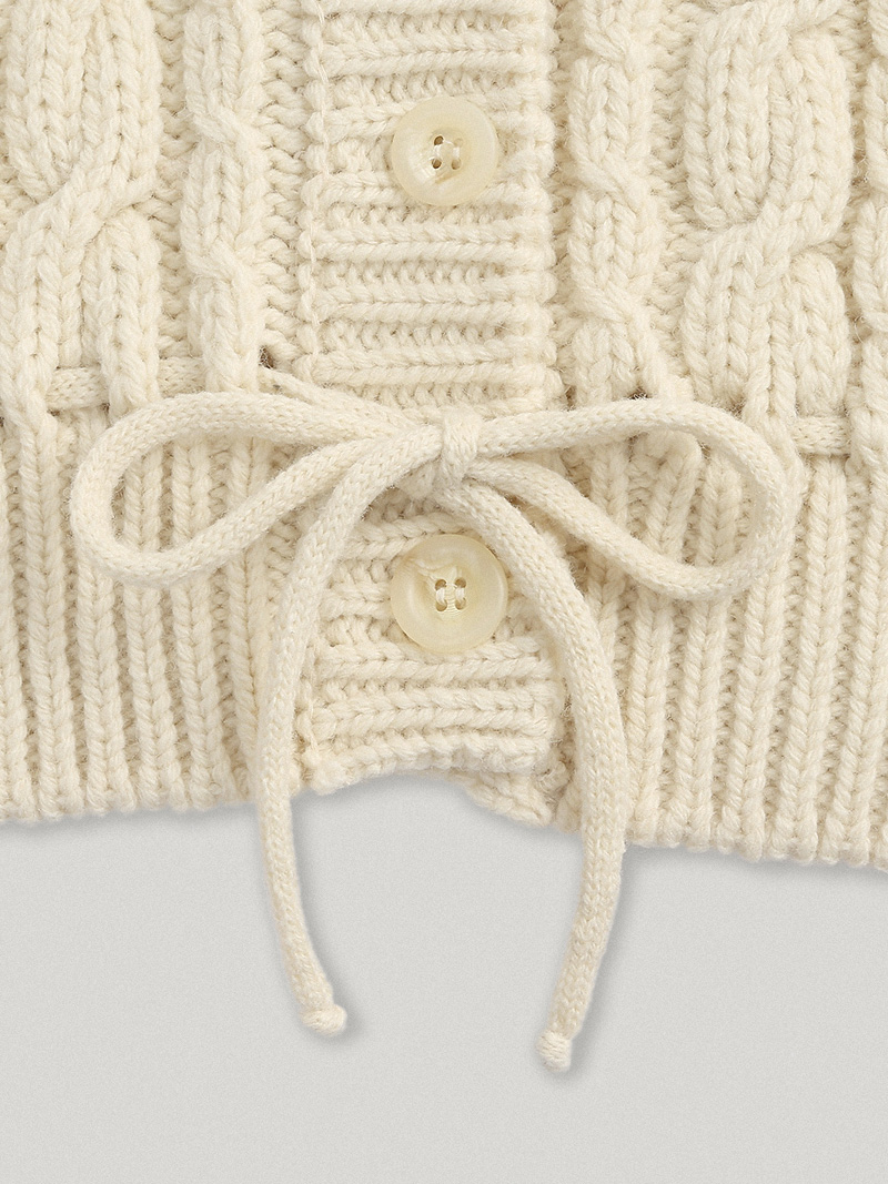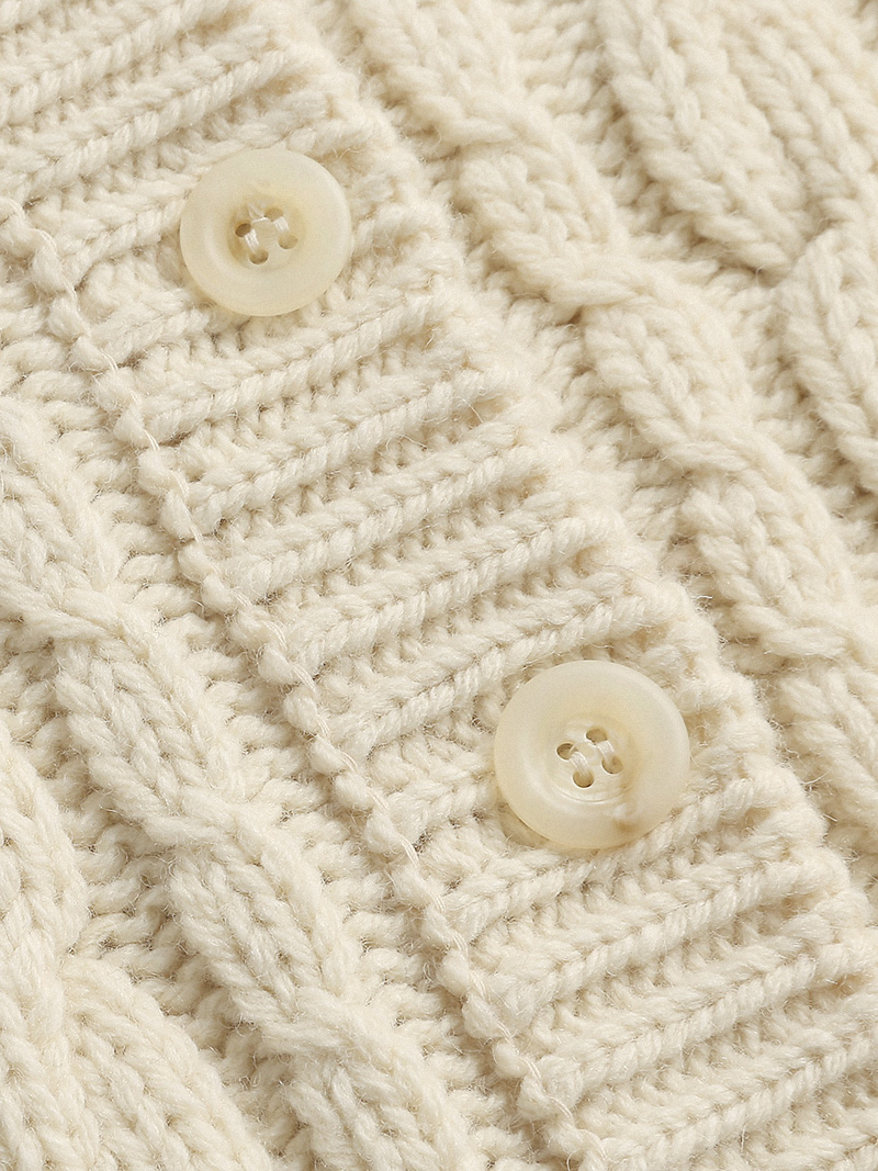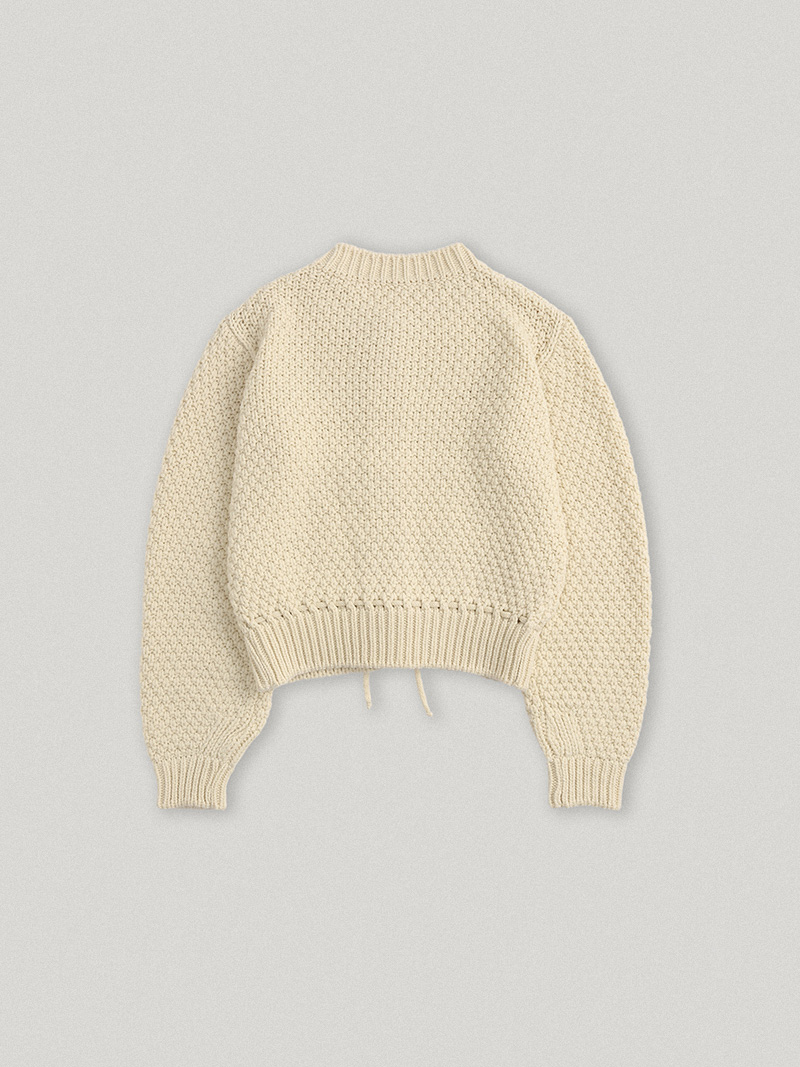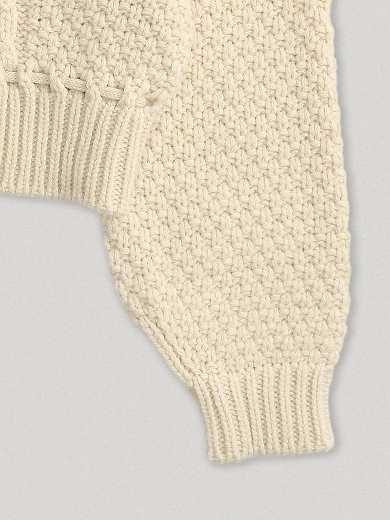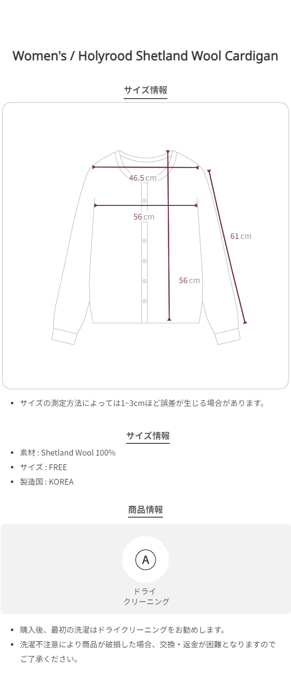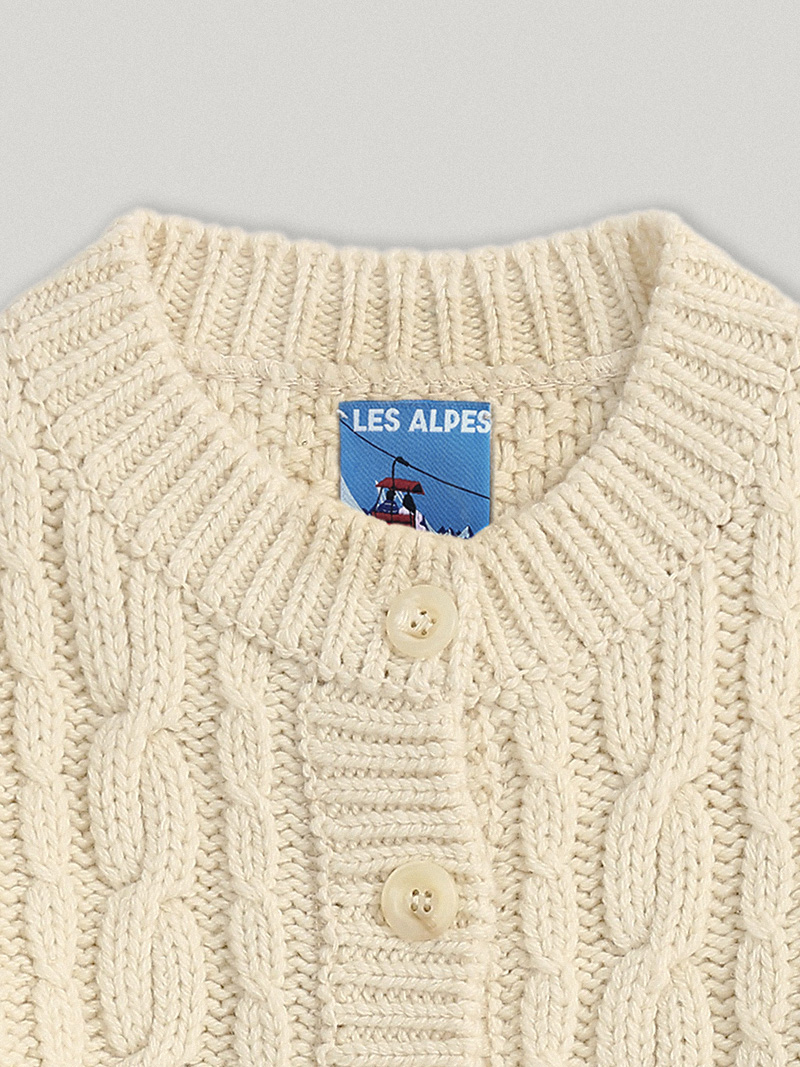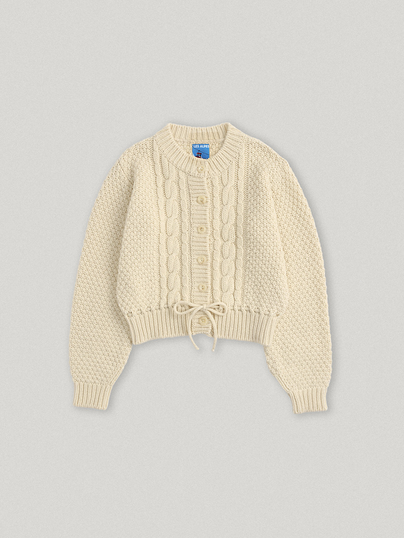これはホリールード・シェトランド・ウールカーディガンで、冷たい空気の中で一日を心地よい暖かさで満たしてくれます。Smoothmood F/Wコレクションの冬服は「普通の人々と温かさ」という言葉にインスパイアされており、日常生活の中でも温かさを伝える愛情あふれるアイテムを提供しています。スコットランド北海岸の小さな島、シェトランド諸島で生産された最高品質のシェトランドウール糸で作られ、優れた編み技術で厚手で暖かい冬用カーディガンです。 丸い肩のシルエットとウエストラインを支えるリボンのディテールが可愛らしさを添えます肩とボディの繋がりやリボンの端などのディテールは丁寧に手作りで、ロゴがさりげなく刻印された同じ色調のボタンが使われています。冬のアルプス旅行の風景を日常生活の中で想像して完成します。LES ALPESスキーリフトラベル。青空、眩い雪山、ヴィンテージスキーリフトのシーンがヴィンテージデザインに加えられています。柔らかくふわふわしたスコーンのようなクリームベージュトーンカラーがヴィンテージデザインと完璧に調和します。お気に入りのデニムや暖かいスカート、そして居心地の良い冬のルックをお楽しみください。シェットランドウール100%リラックスフィットリボン詳細SmoothmoodロゴボタンLES ALPESスキーリフトラベル* 再注文する商品のラベルはSmoothmoodクラシックロゴのラベルで発送されます。購入前にご注意ください