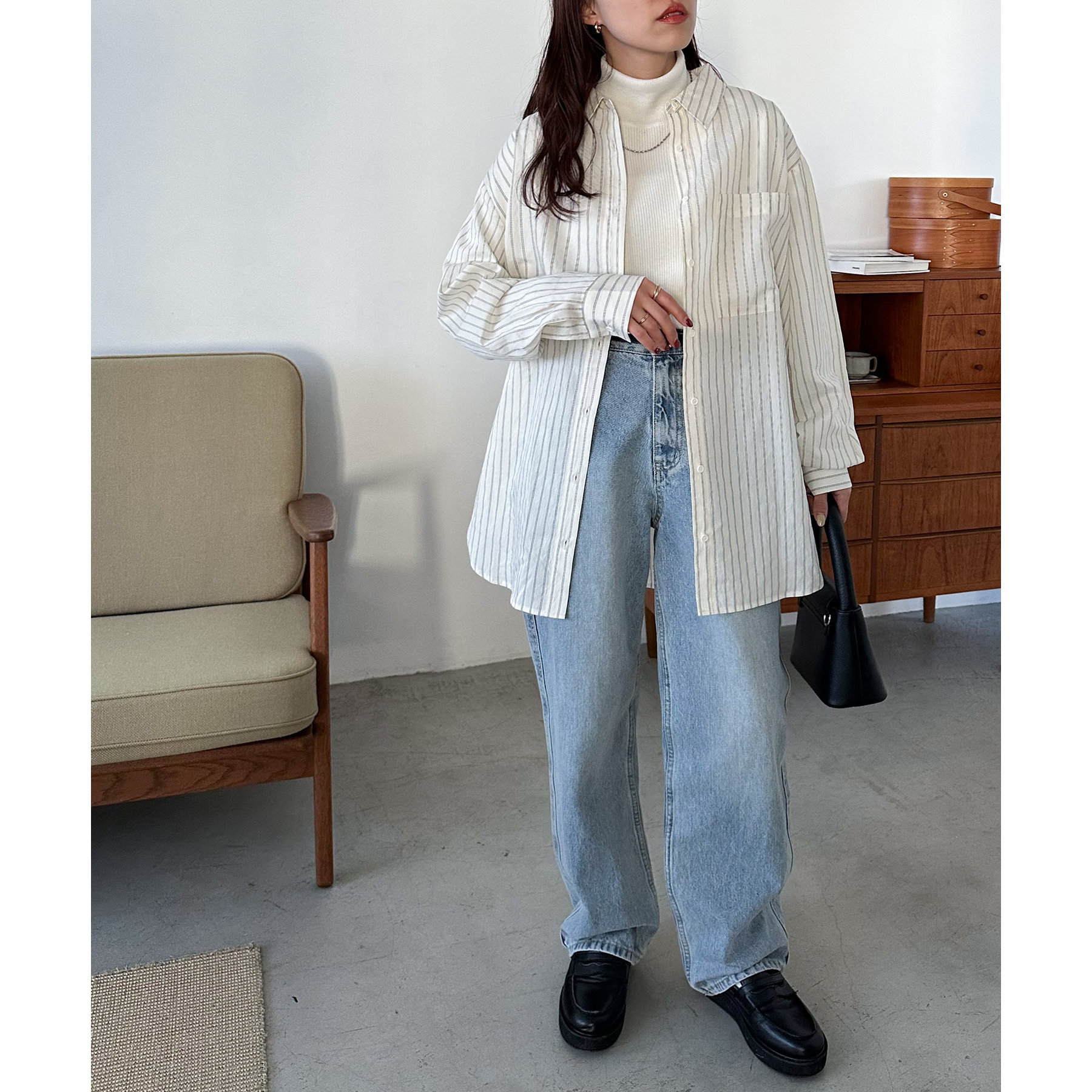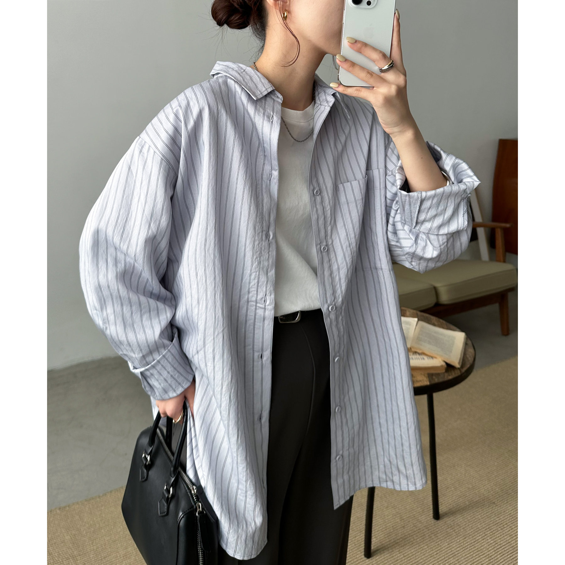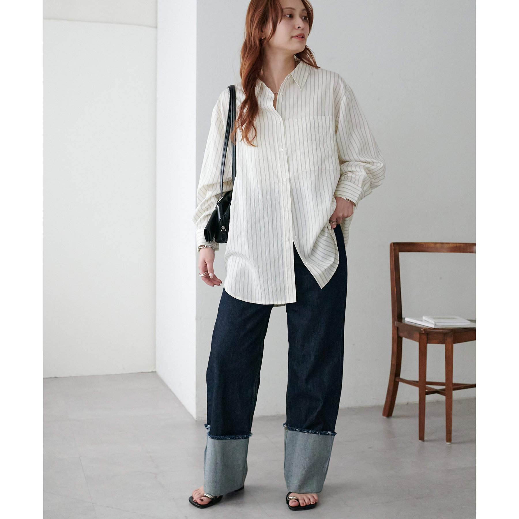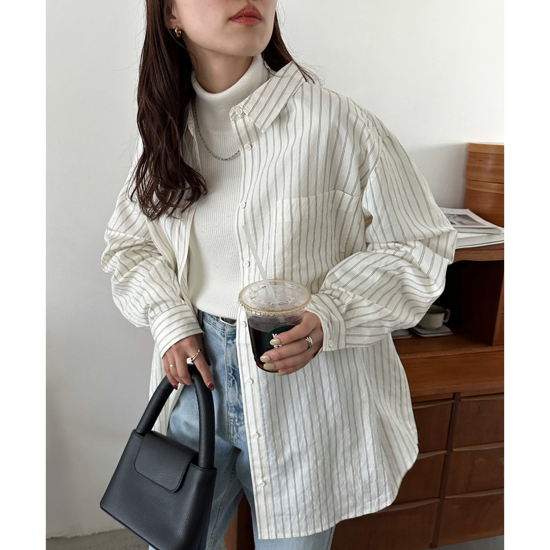 抜け感と上品さを兼ね備えた、大人のストライプシャツ