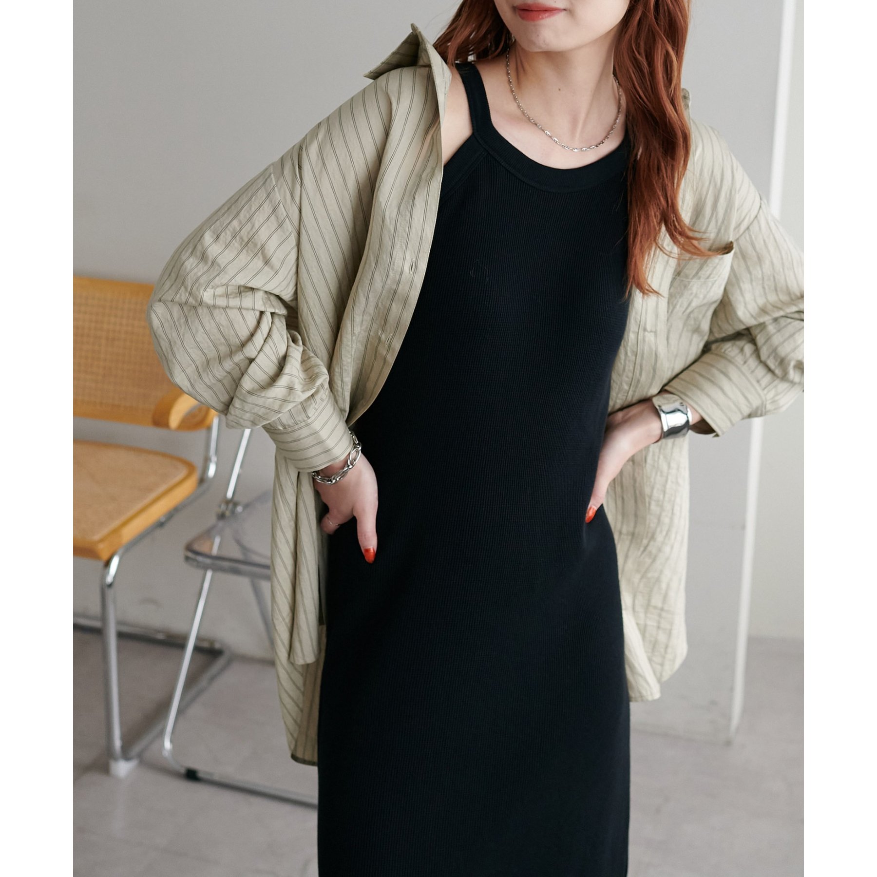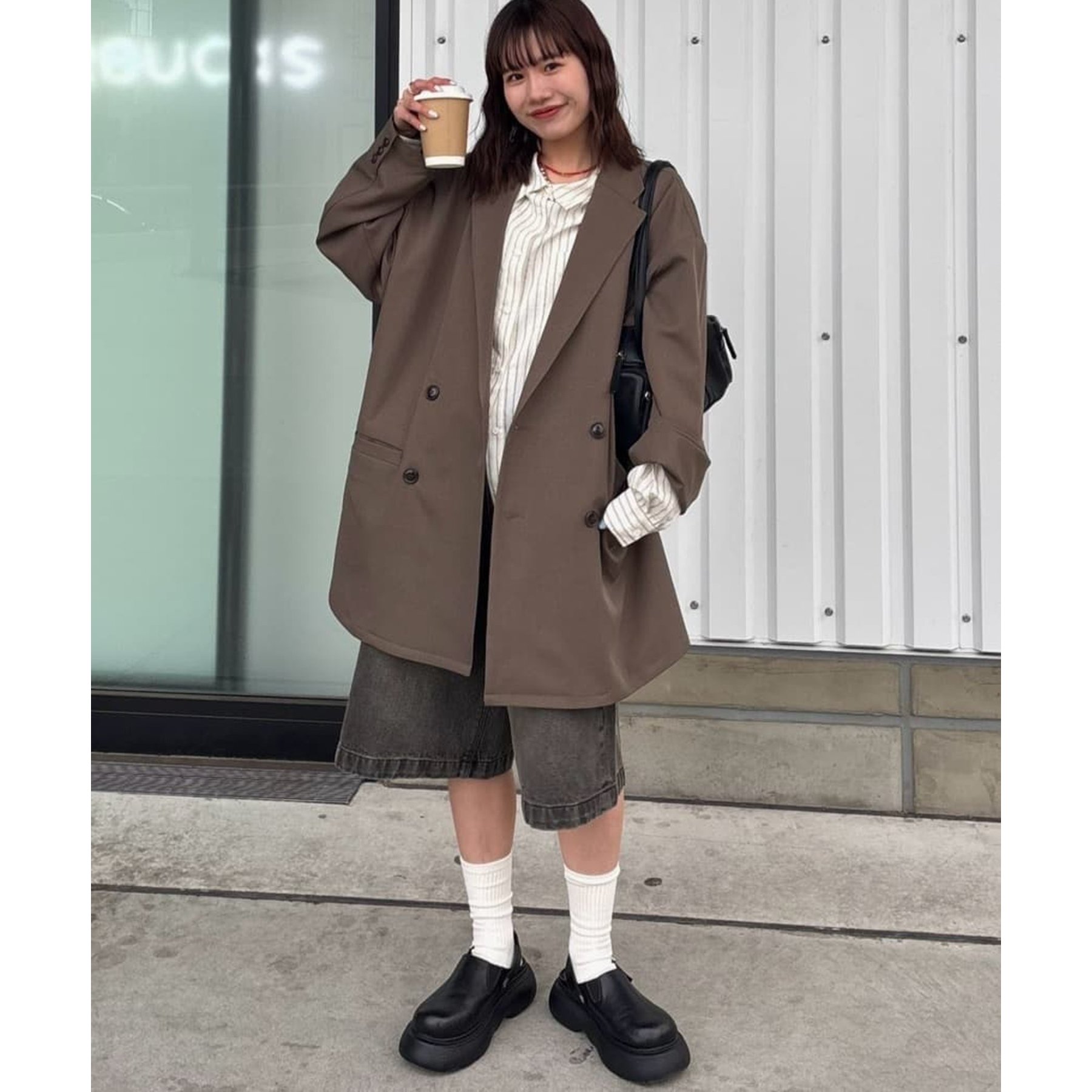 ・前を開けてワンピースやサロペットの上から羽織る着こなしも可能