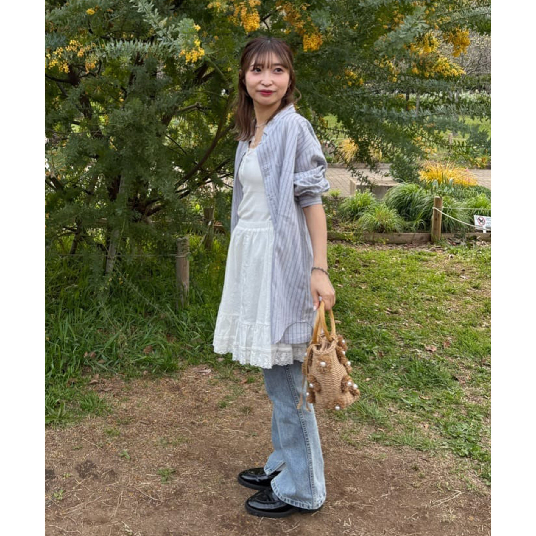 ・155cmスタッフ:淡いカラーで春らしい色合いが可愛い♪ゆとりのあるシルエットで体型カバーも叶います。キレイ目からカジュアルまで様々なスタイリングに合わせやすいので重宝しそうです♪