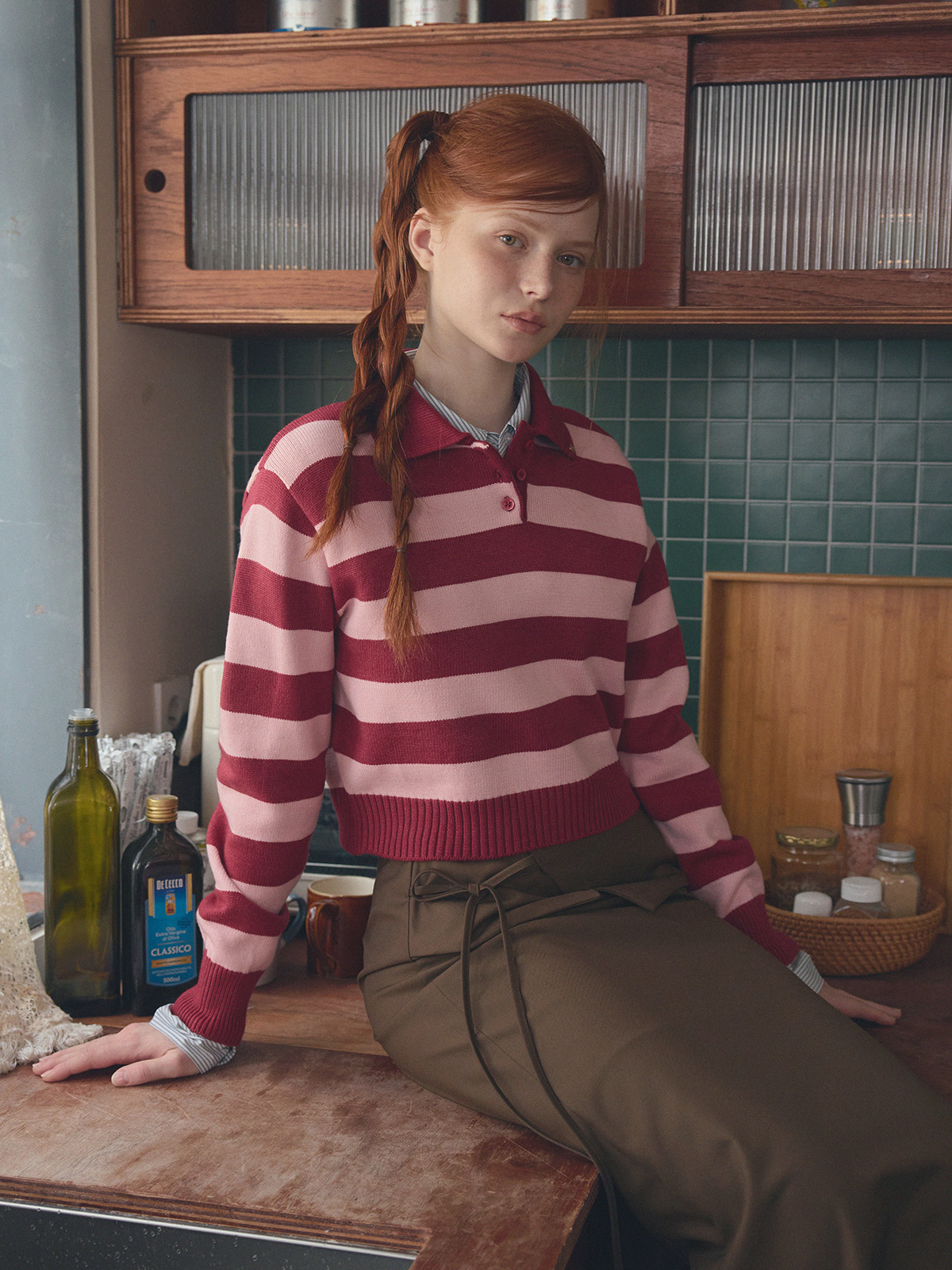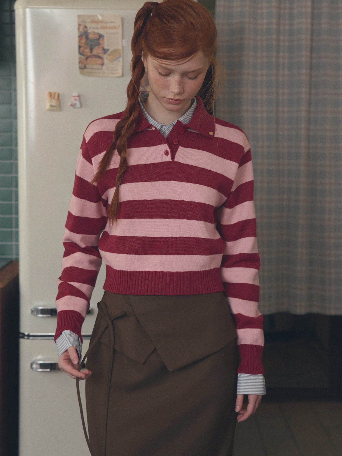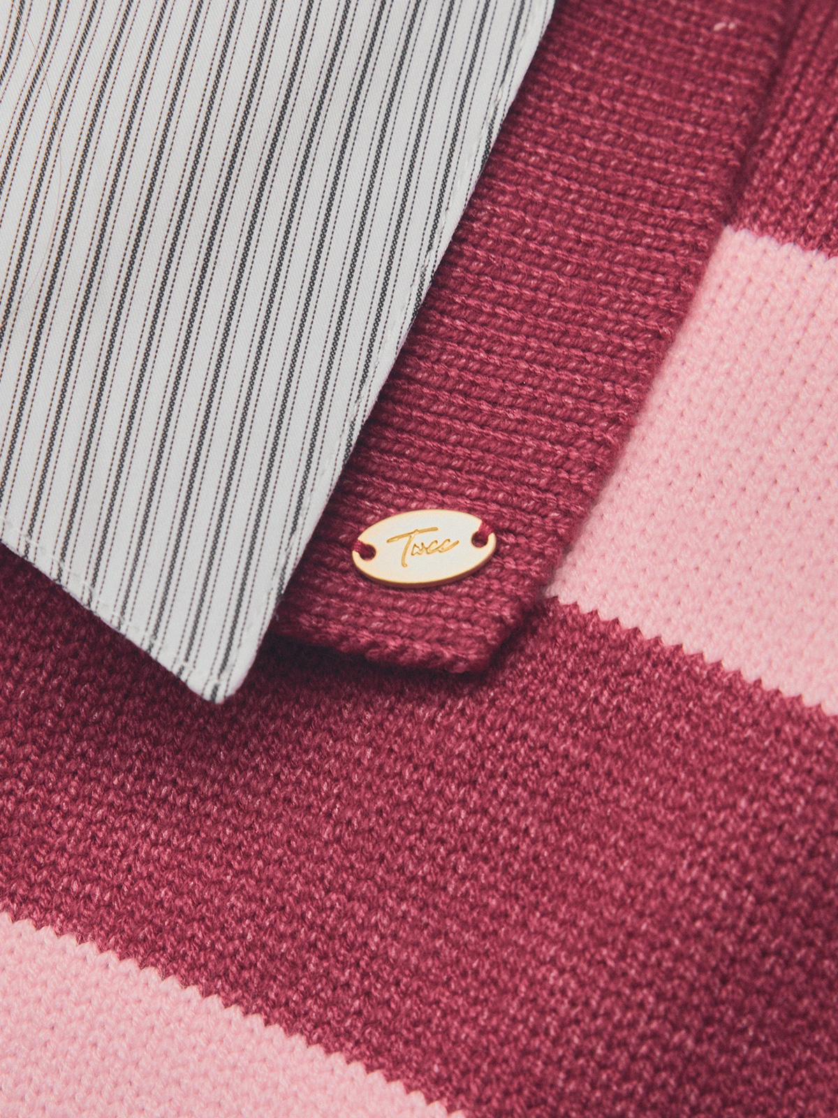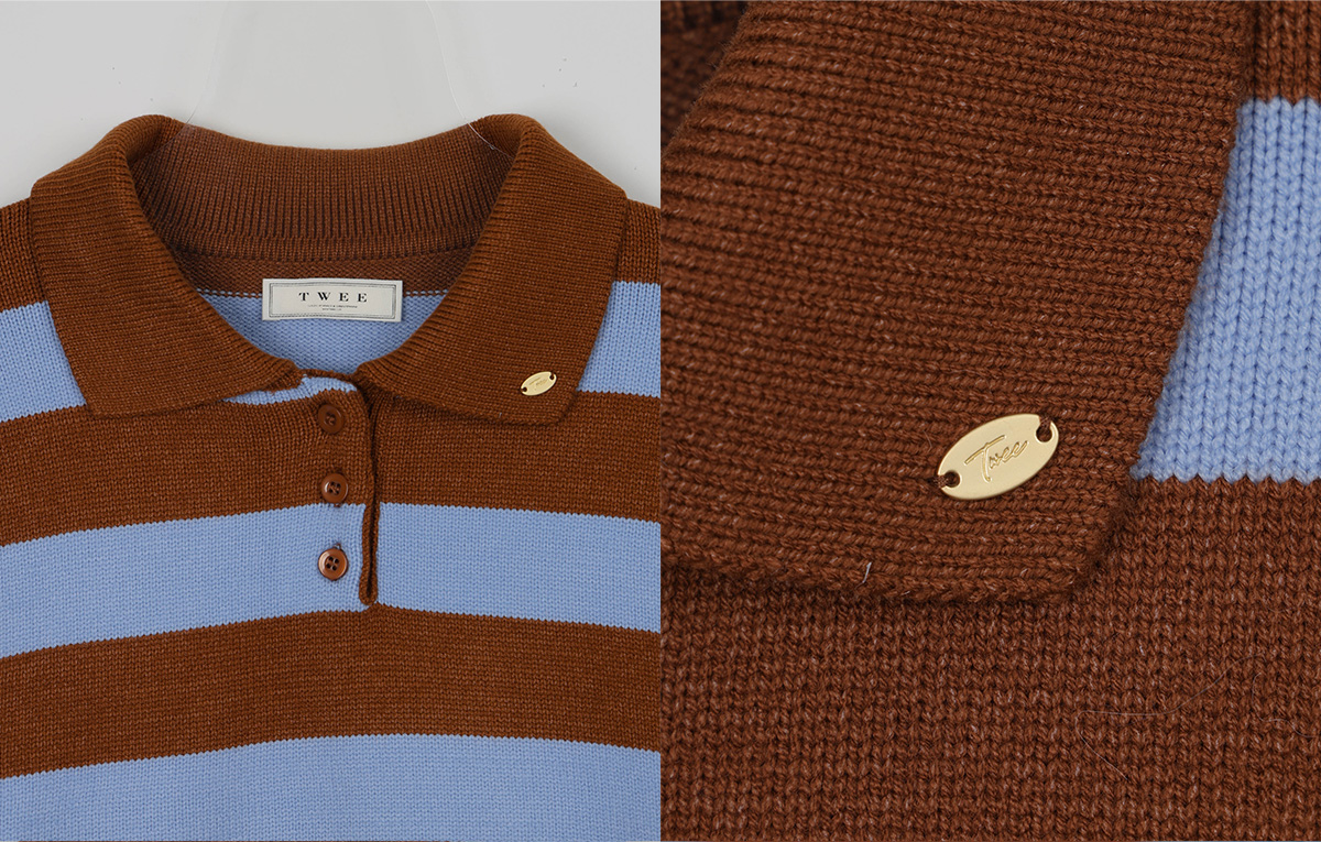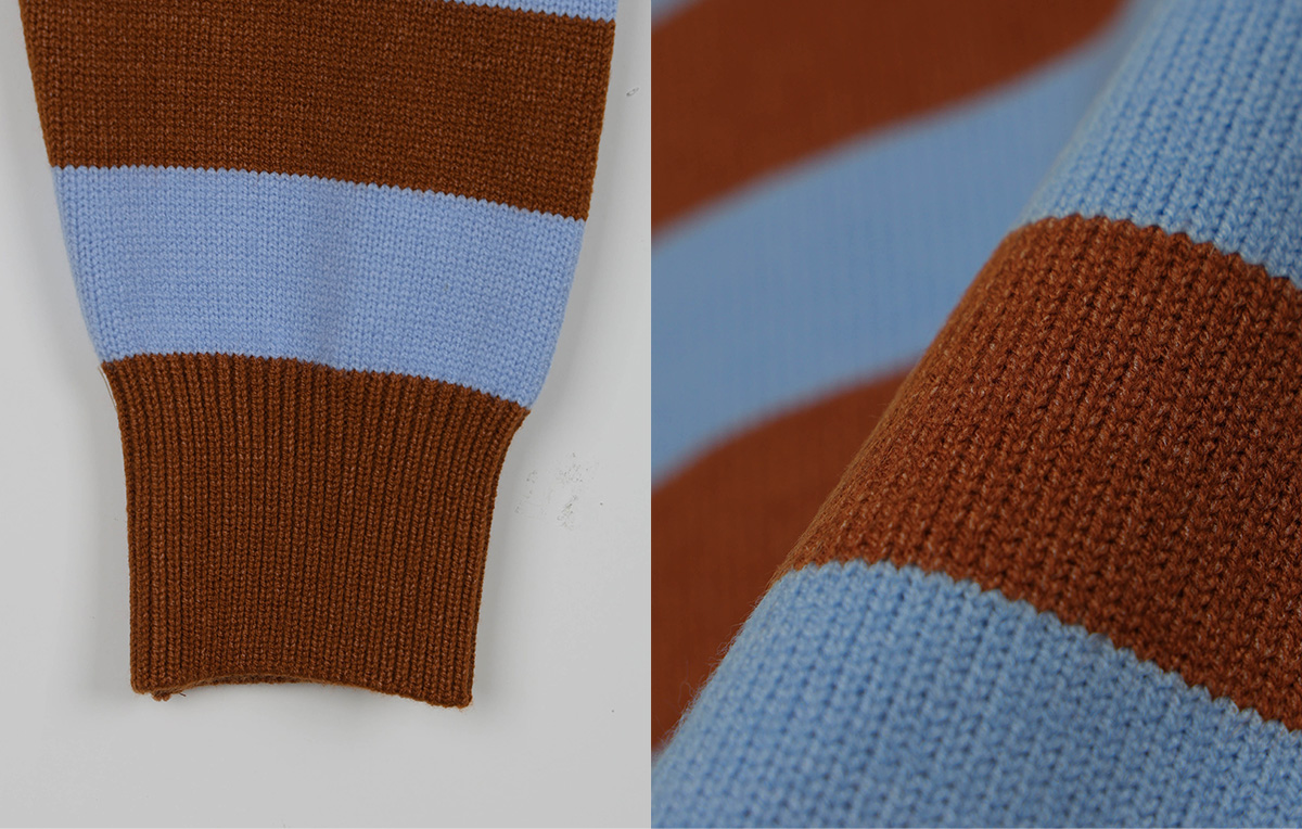 Nuo Stripe Contrast Collar Long Sleeve Knit