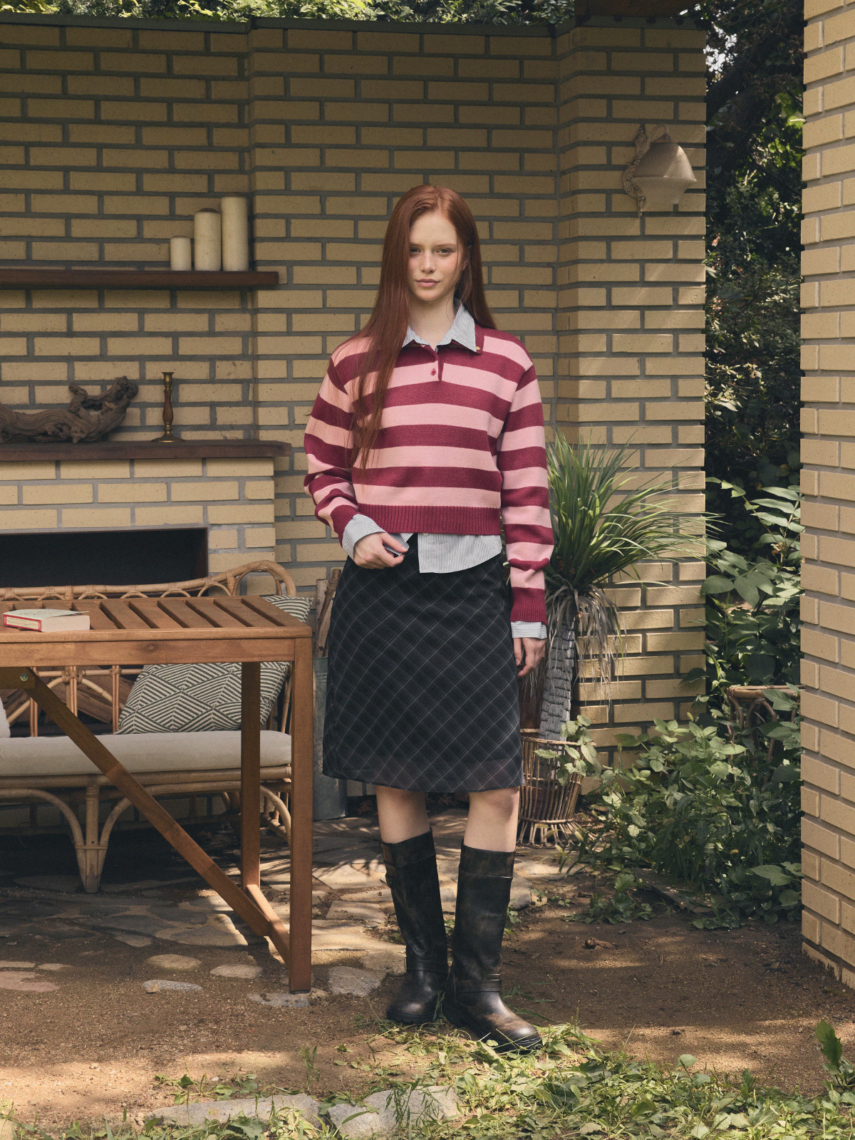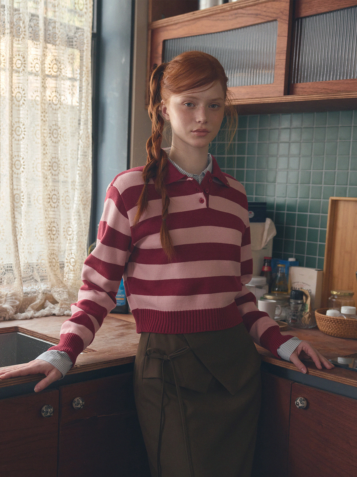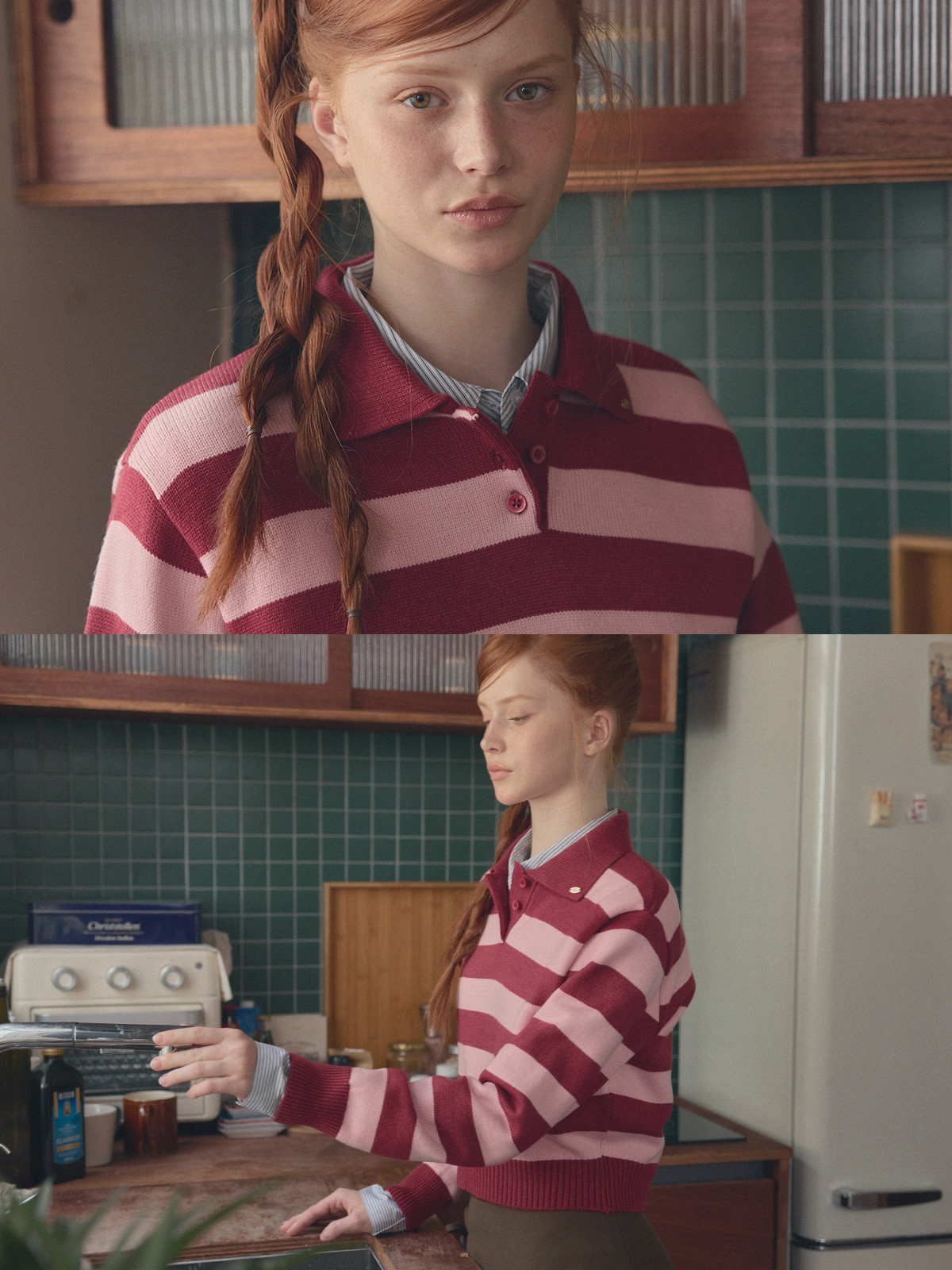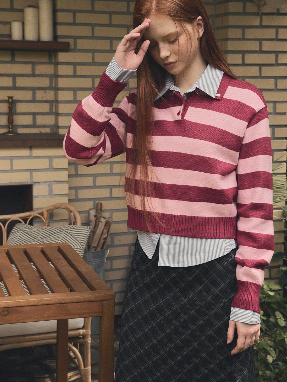 Nuo Stripe Contrast Collar Long Sleeve Knit