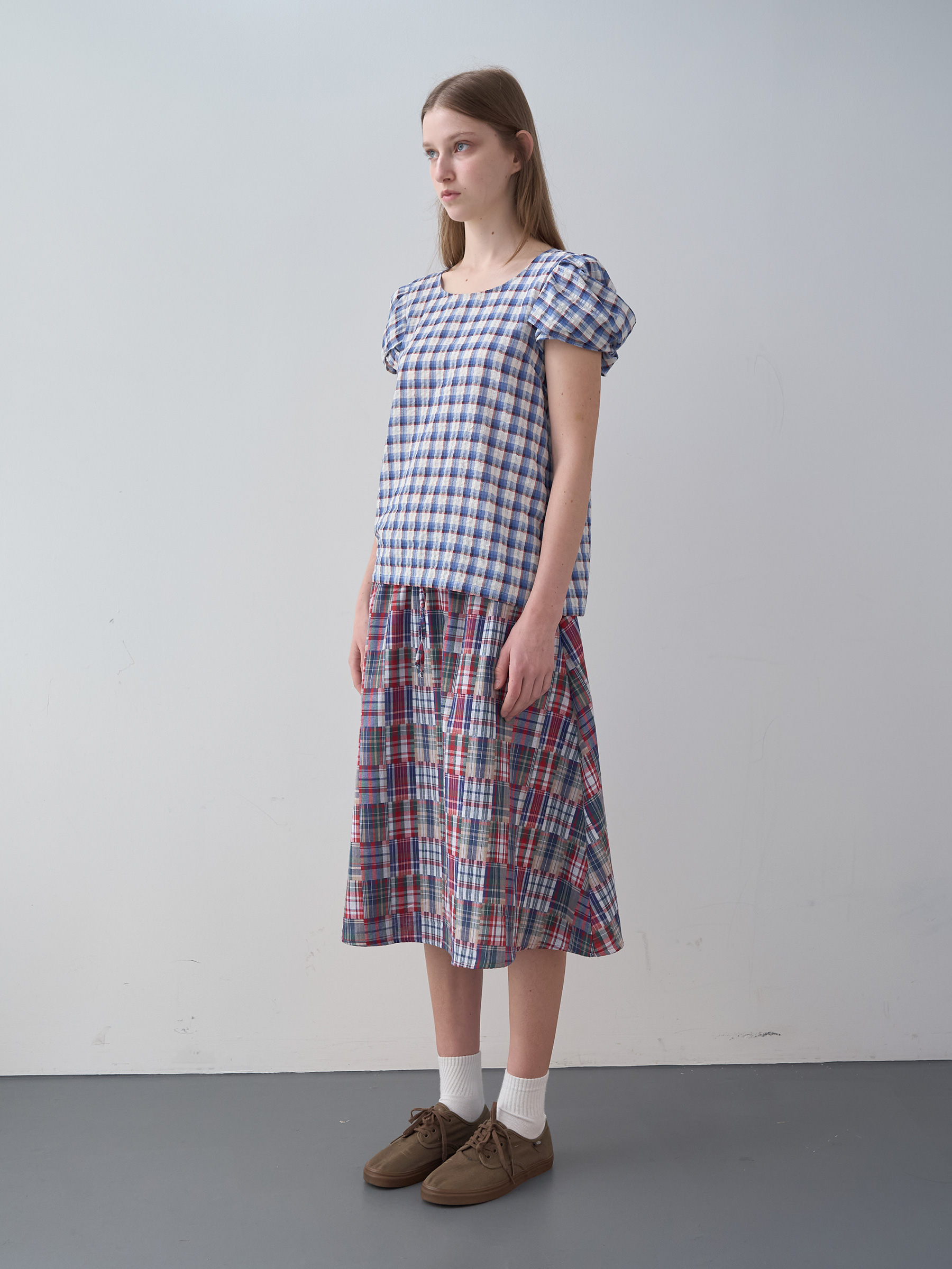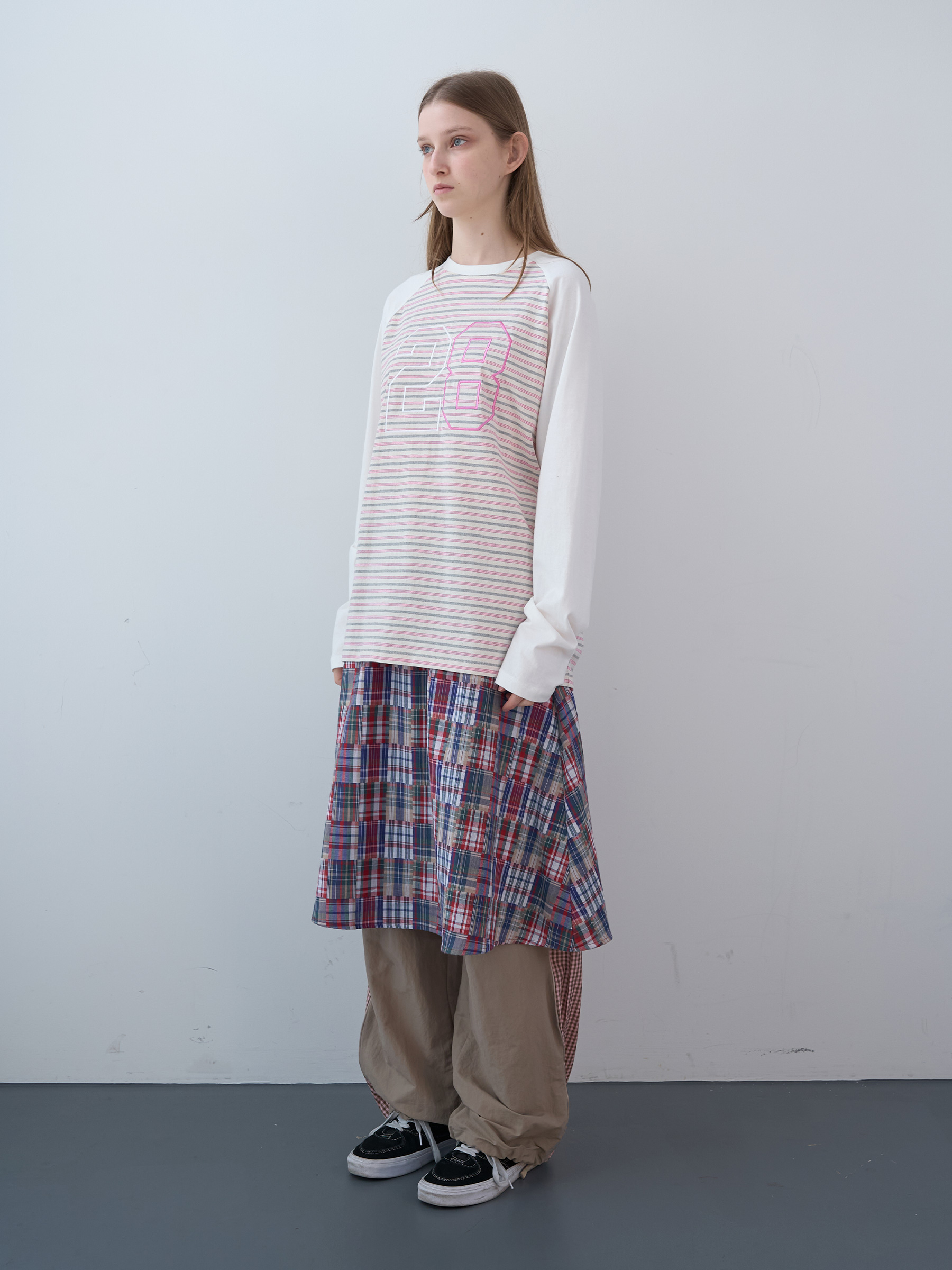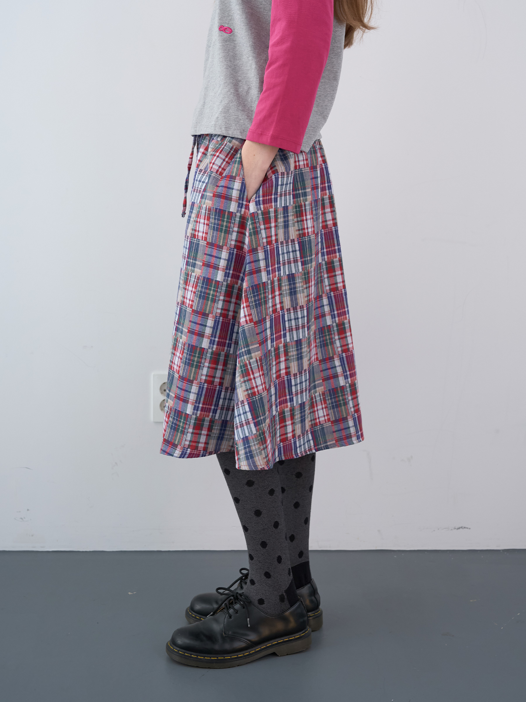 Mixed Checked Banding Skirt (Red)