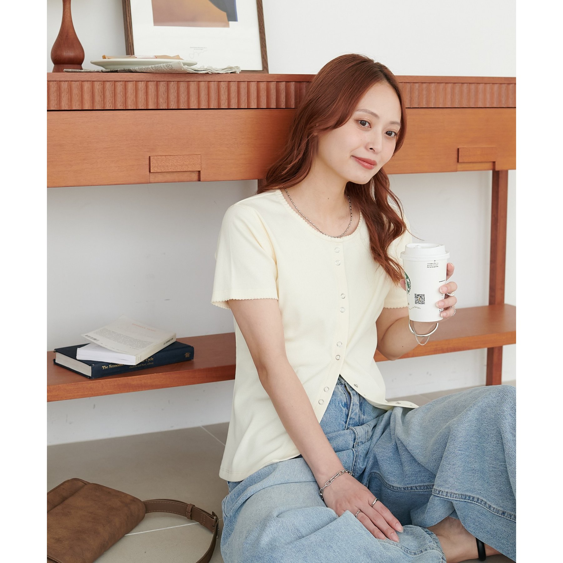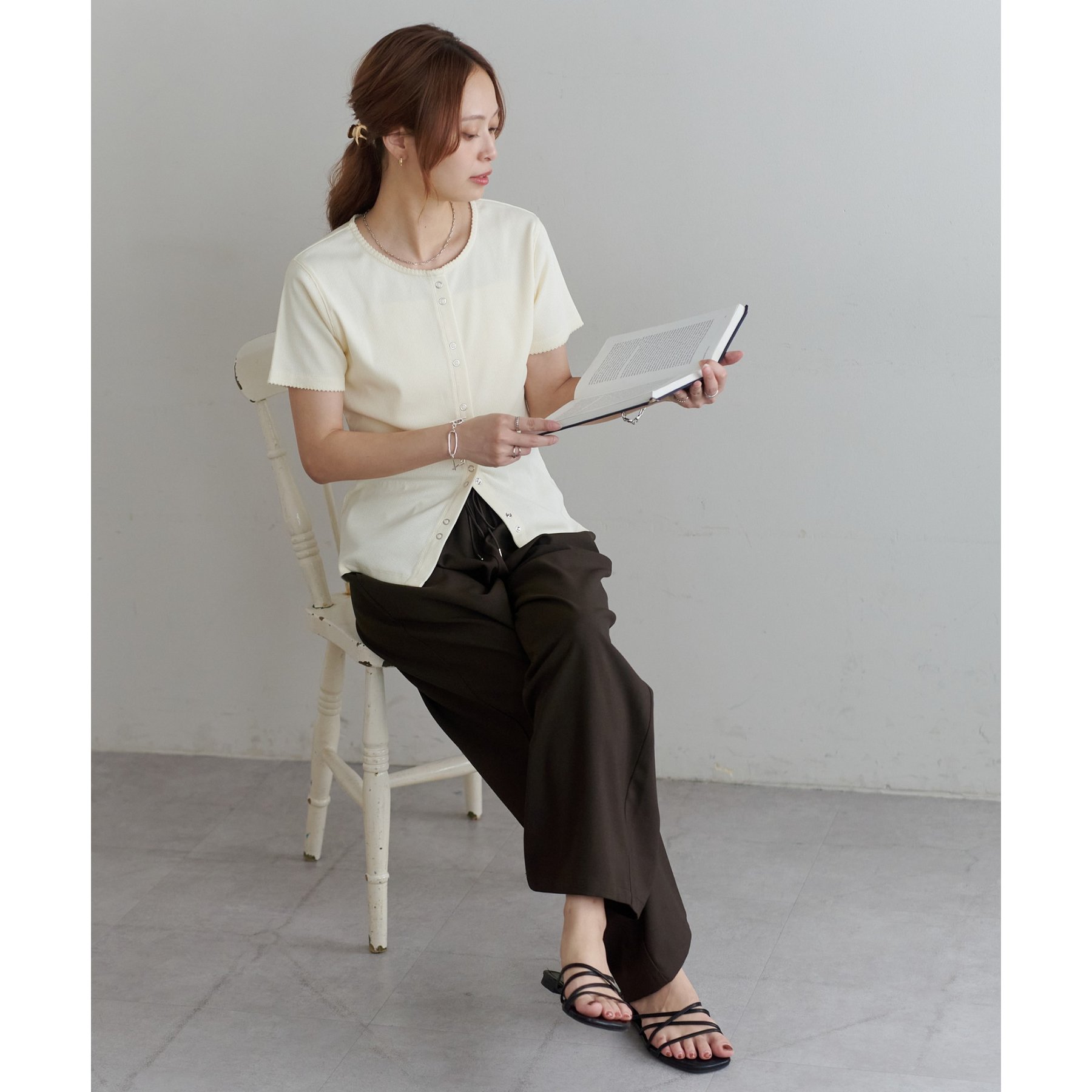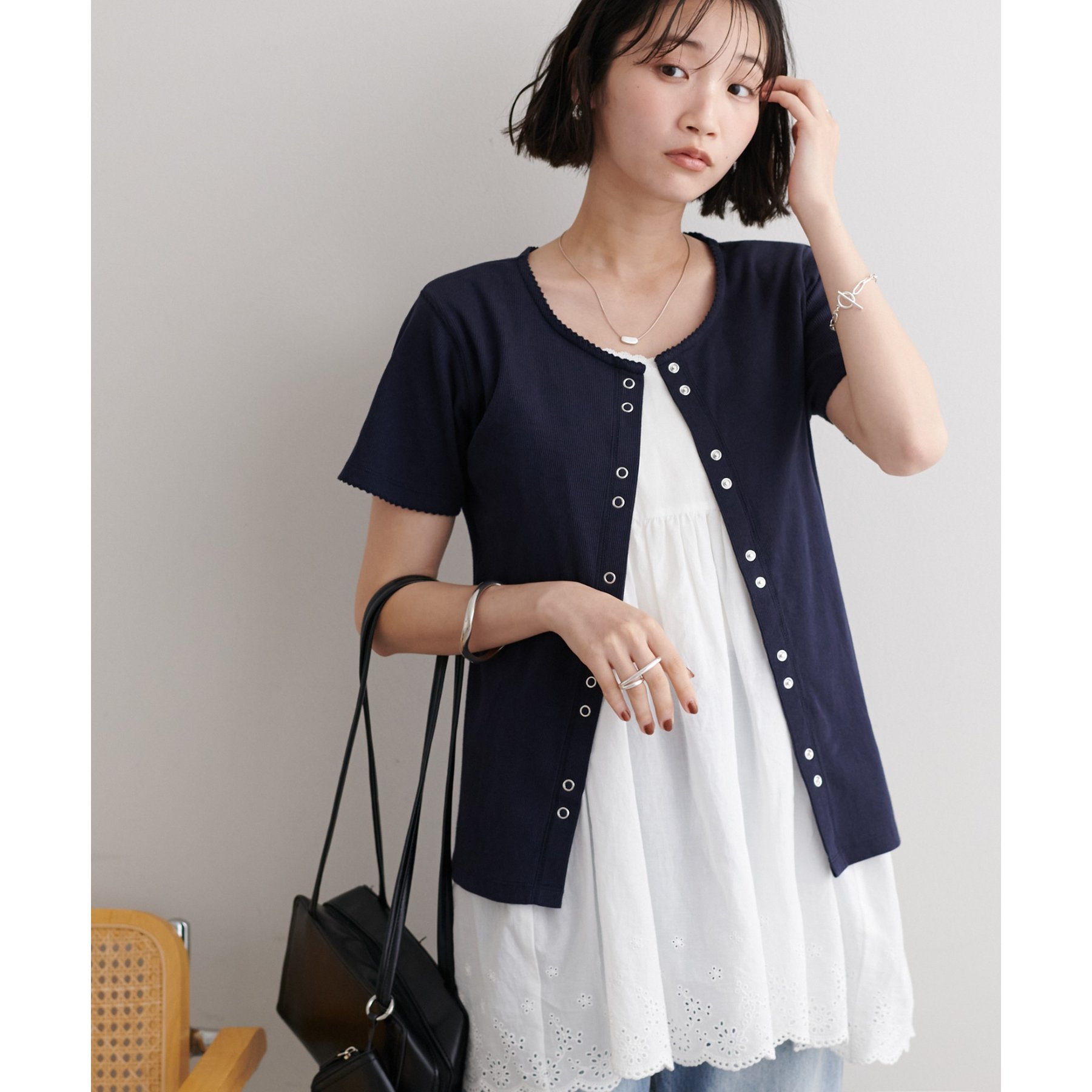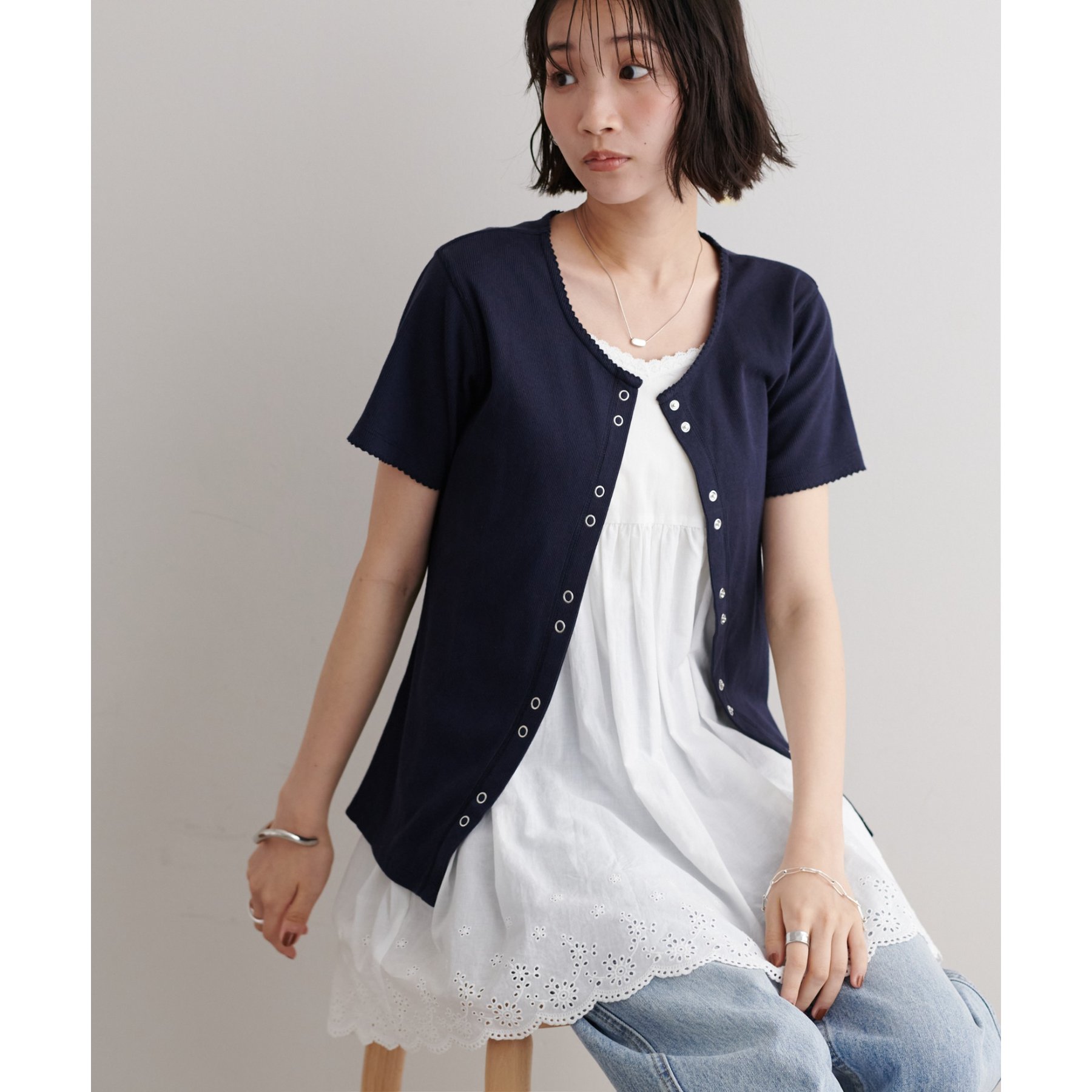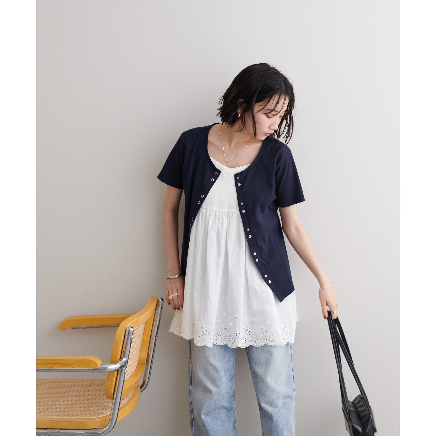 繊細なピコレースがさりげなく可愛い前開きプルオーバー