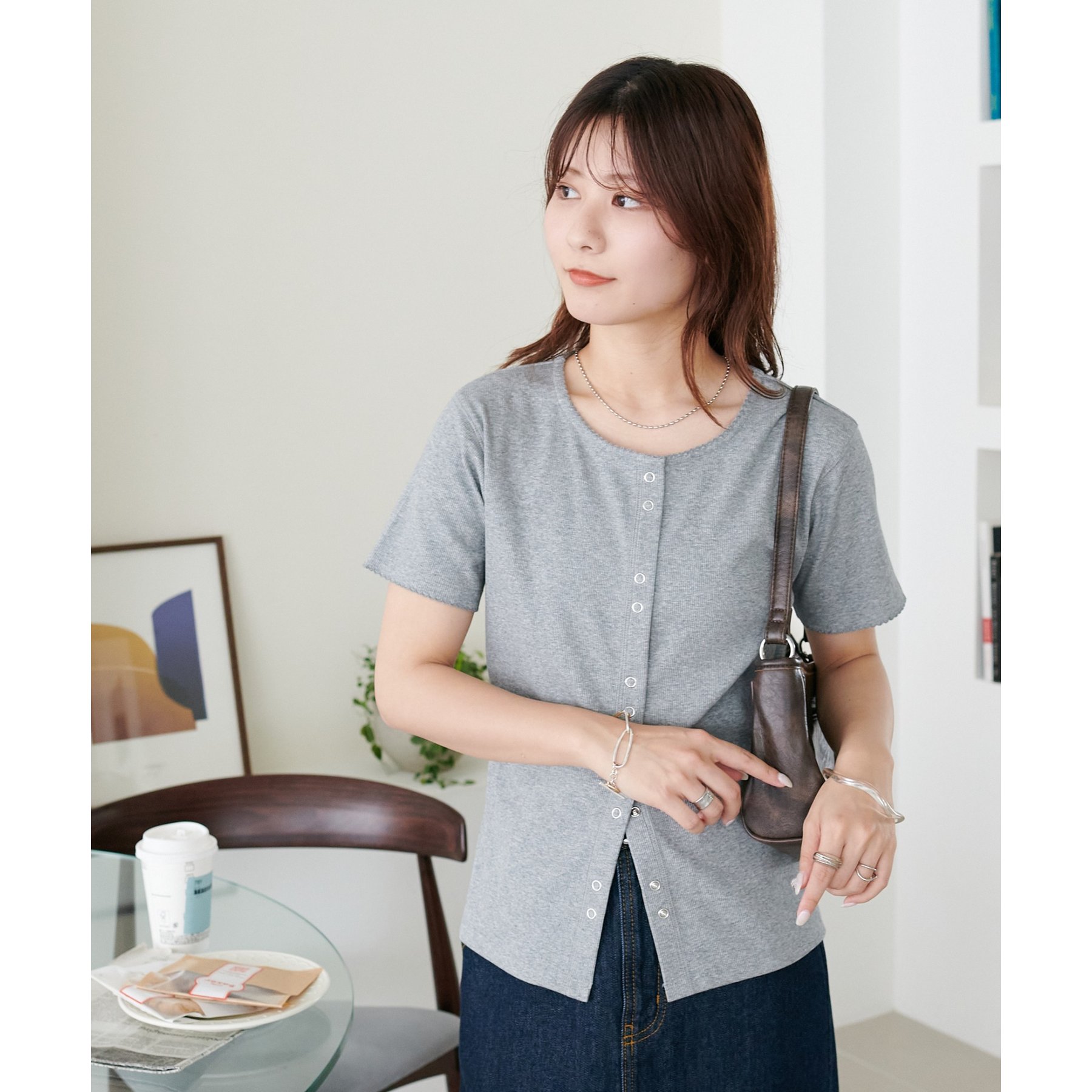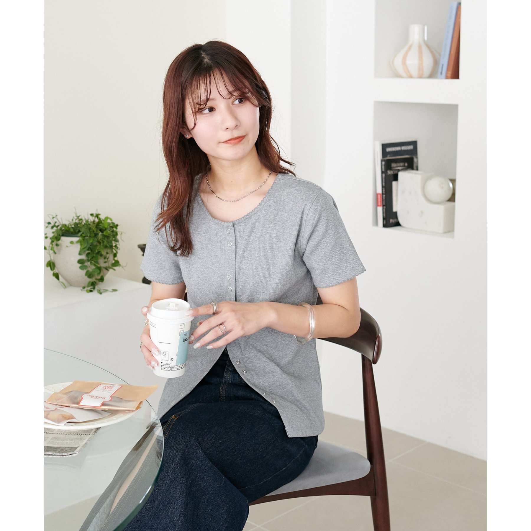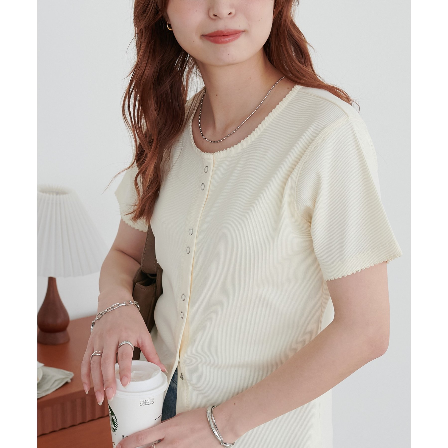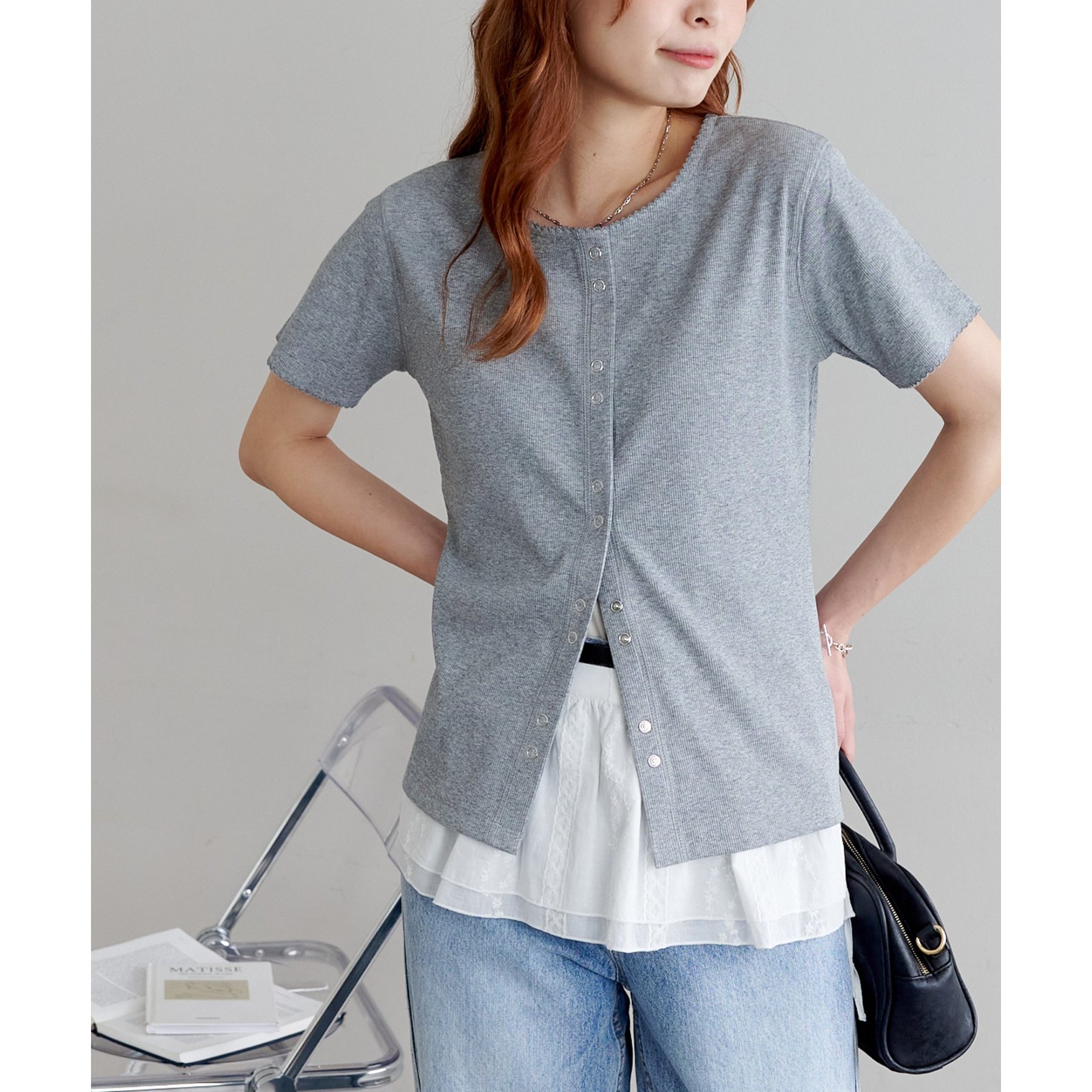 繊細なピコレースがさりげなく可愛い前開きプルオーバー