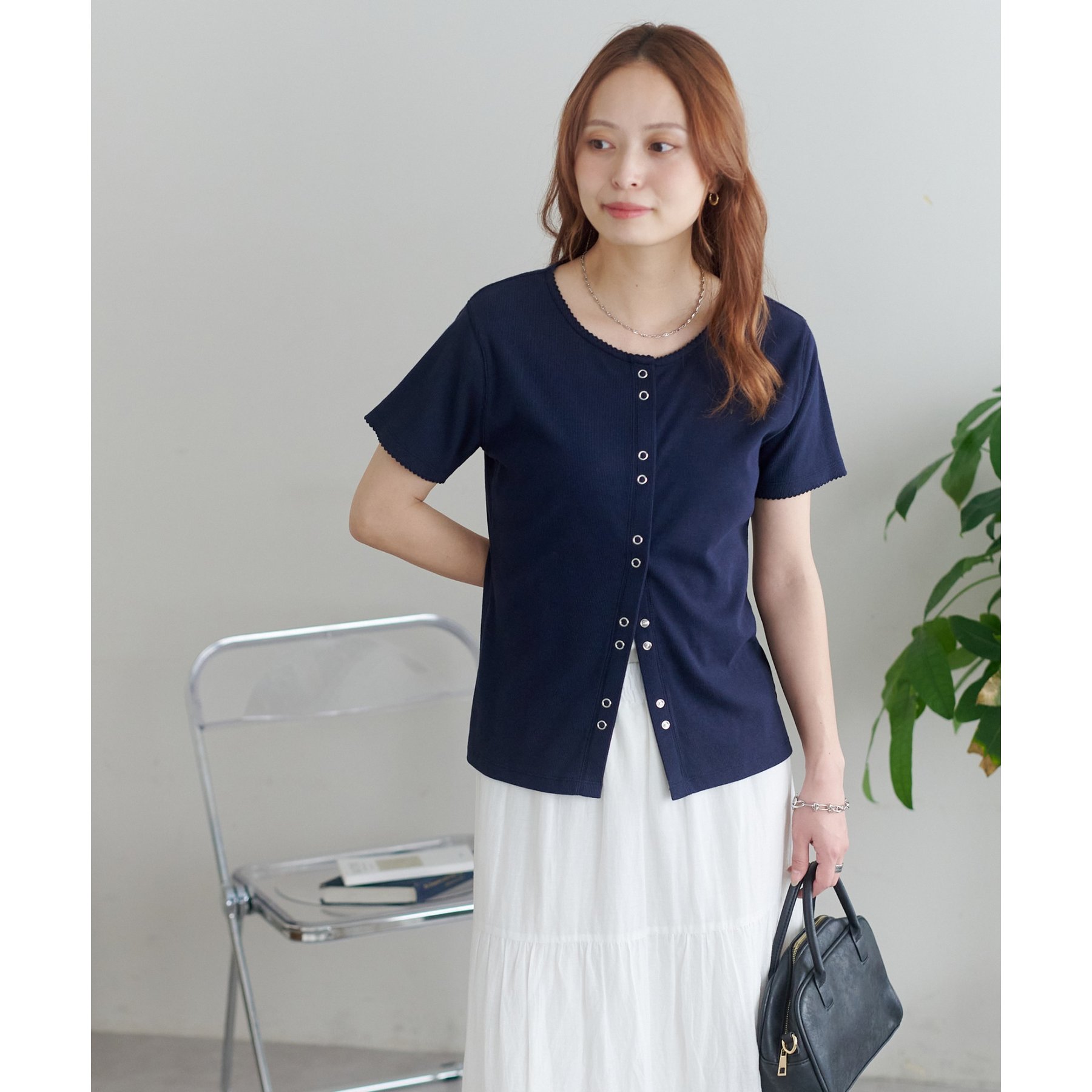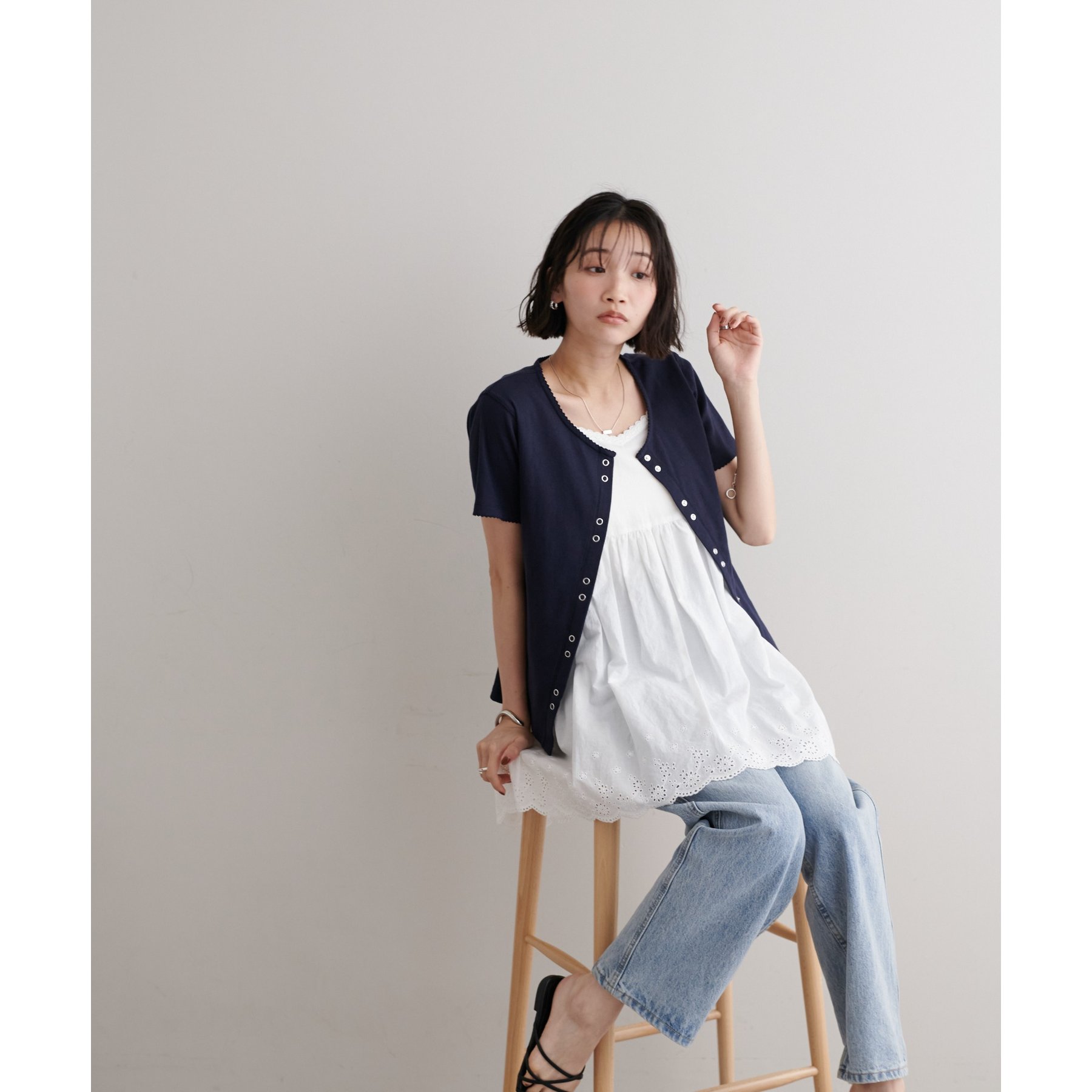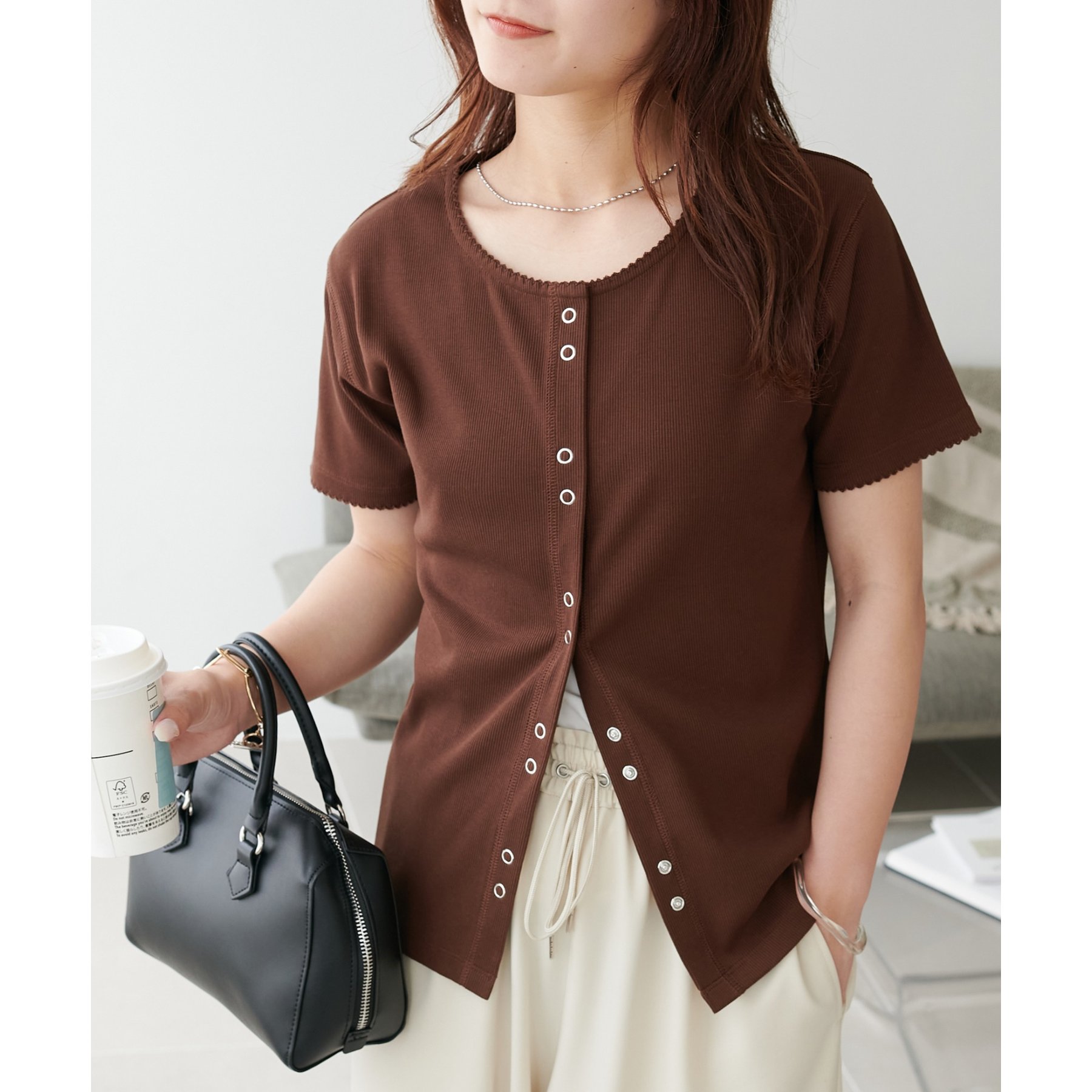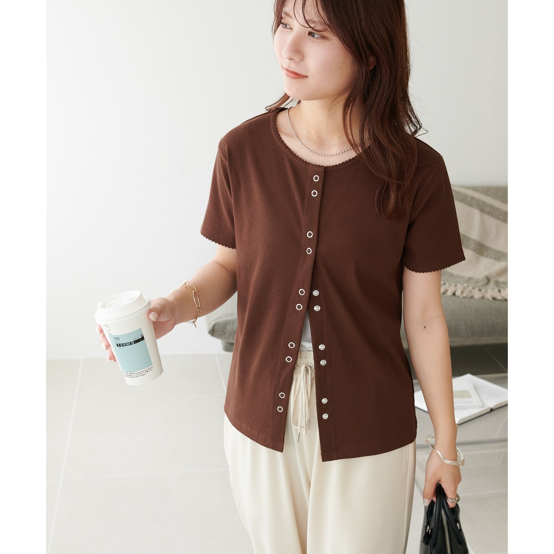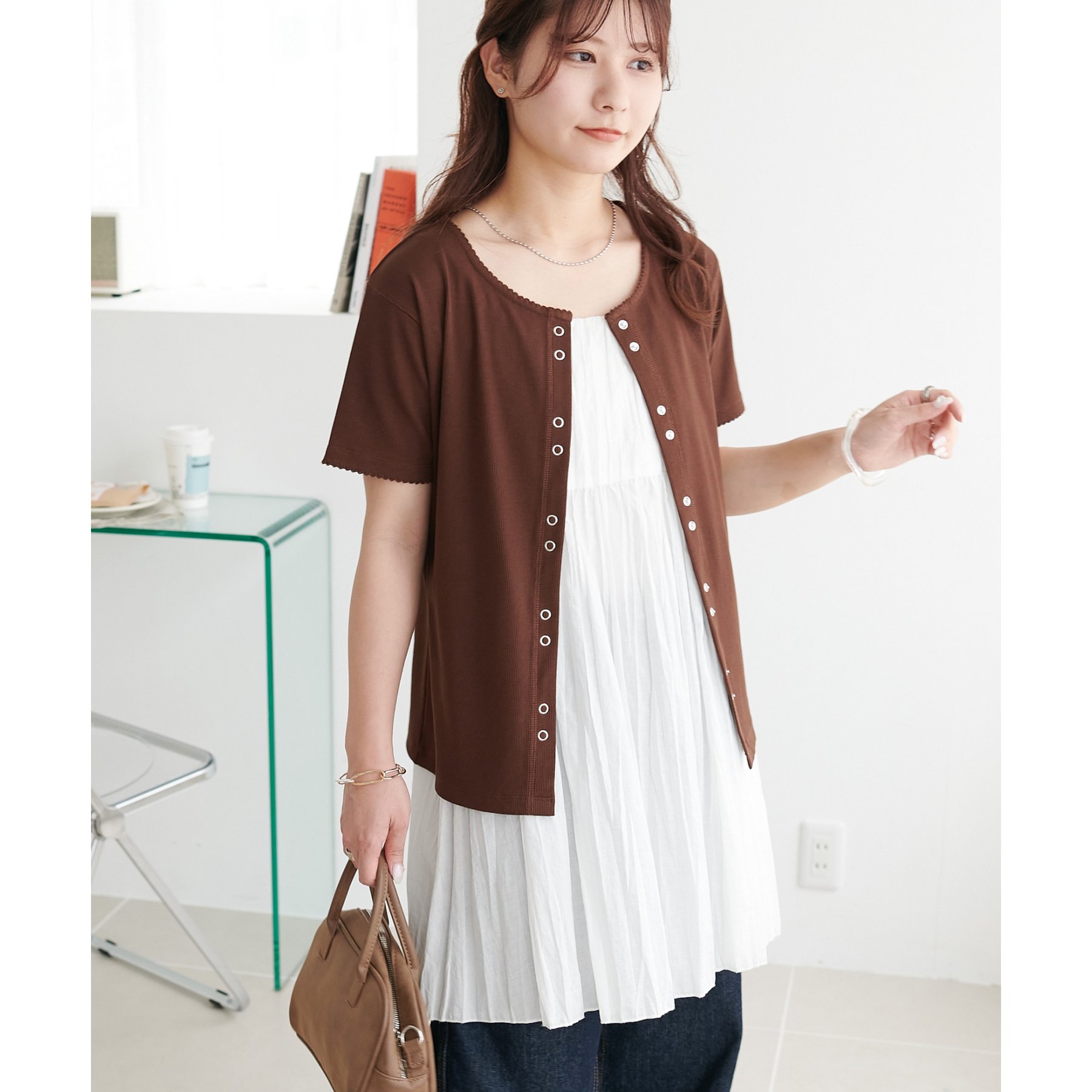 繊細なピコレースがさりげなく可愛い前開きプルオーバー