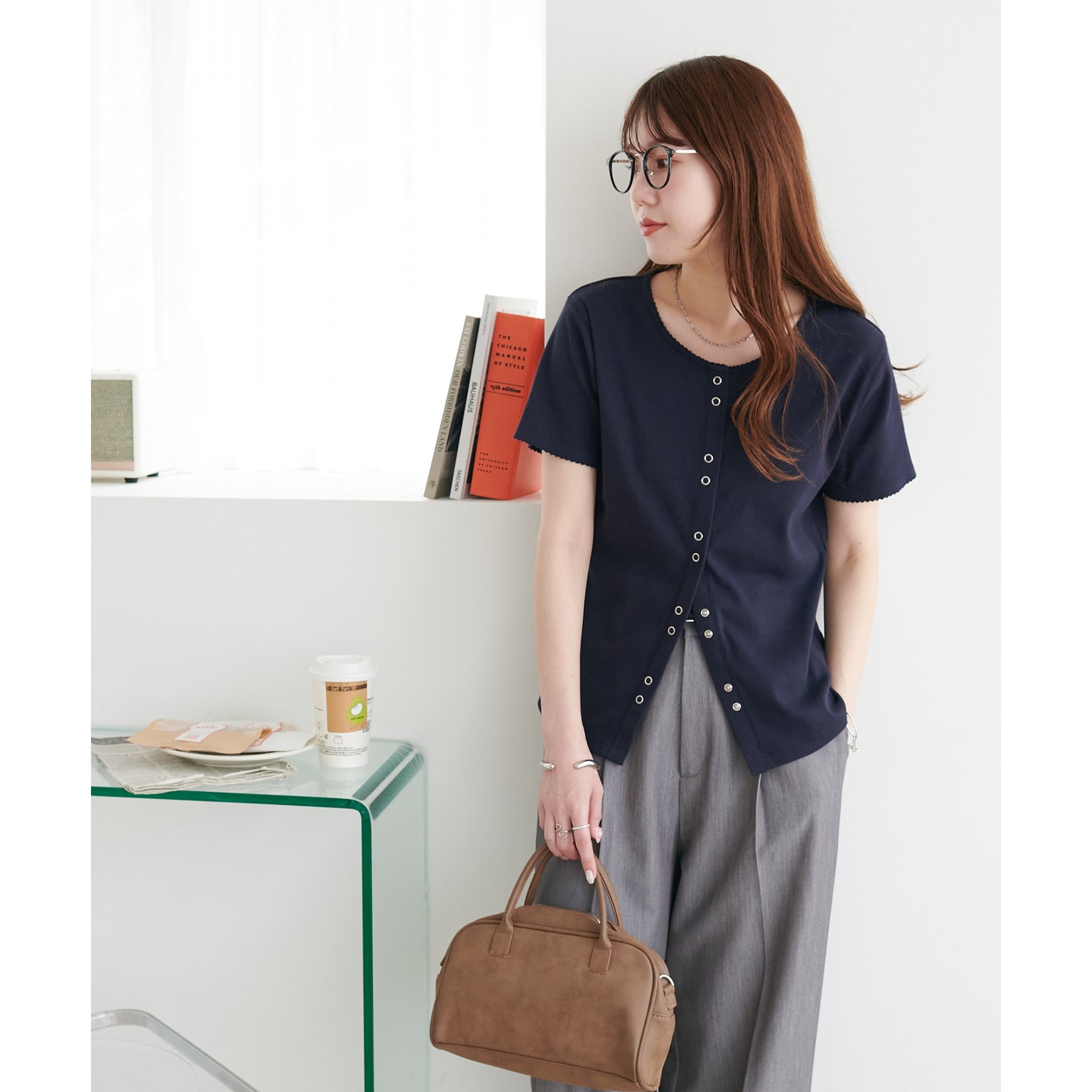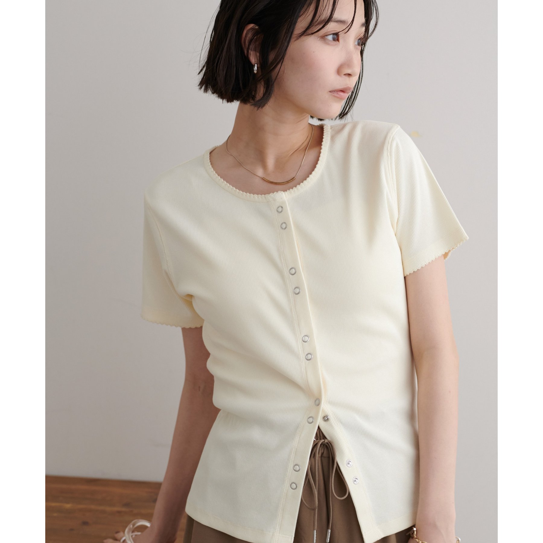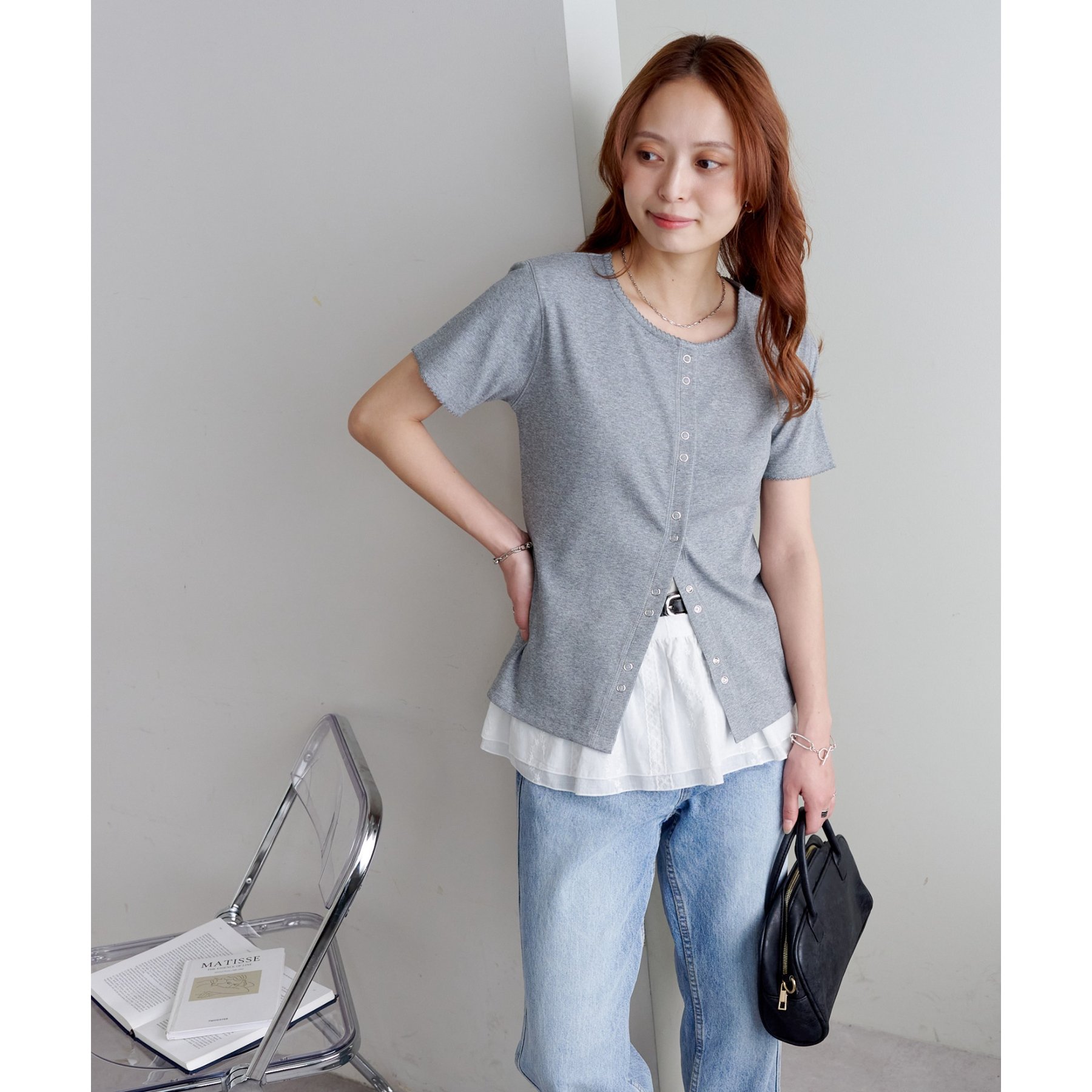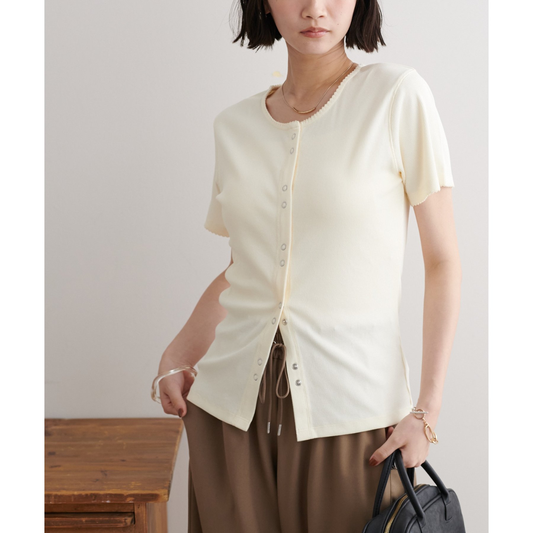 繊細なピコレースがさりげなく可愛い前開きプルオーバー