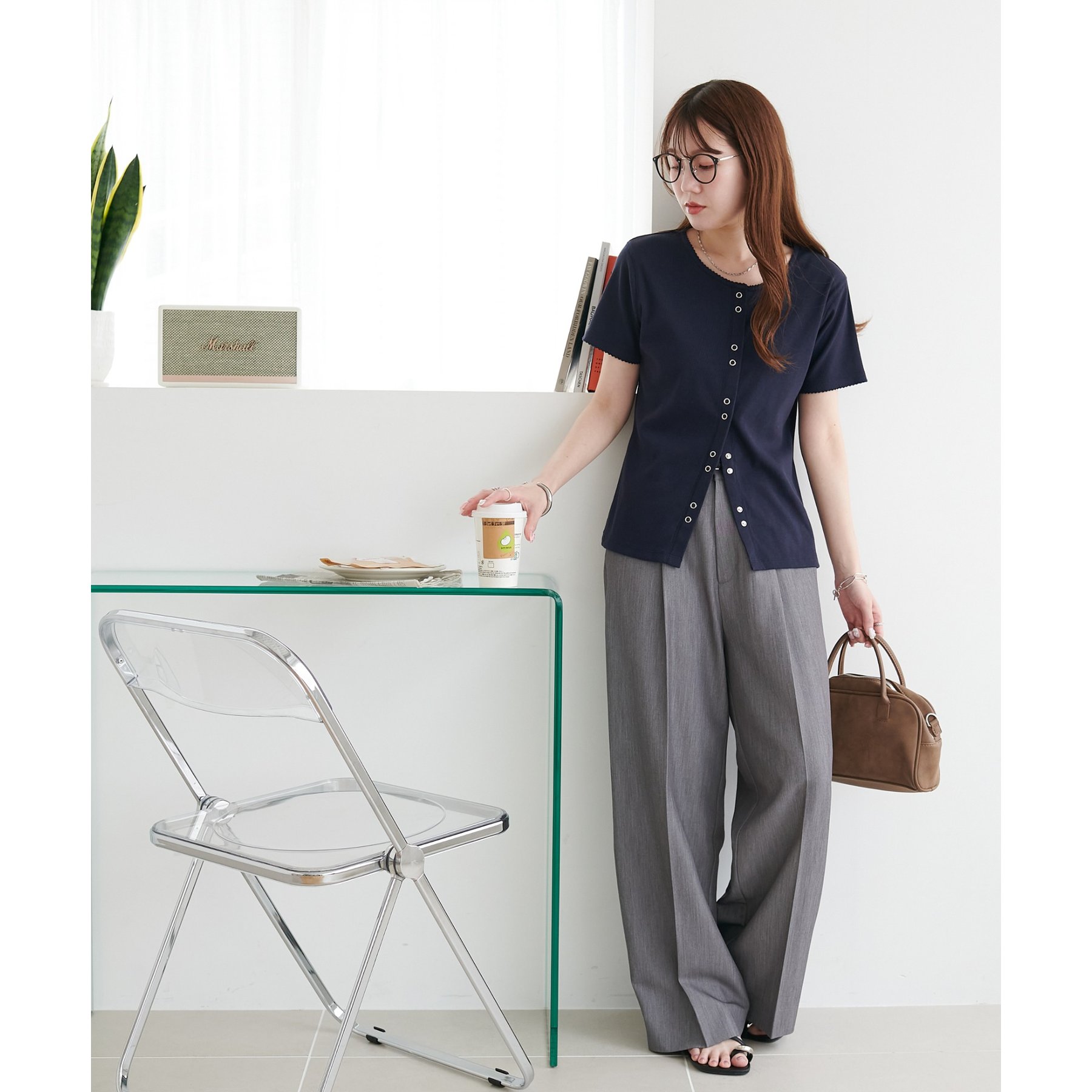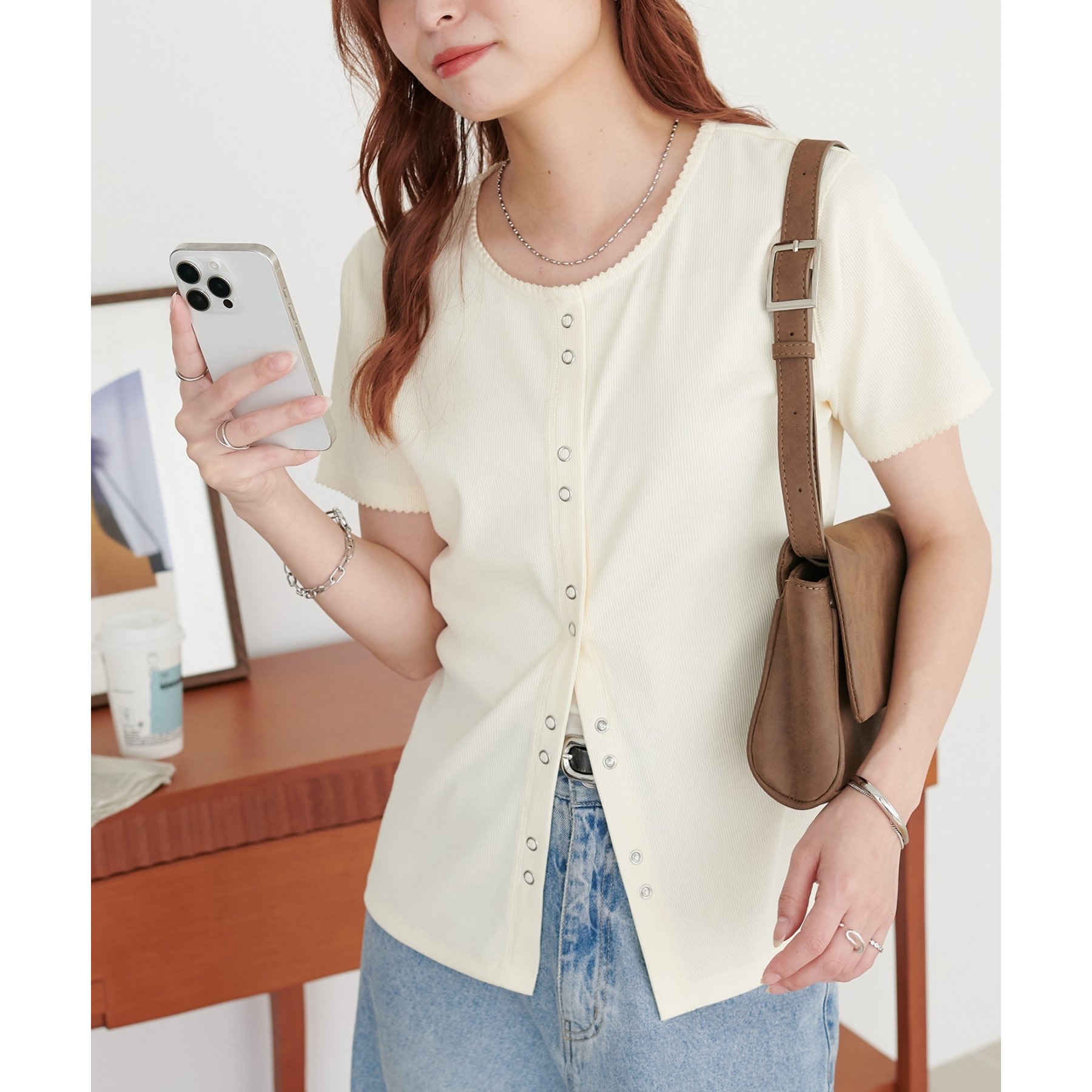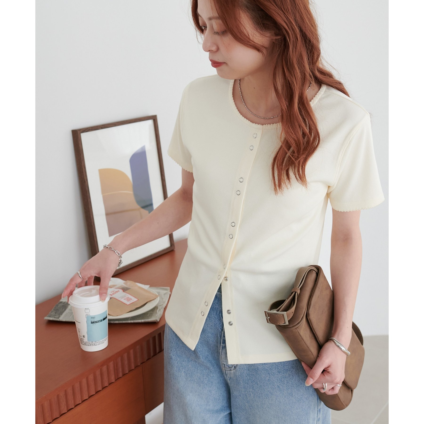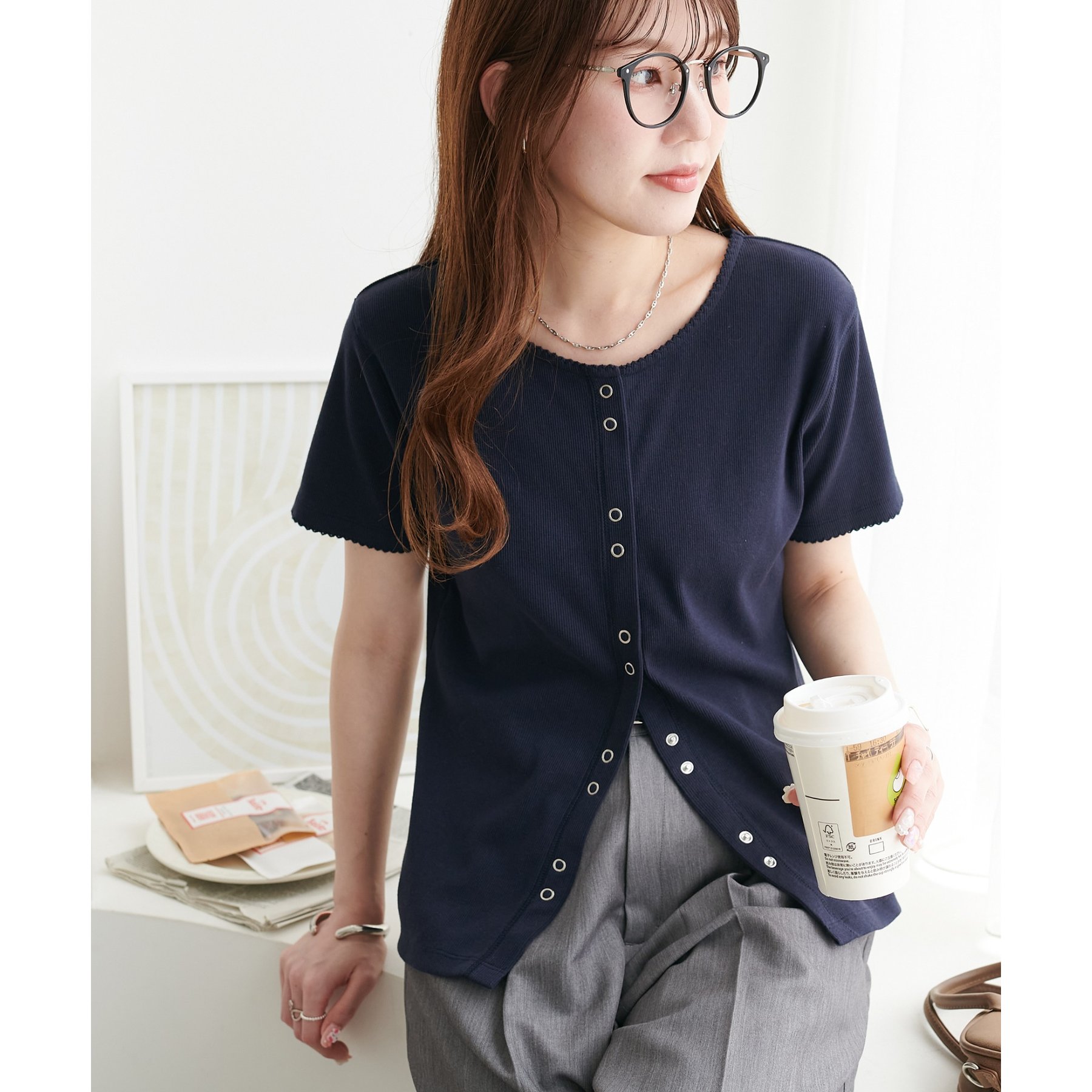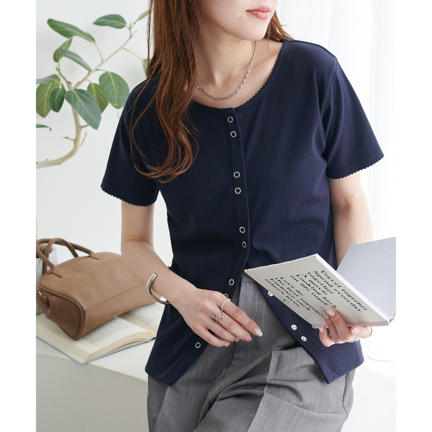 繊細なピコレースがさりげなく可愛い前開きプルオーバー