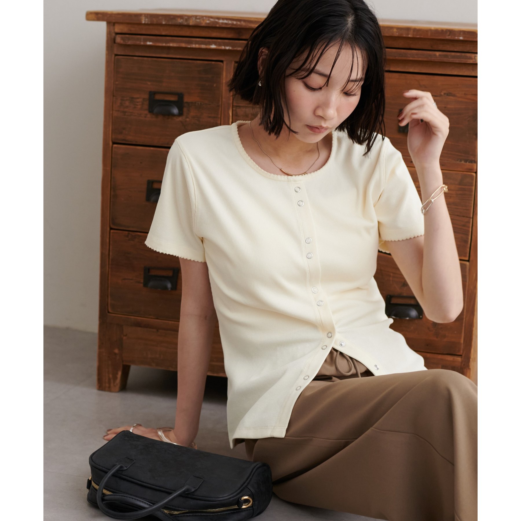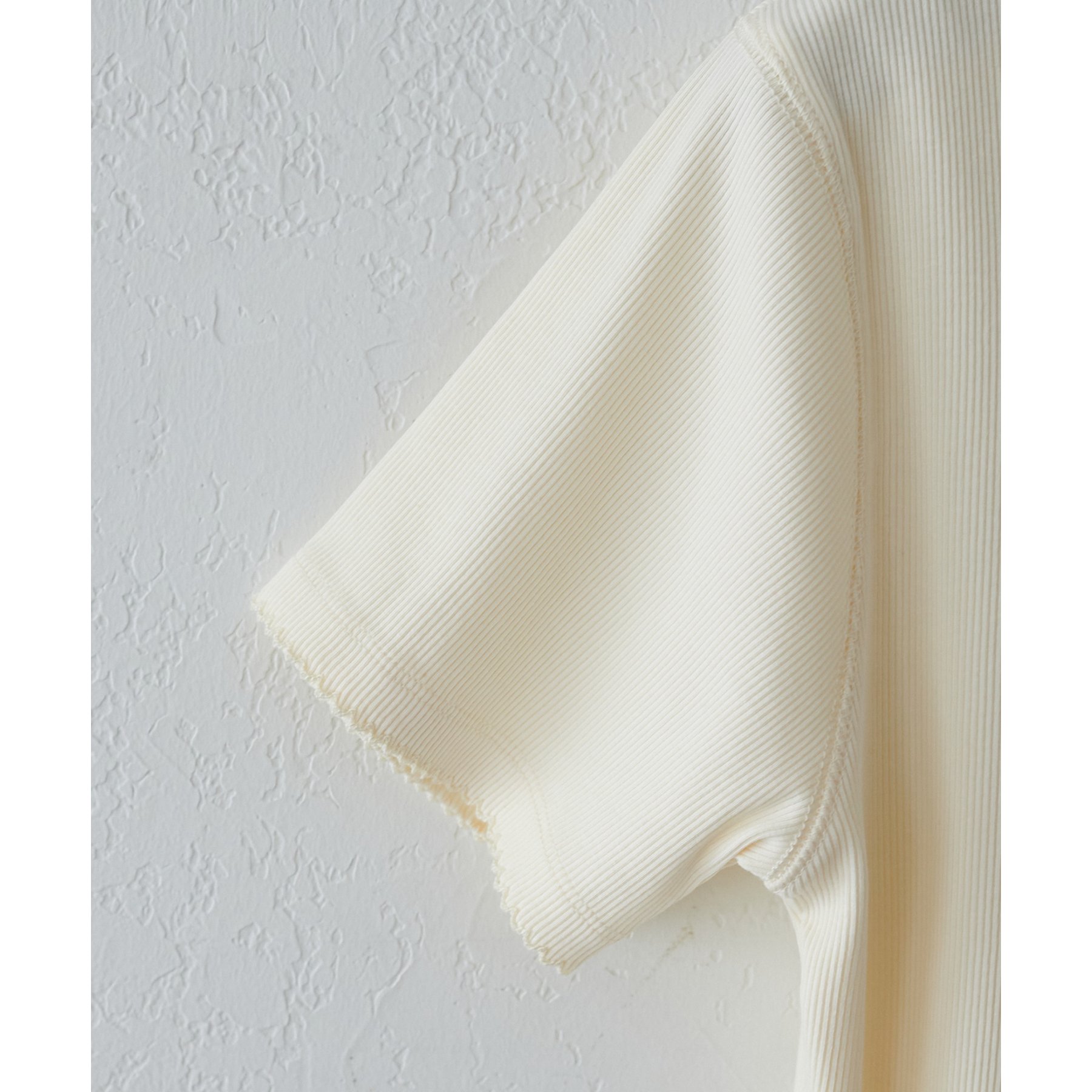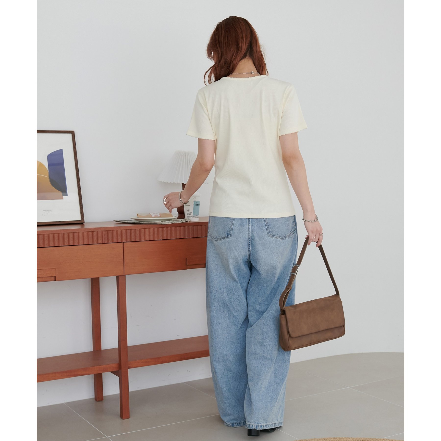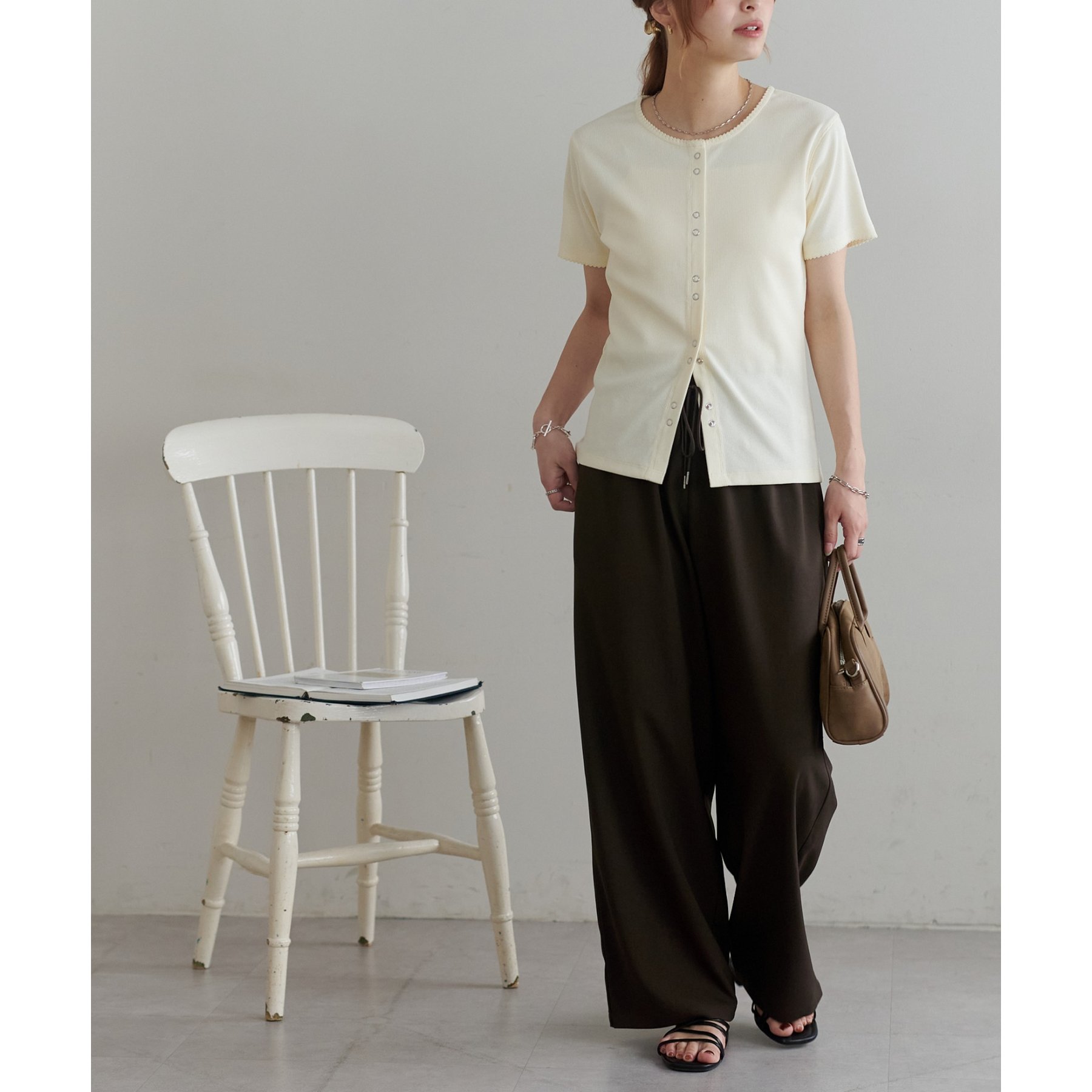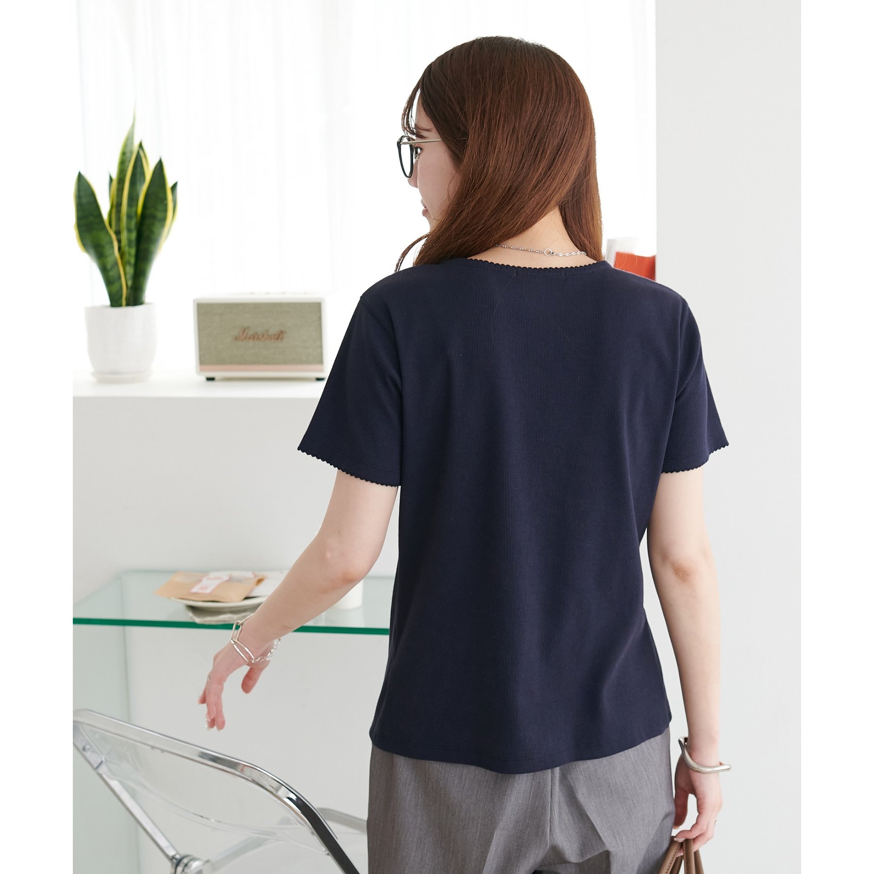 首元と袖口にあしらったピコレースが、シンプルながらもフェミニンさを引き立ててくれる一枚。
