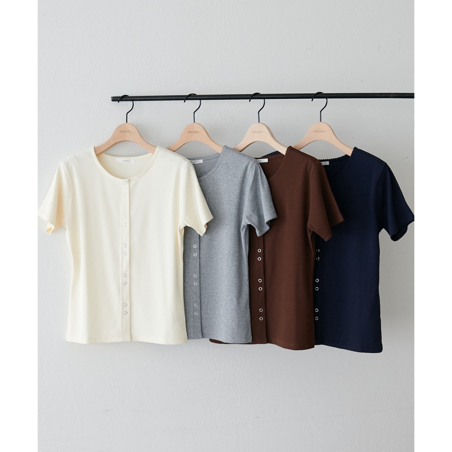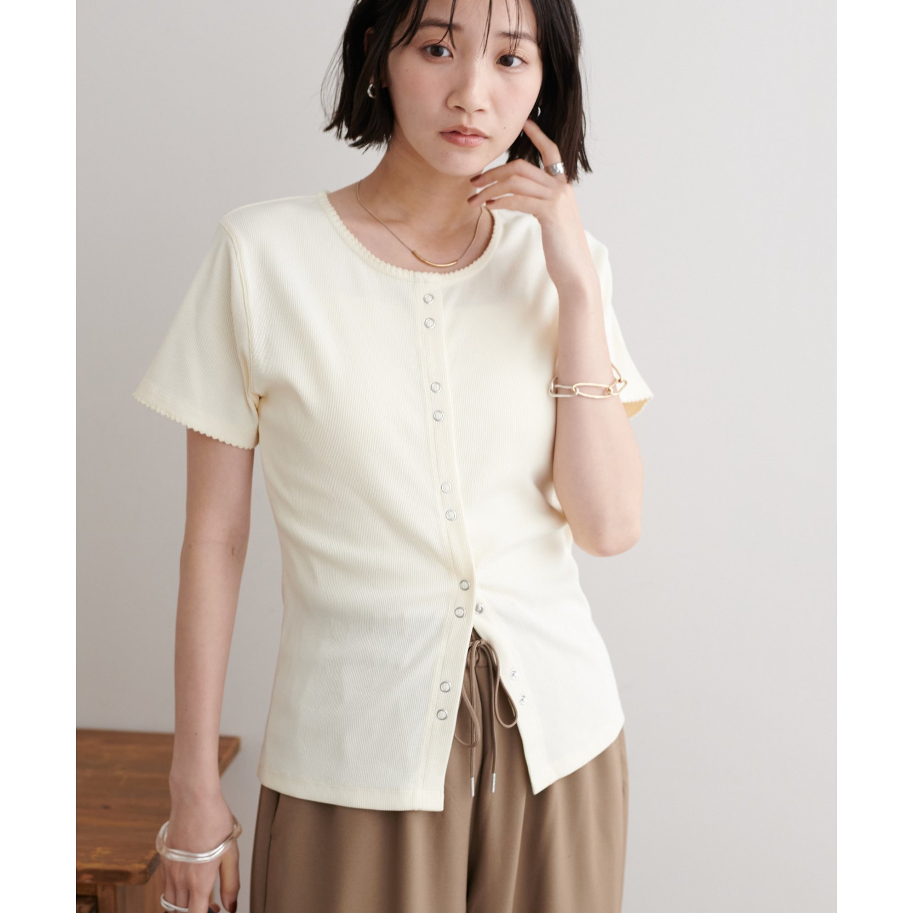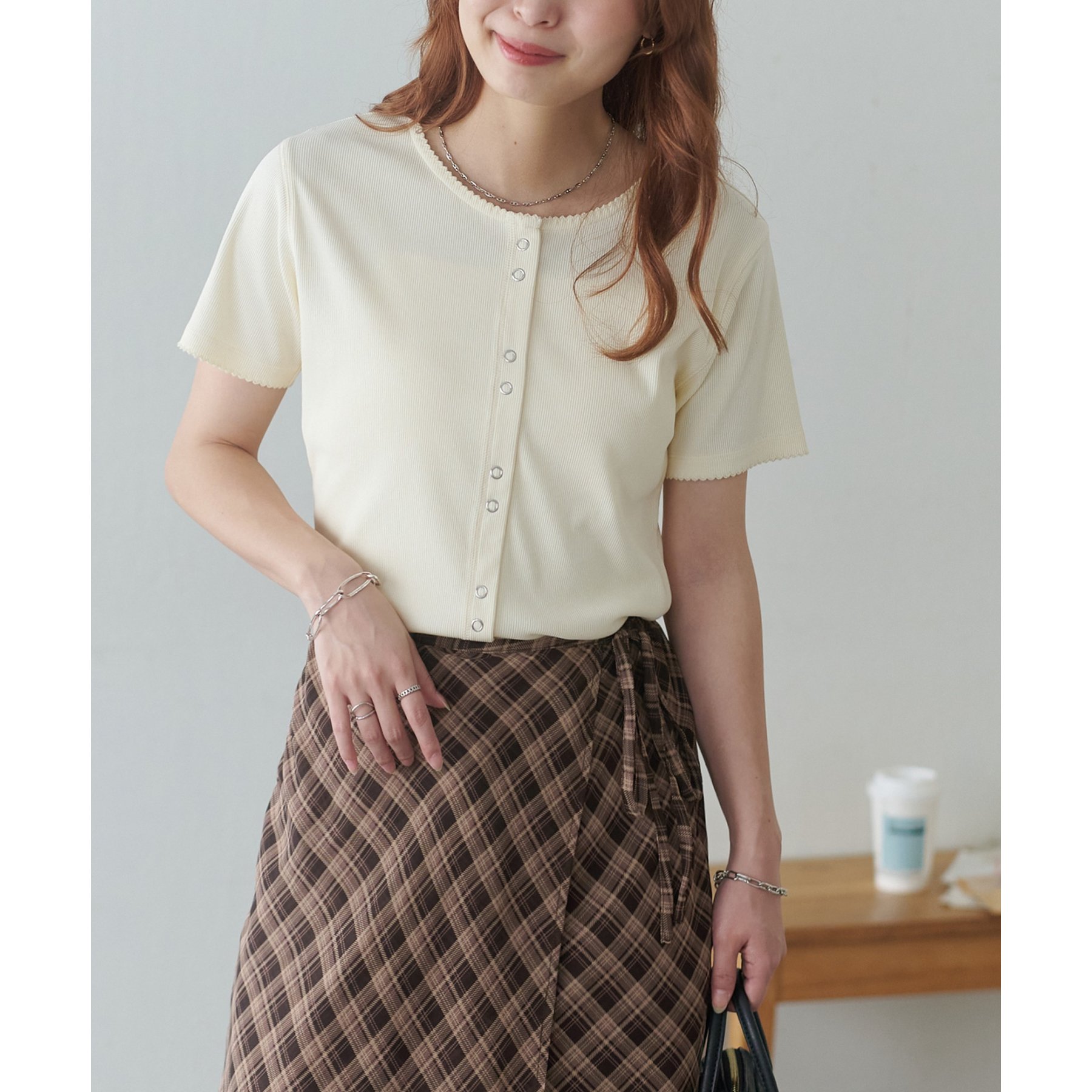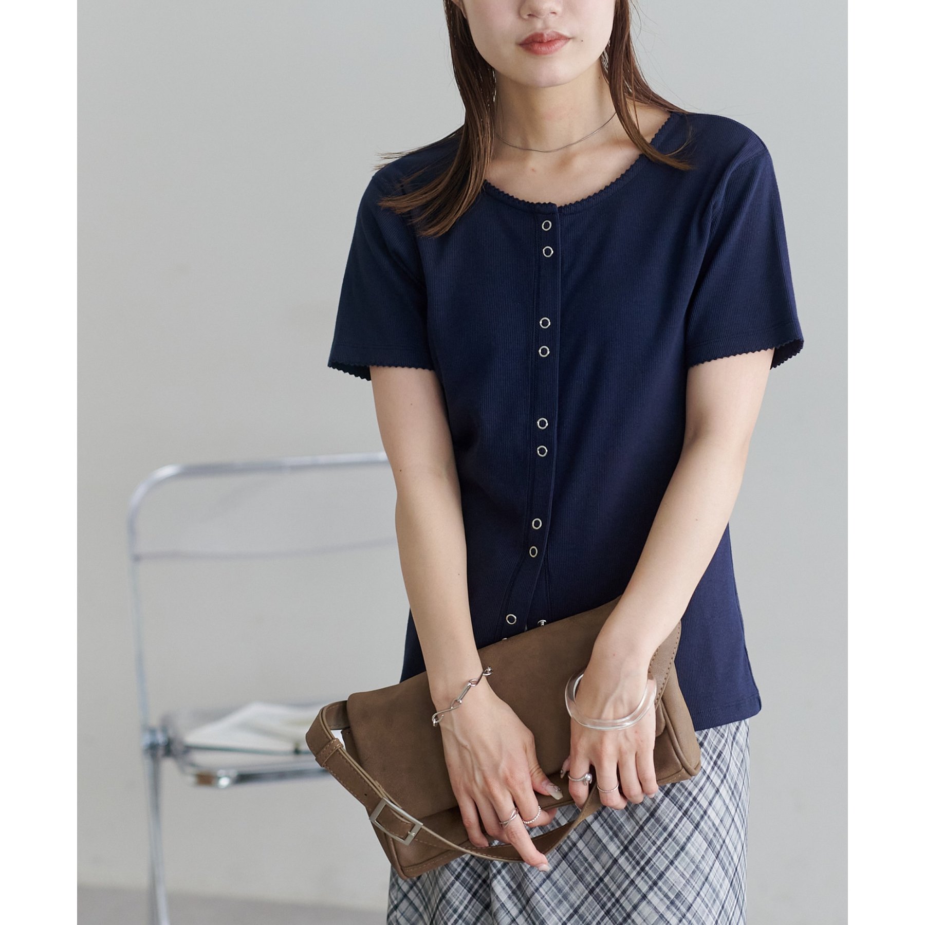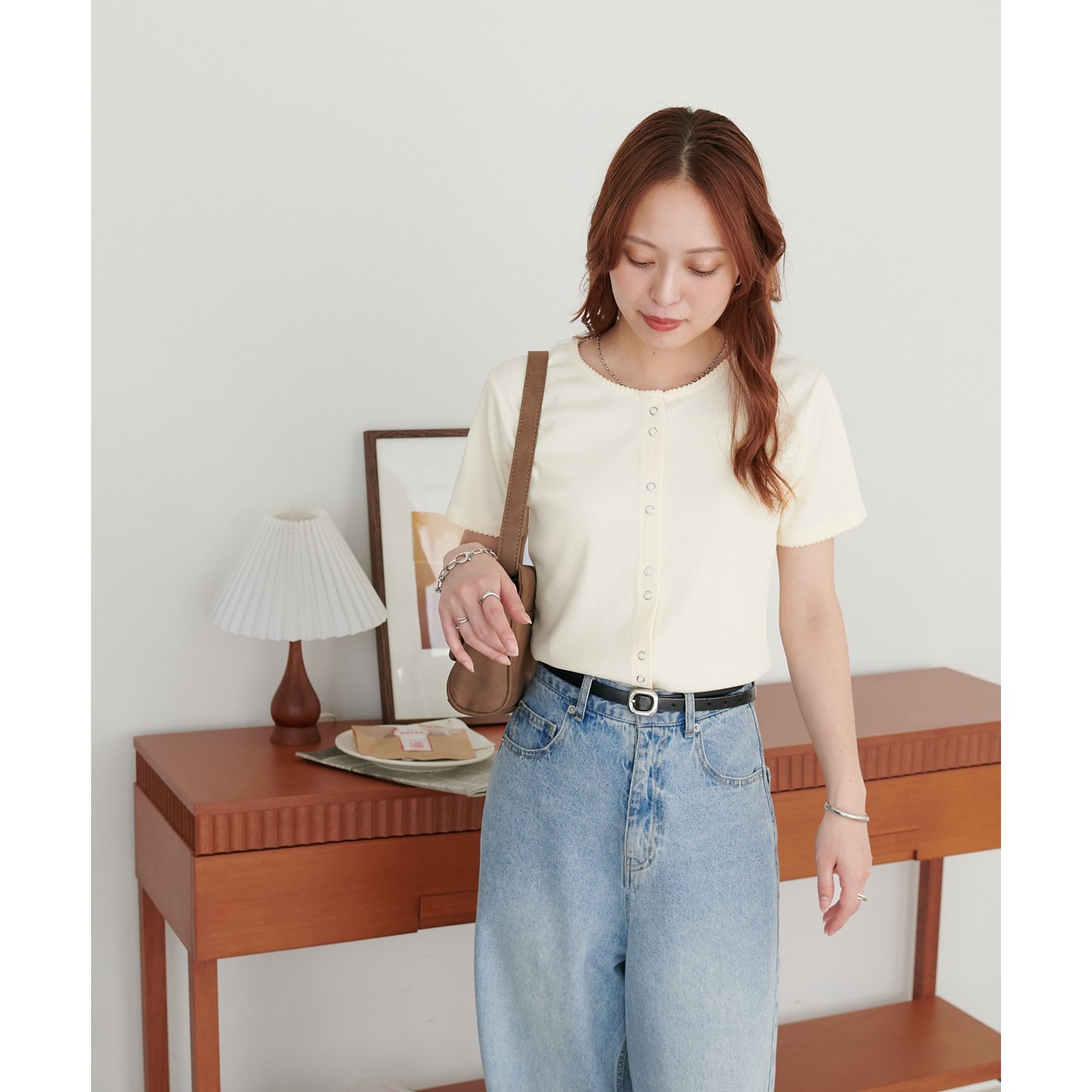 首元と袖口にあしらったピコレースが、シンプルながらもフェミニンさを引き立ててくれる一枚。