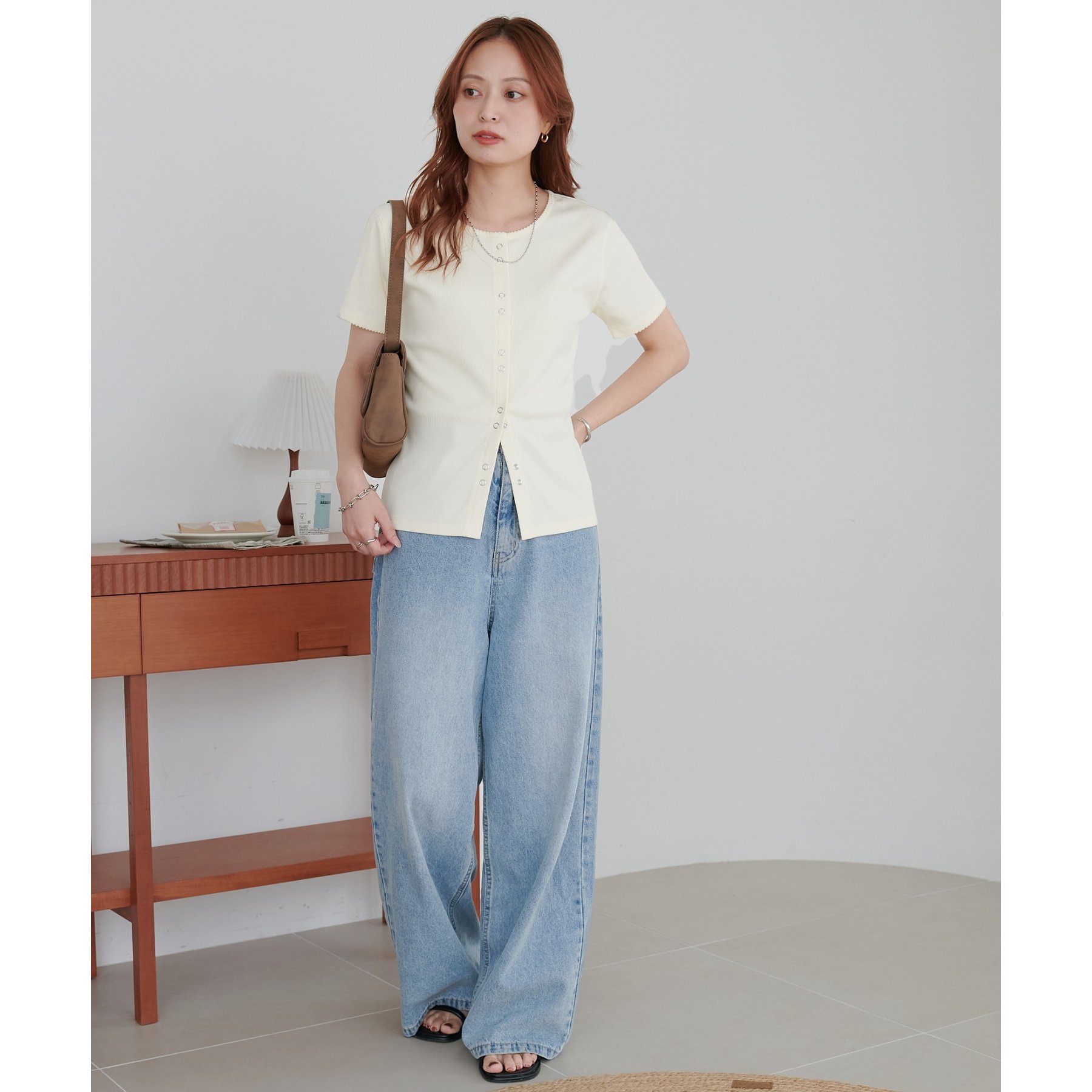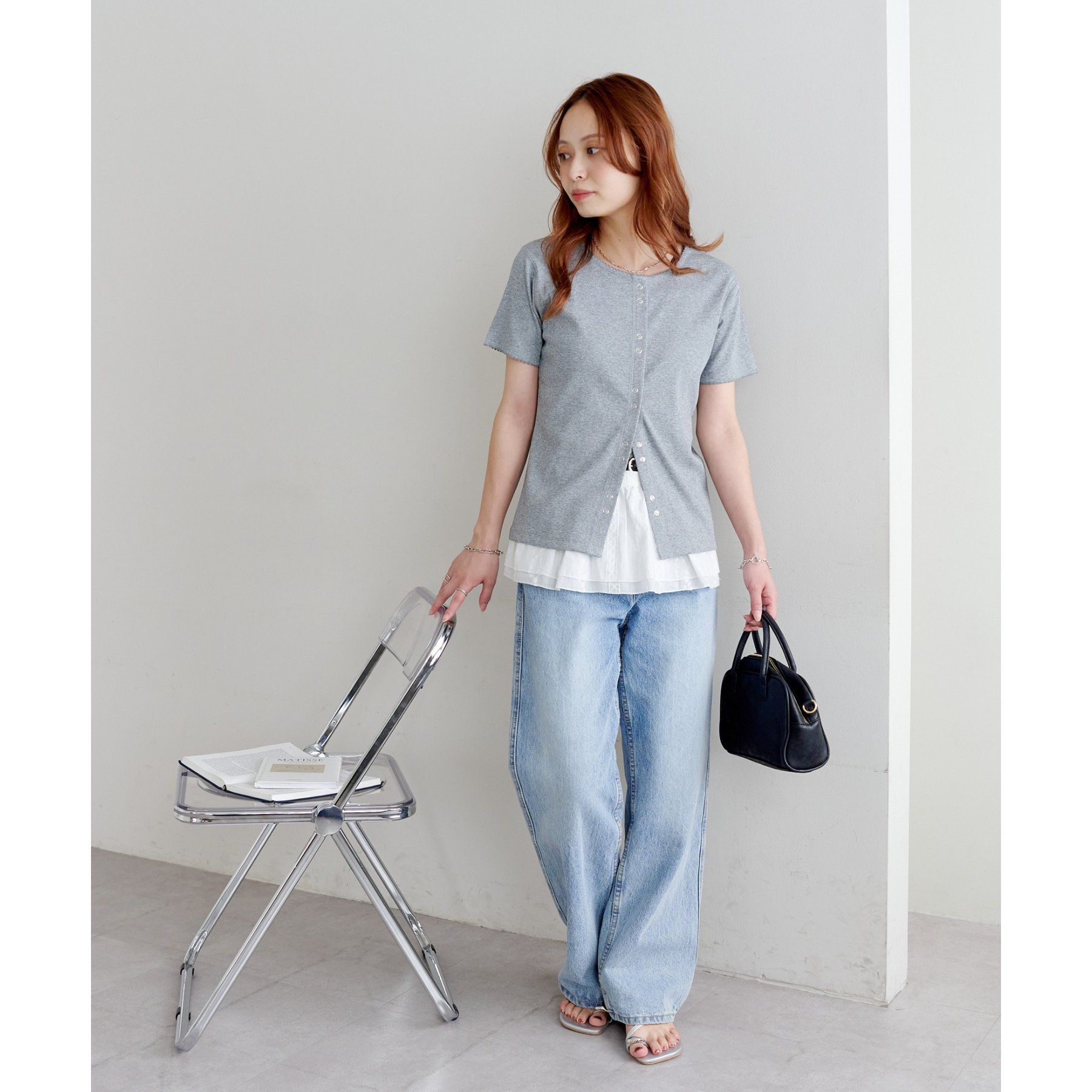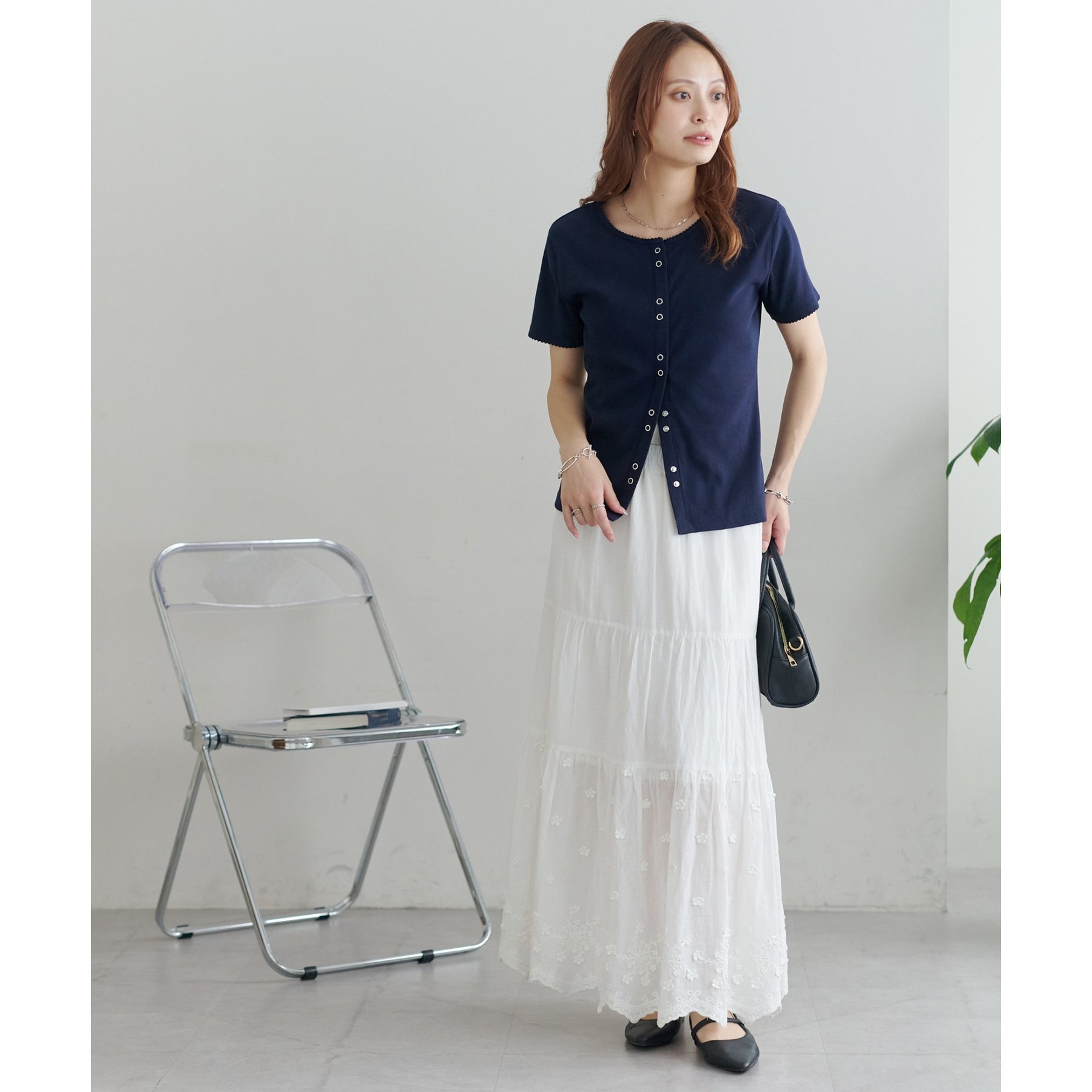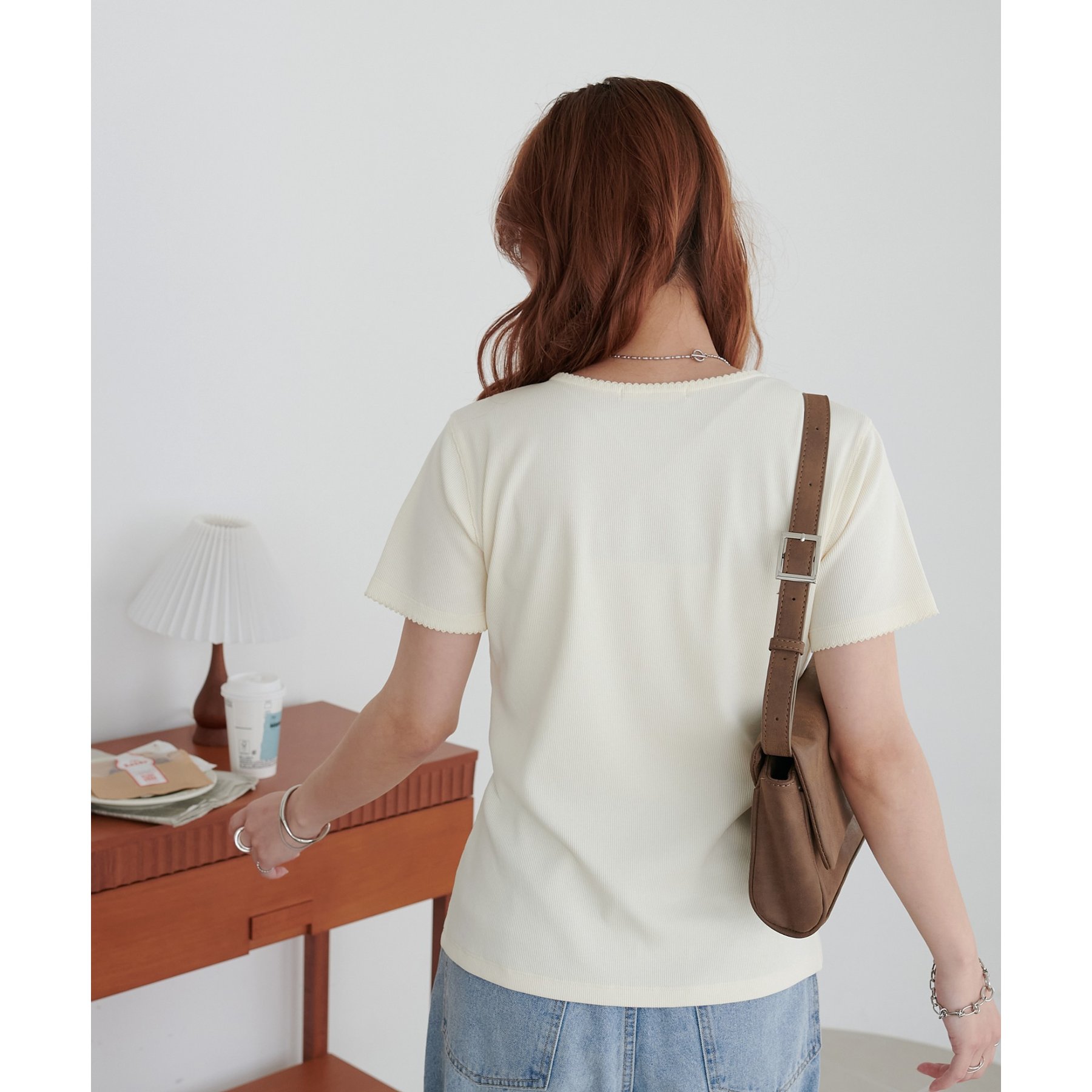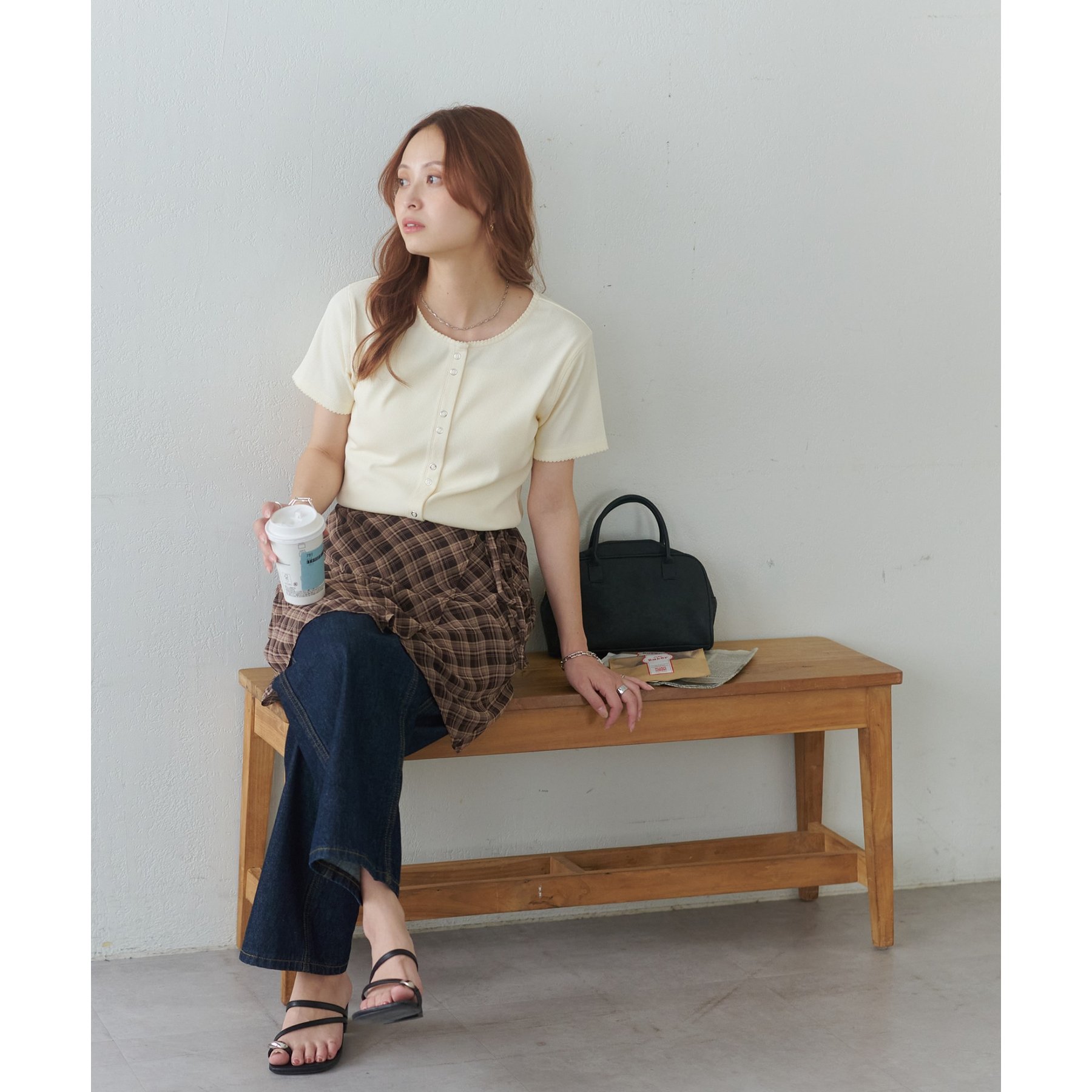 首元と袖口にあしらったピコレースが、シンプルながらもフェミニンさを引き立ててくれる一枚。