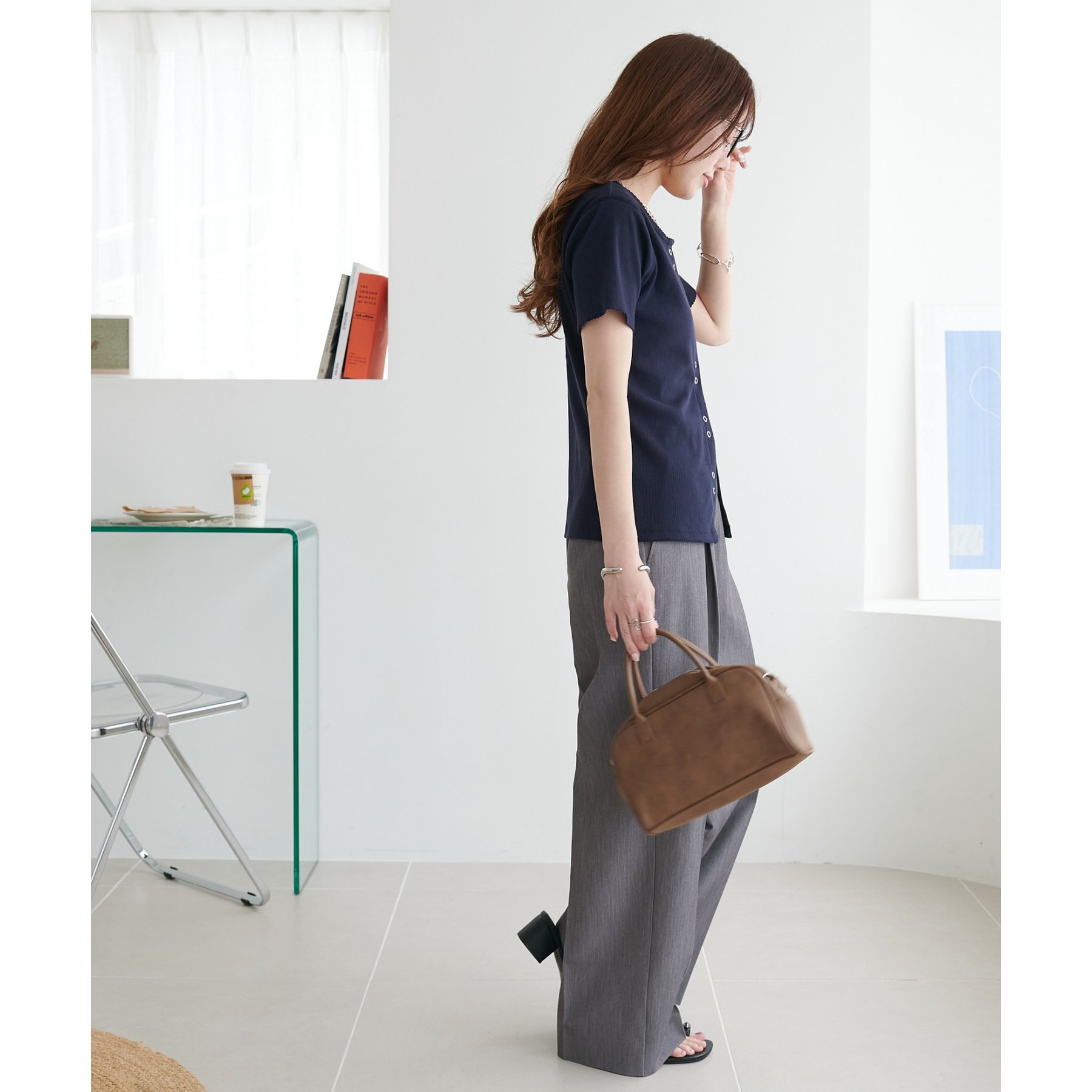 コンパクトなサイズ感をいかして、ワイドめなボトムスと合わせるとバランスよく着こなせます。