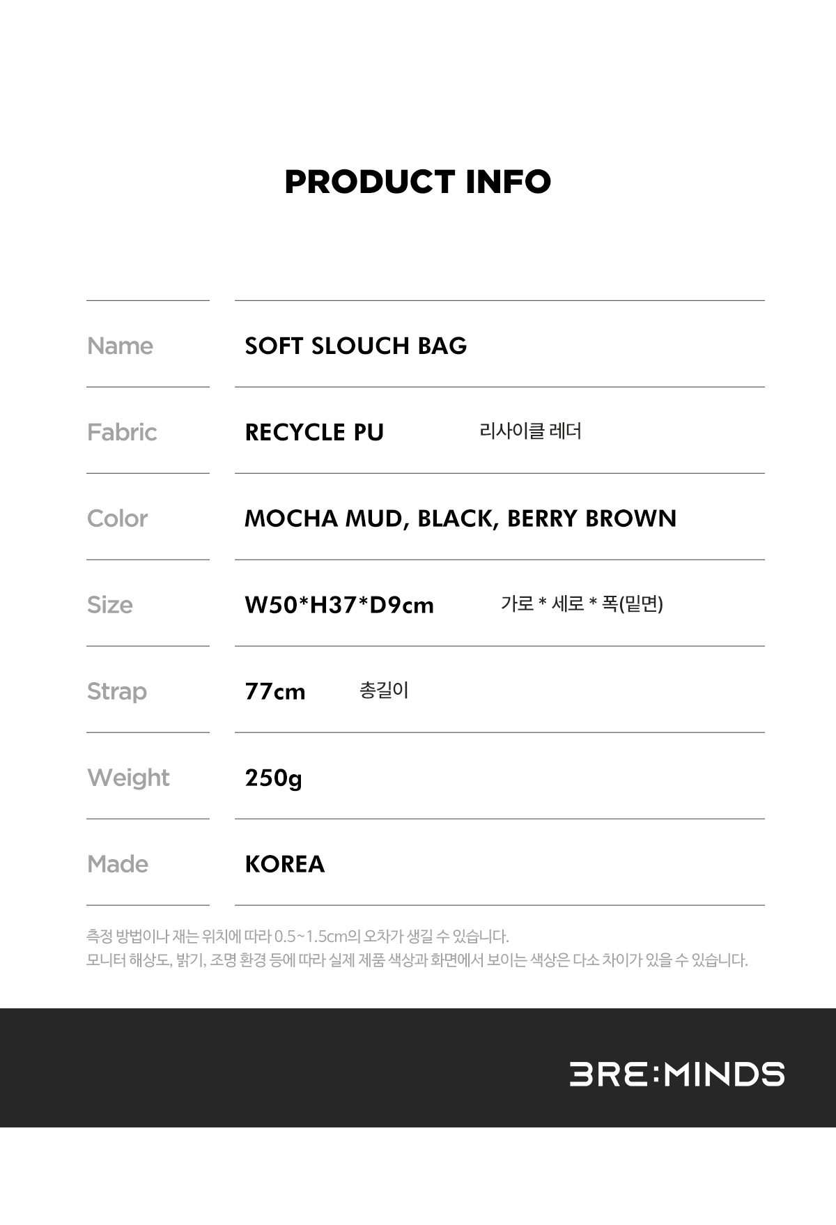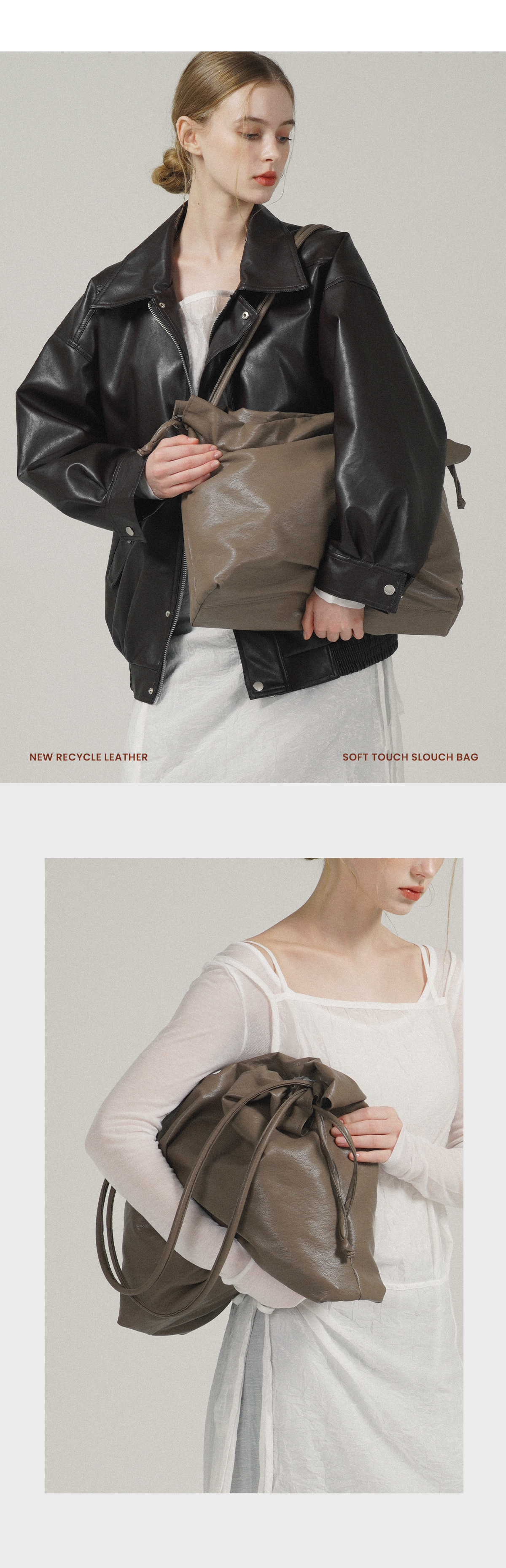 TRM Recycle Leather Soft Slouch Bag T55P