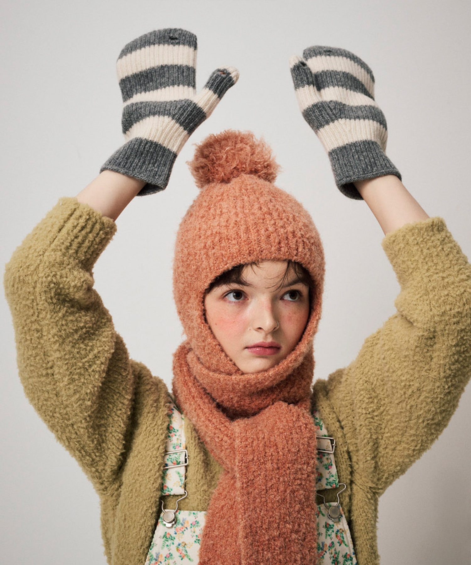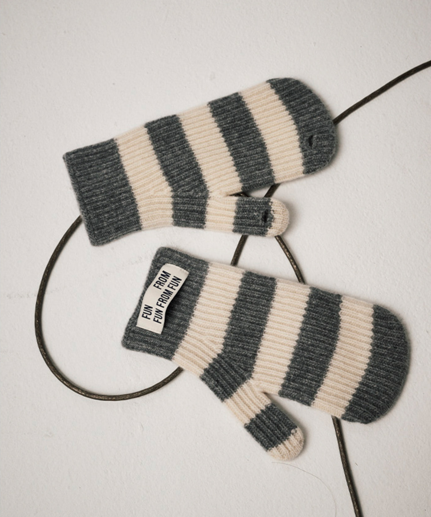 STRIPE MITTENS, GREY+IVORY