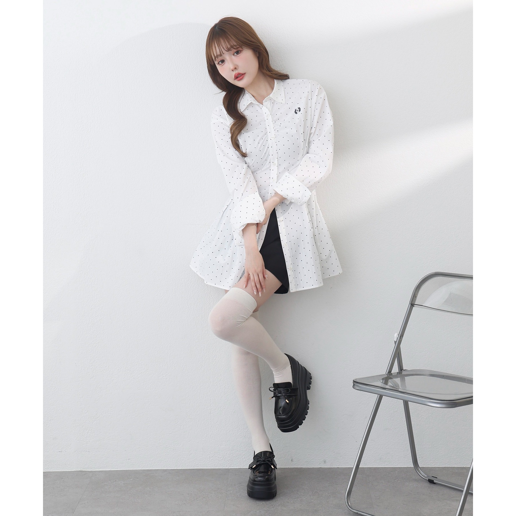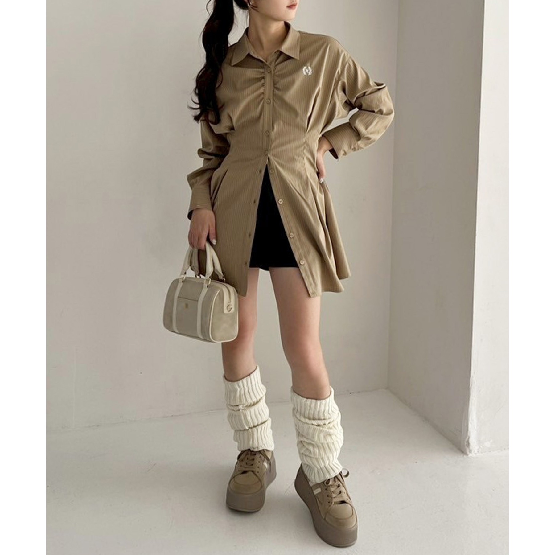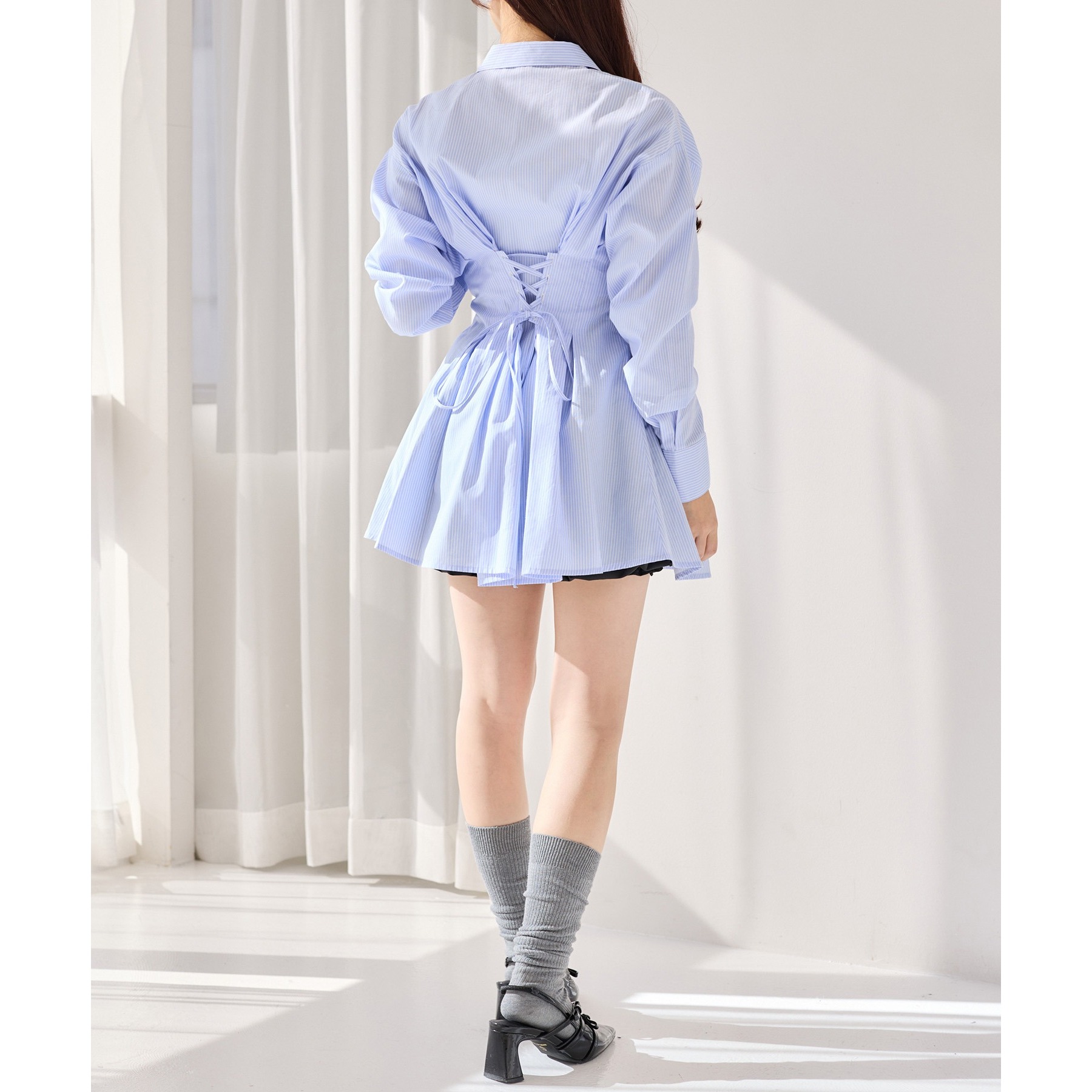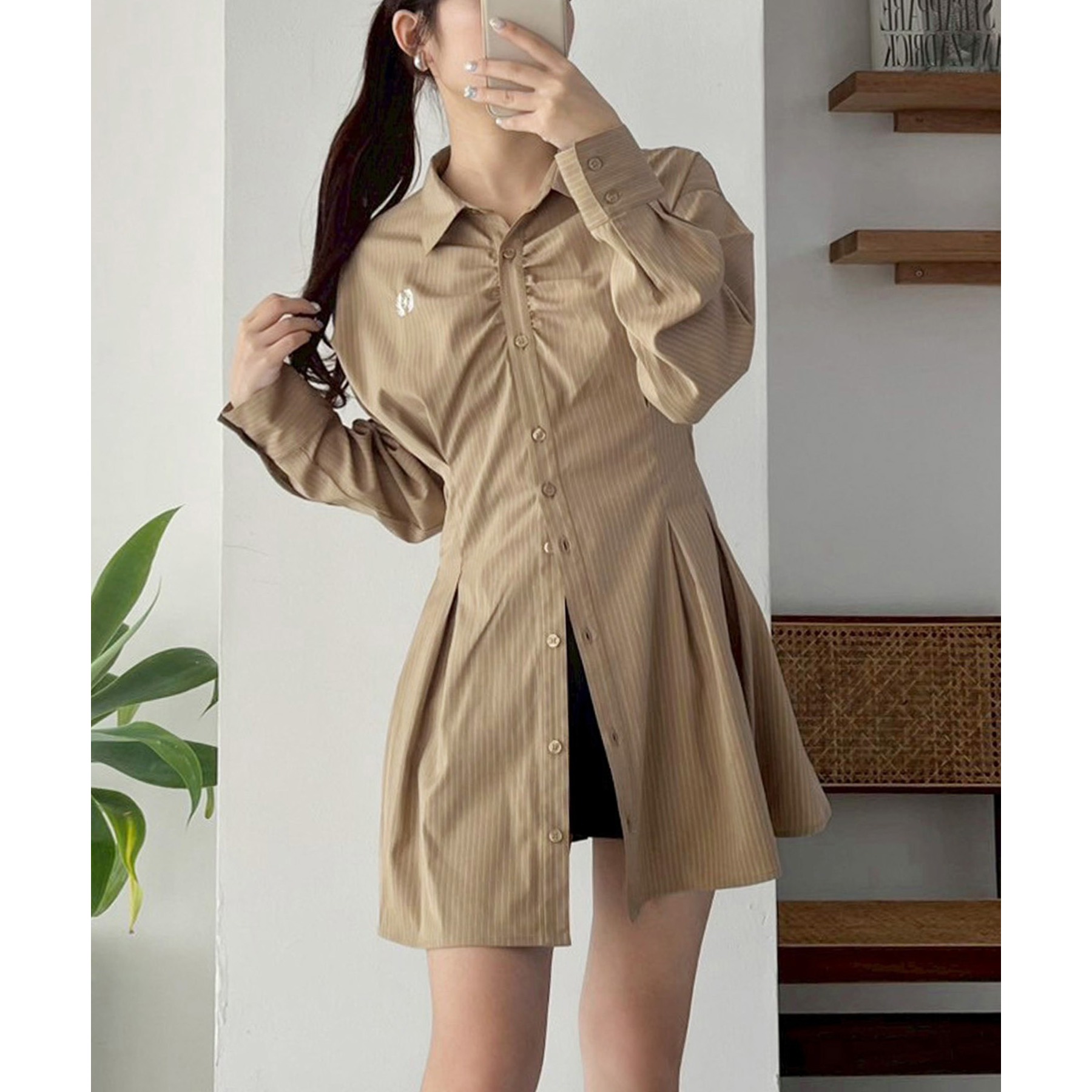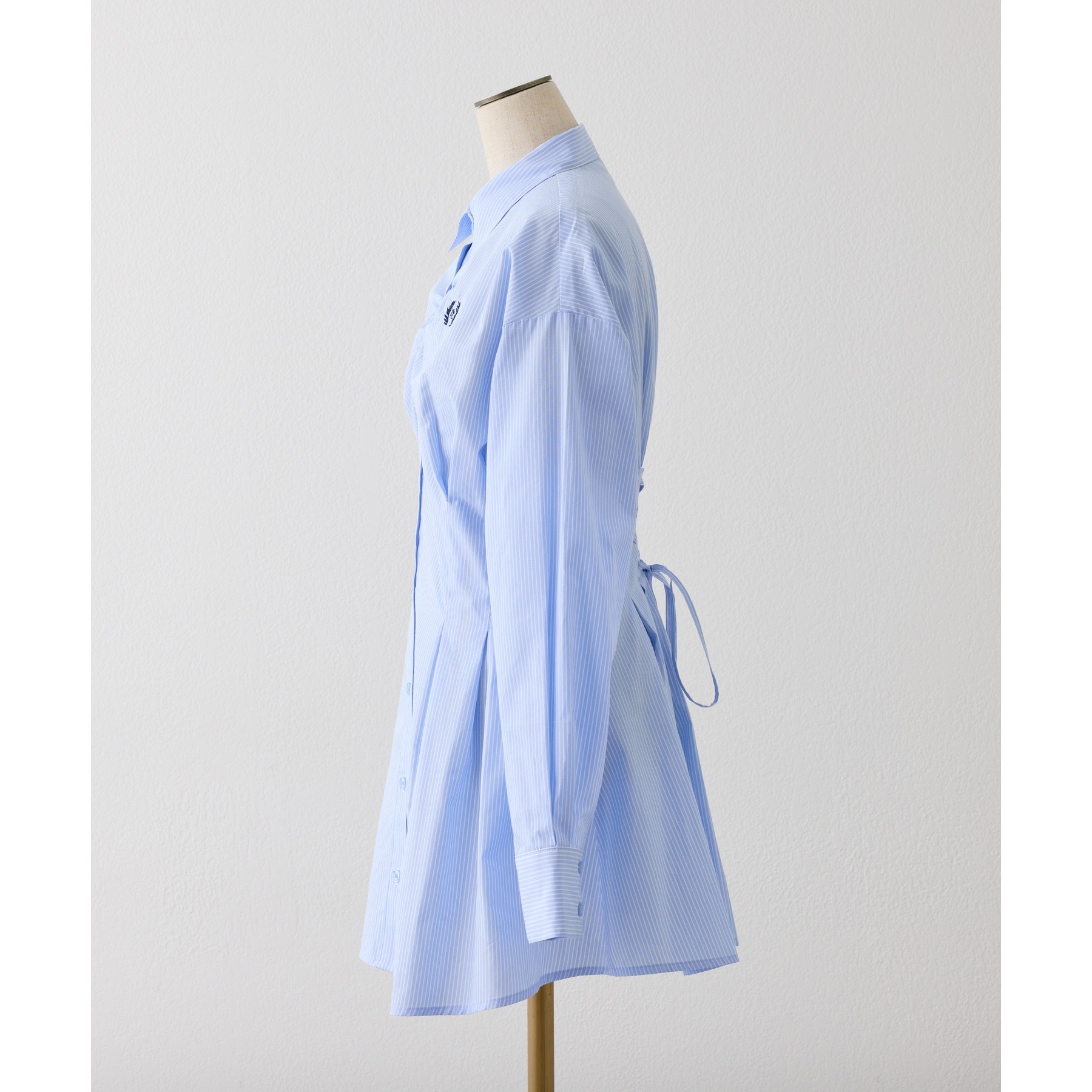 着るだけでスタイルアップができ、ウエスト細見え間違いなしのミドル丈のシャツ。