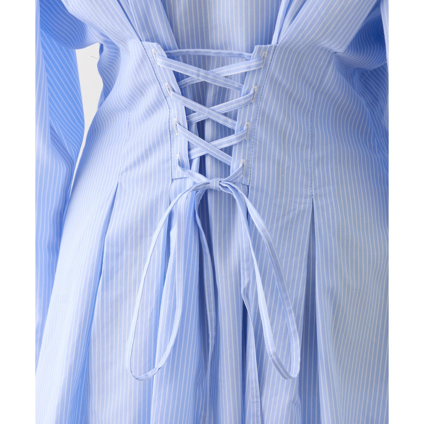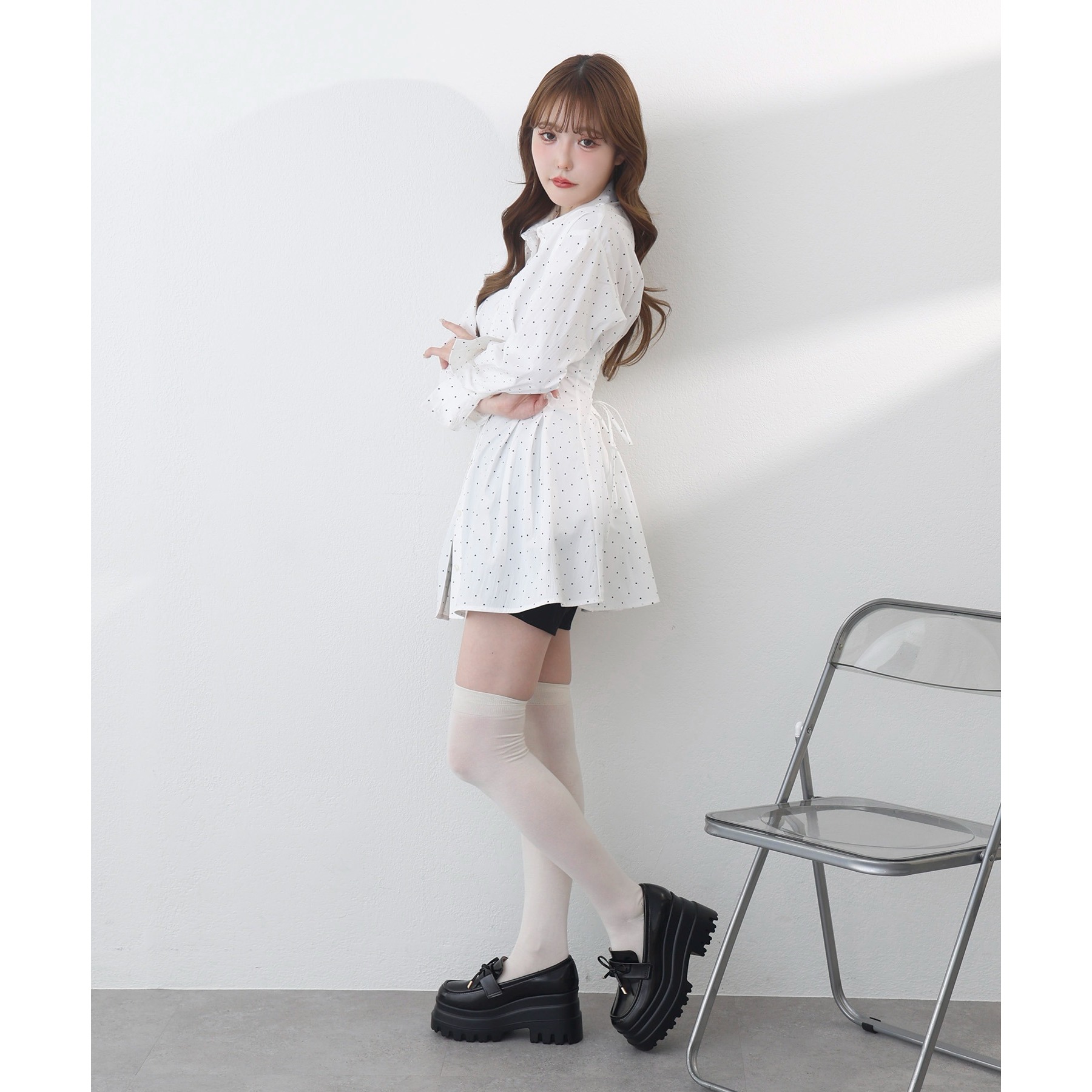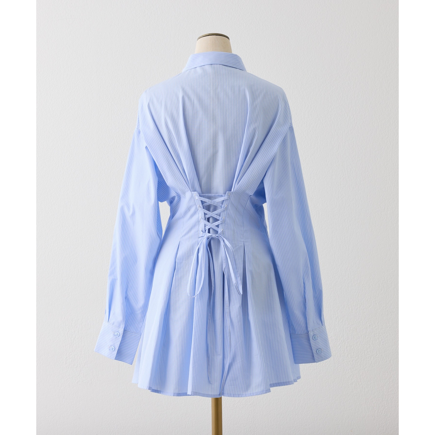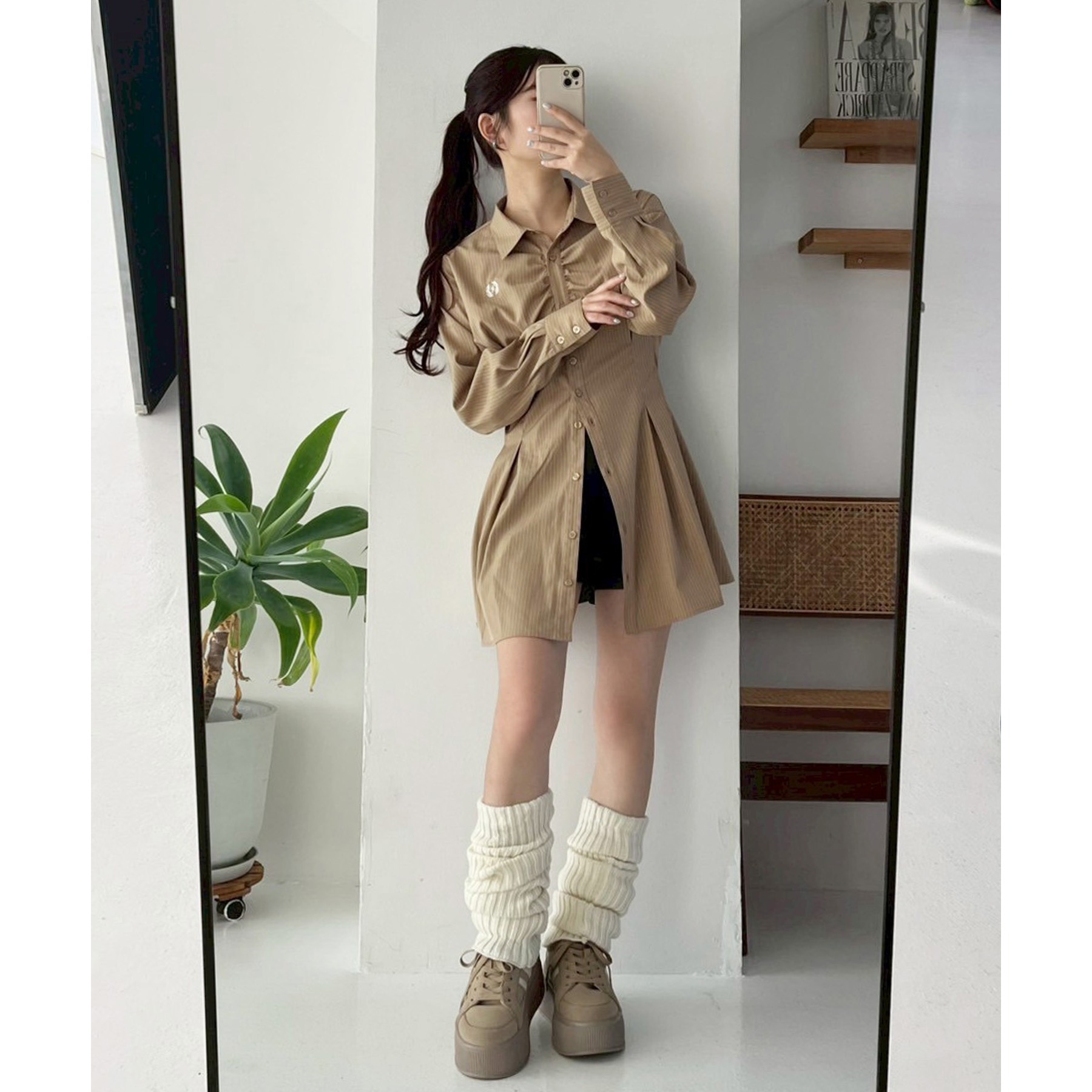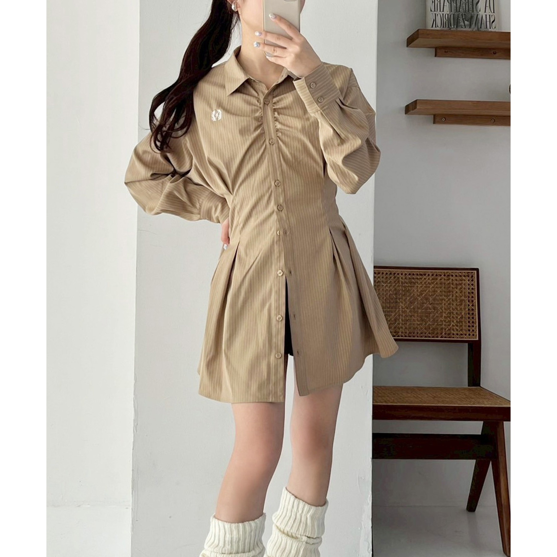 着るだけでスタイルアップができ、ウエスト細見え間違いなしのミドル丈のシャツ。