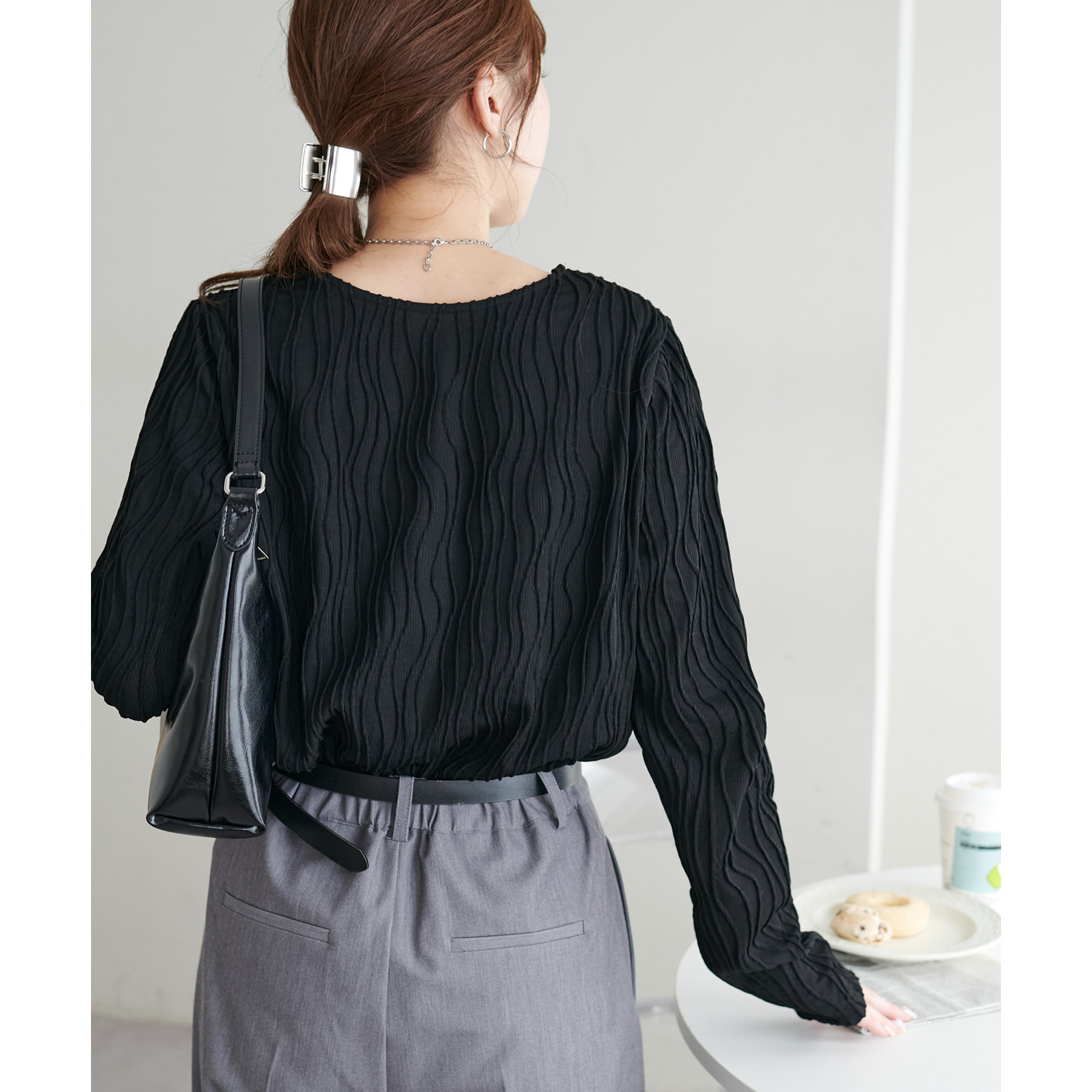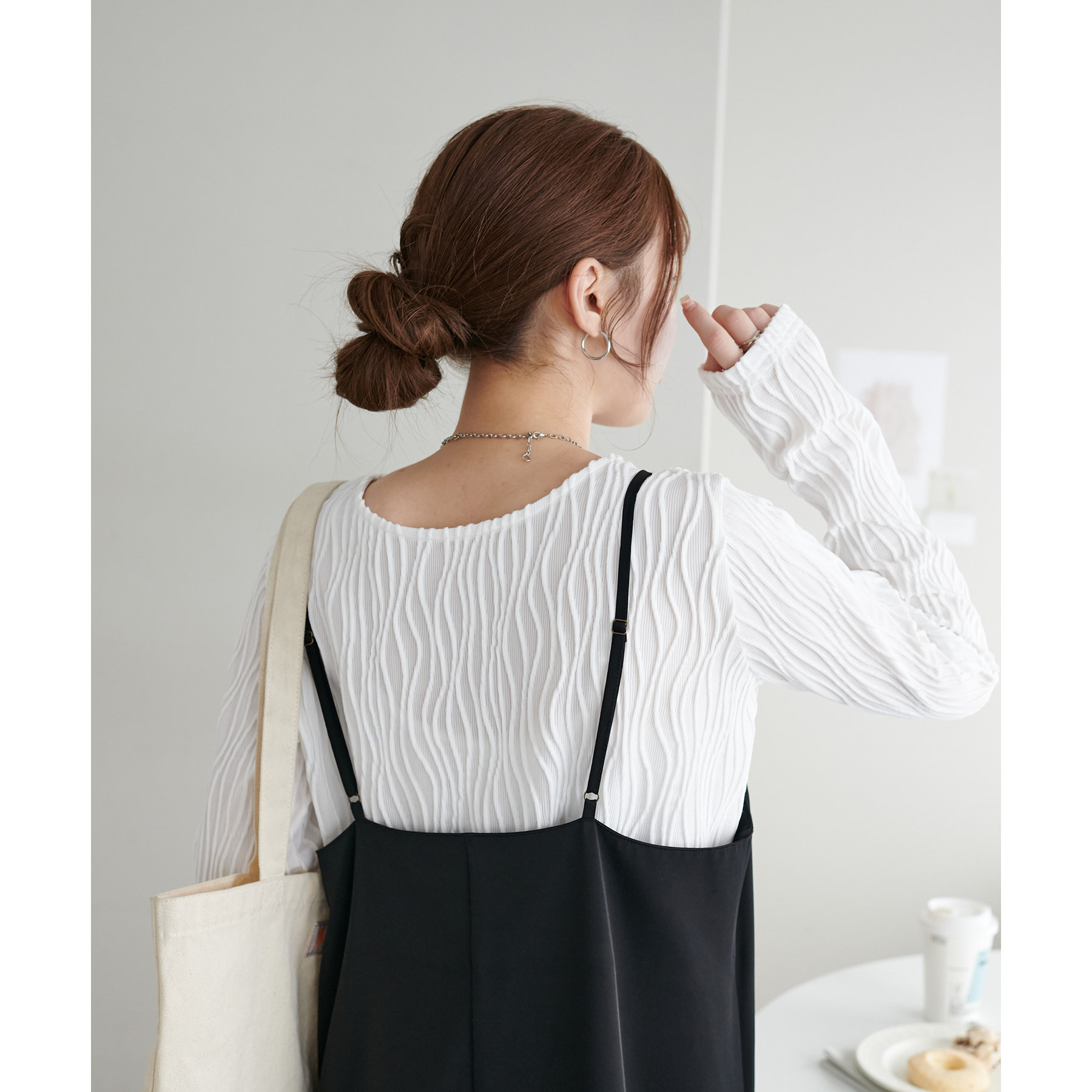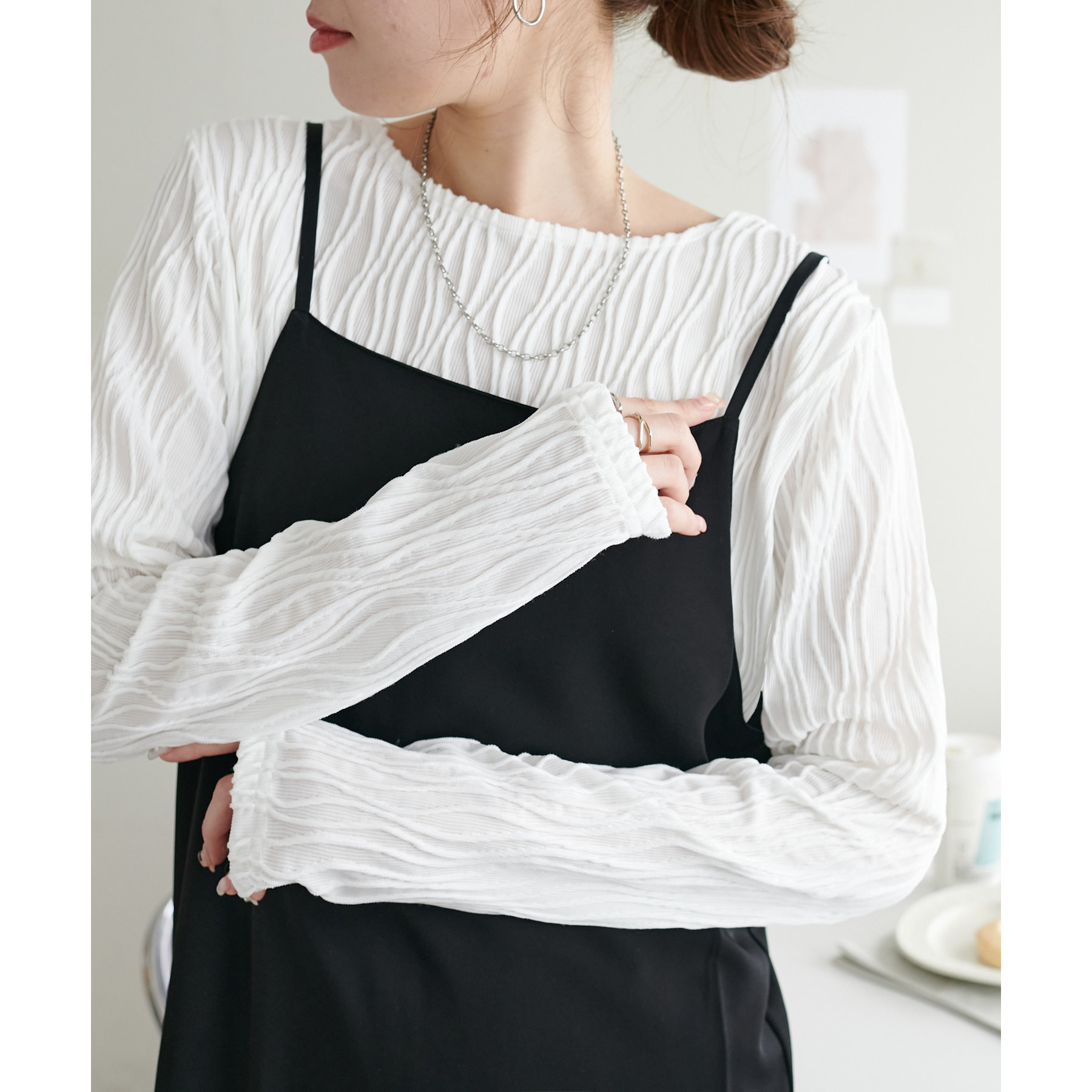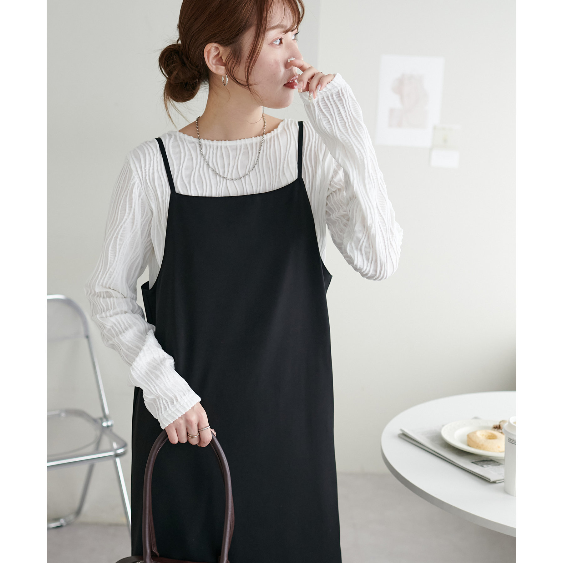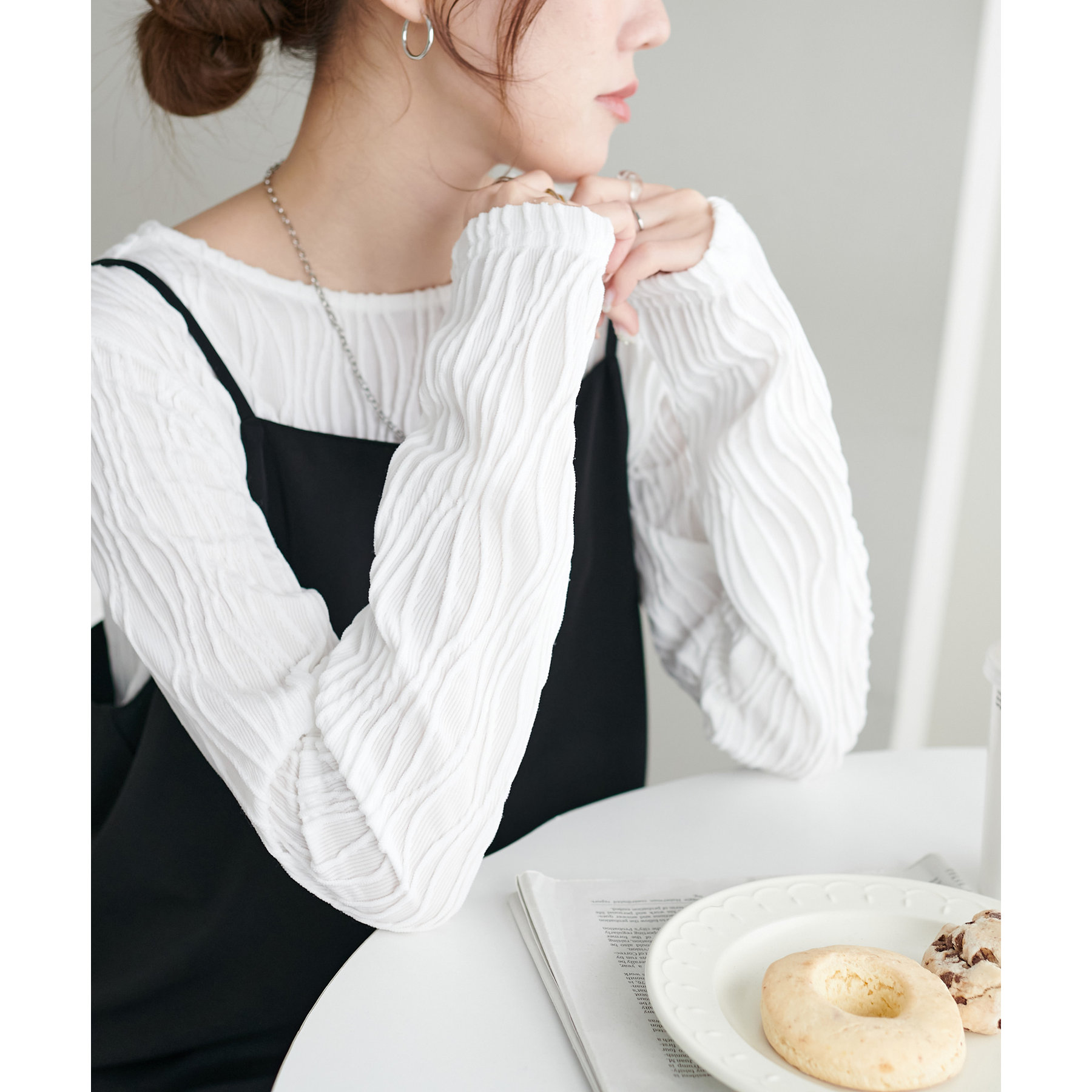 首元は詰まりすぎていないので、お顔回りはすっきりとした印象で着ることができます〇