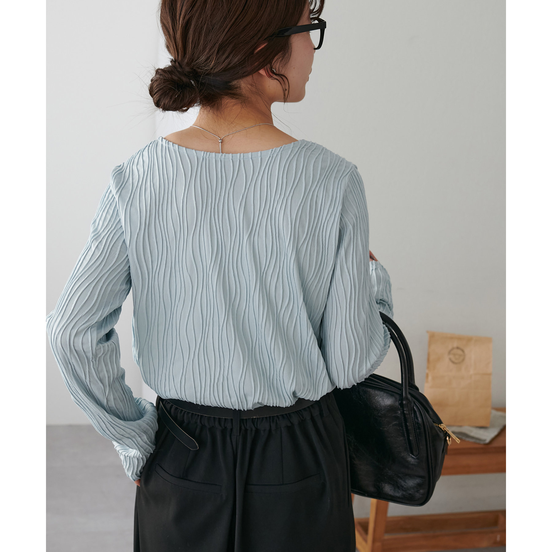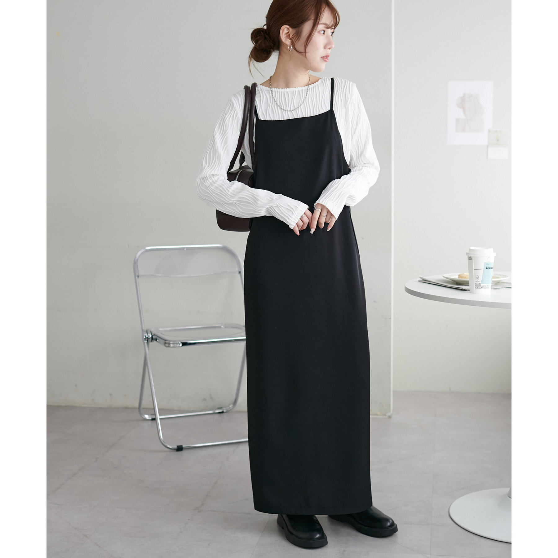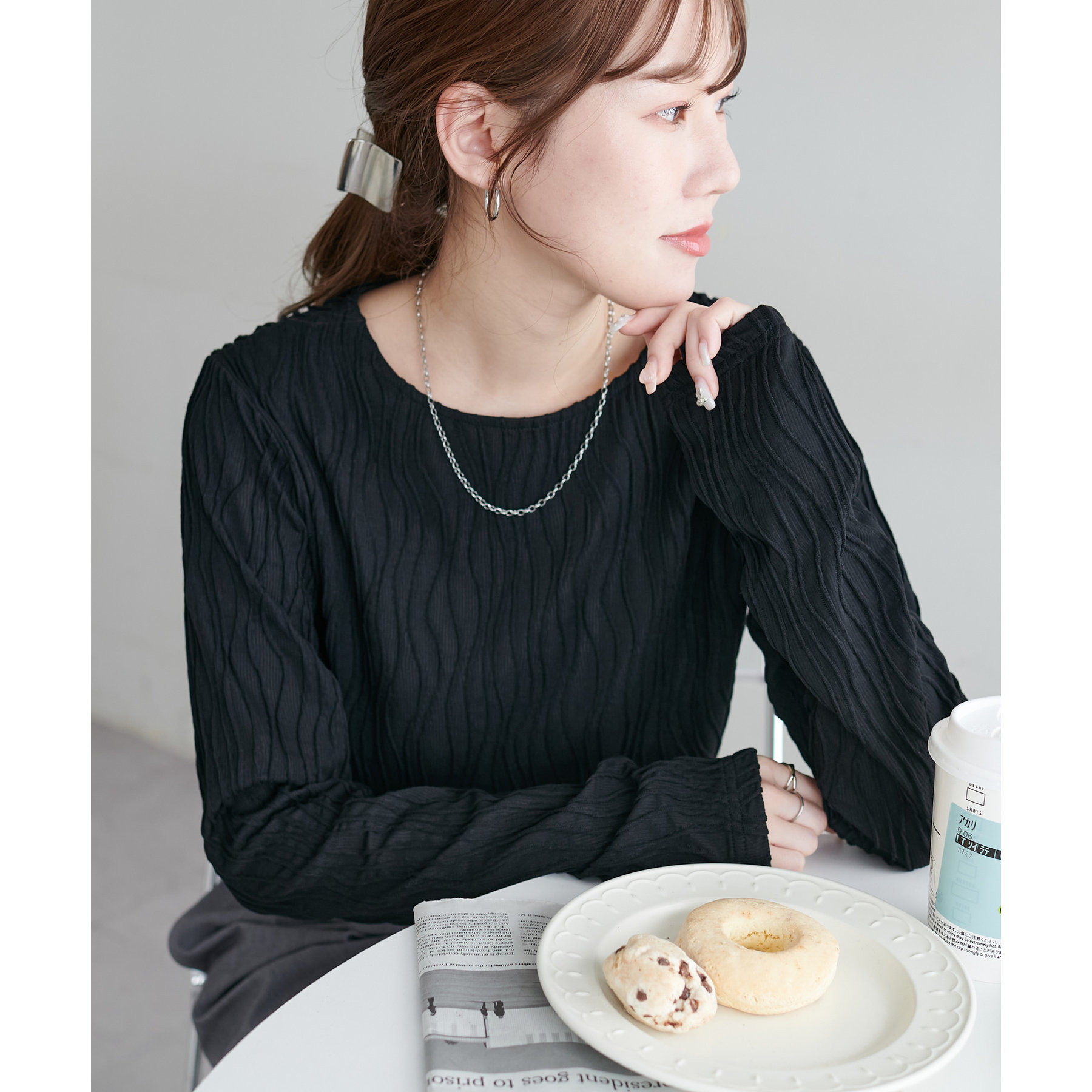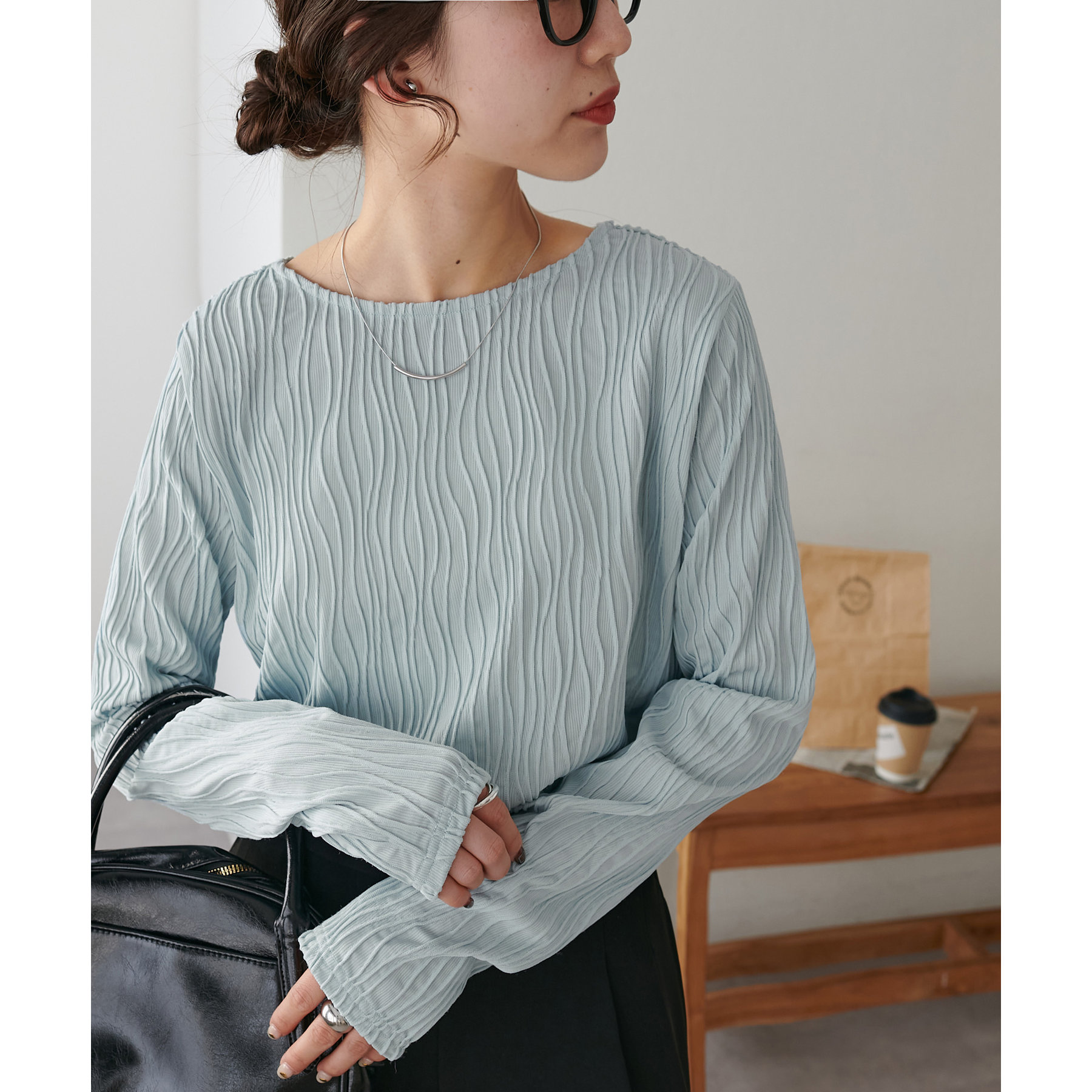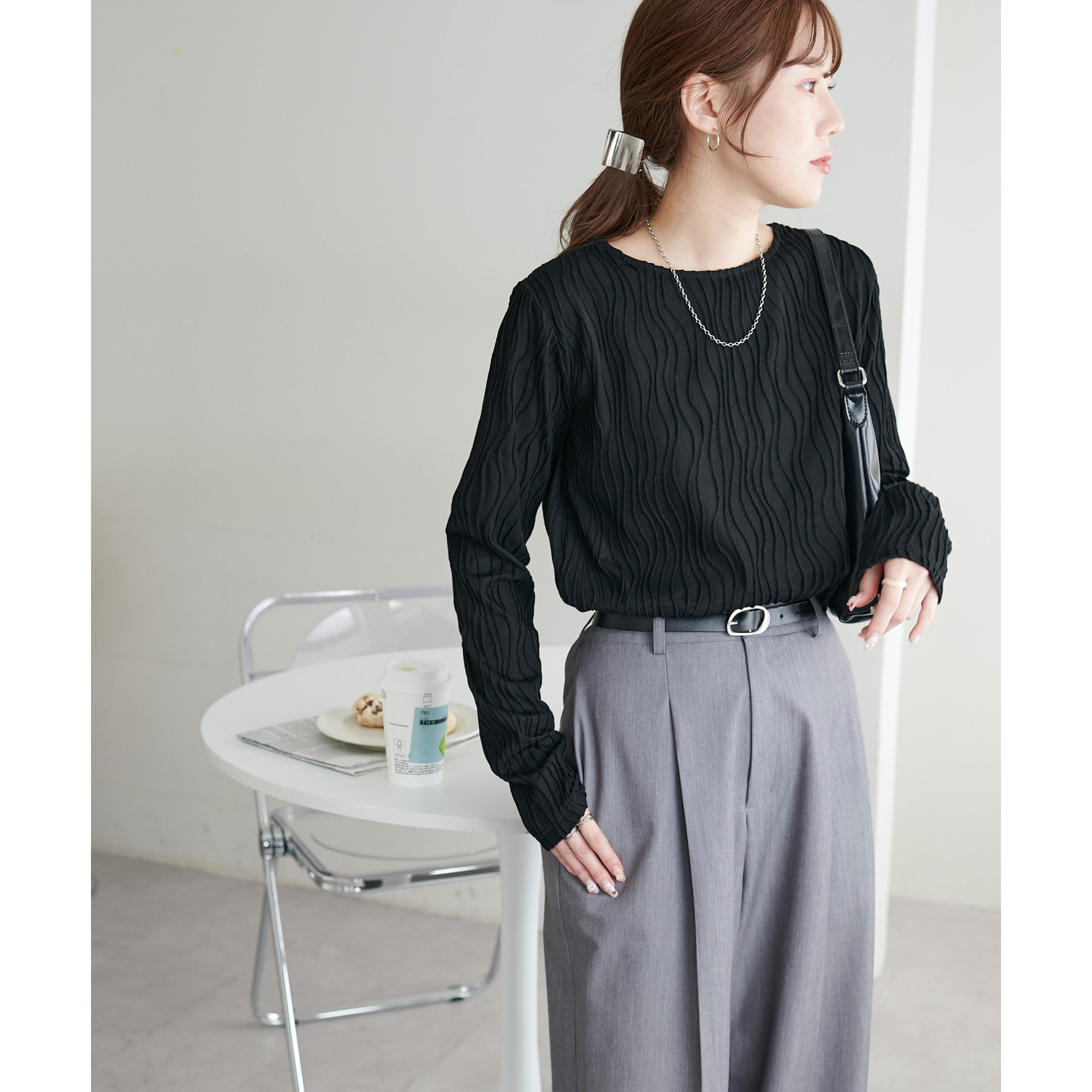 首元は詰まりすぎていないので、お顔回りはすっきりとした印象で着ることができます〇