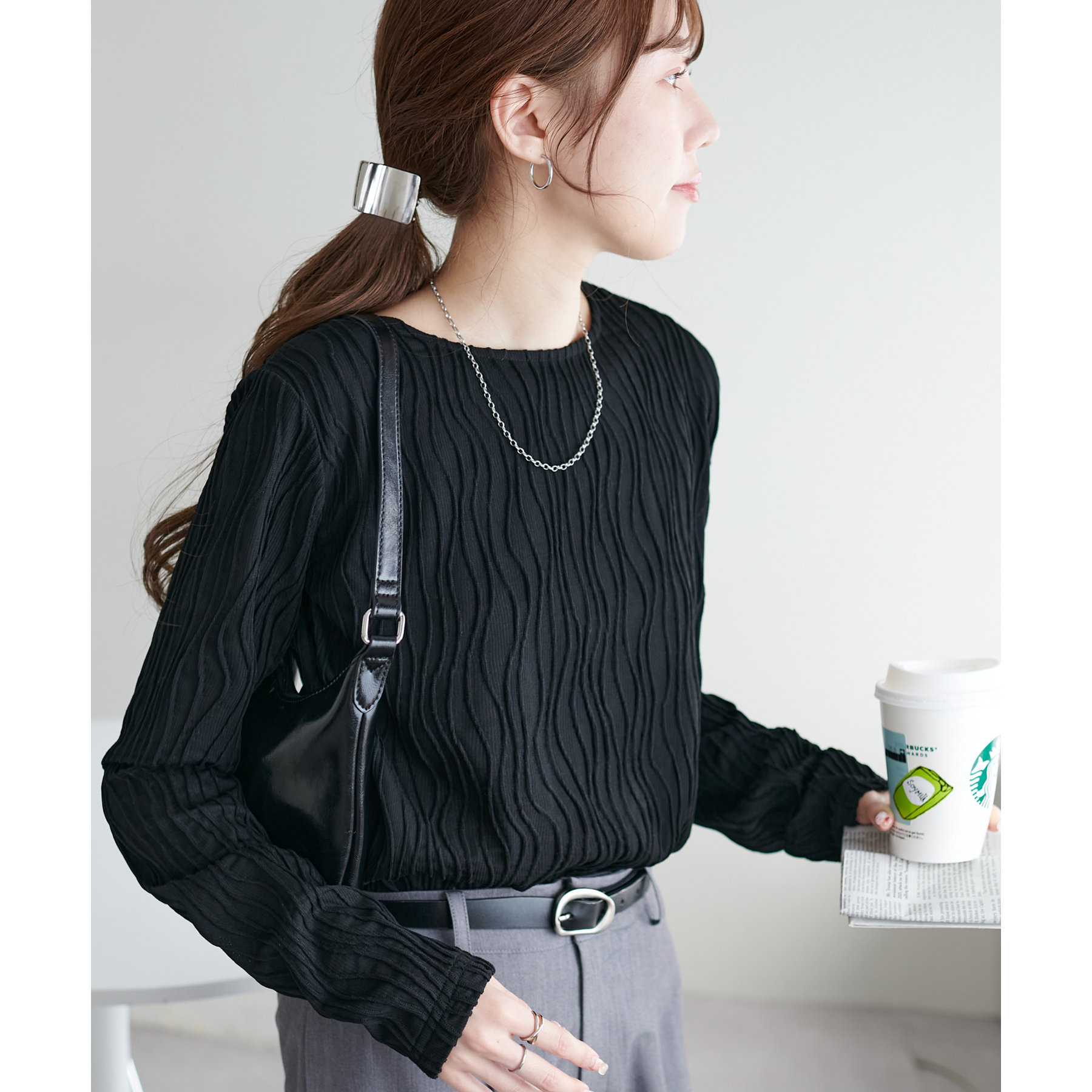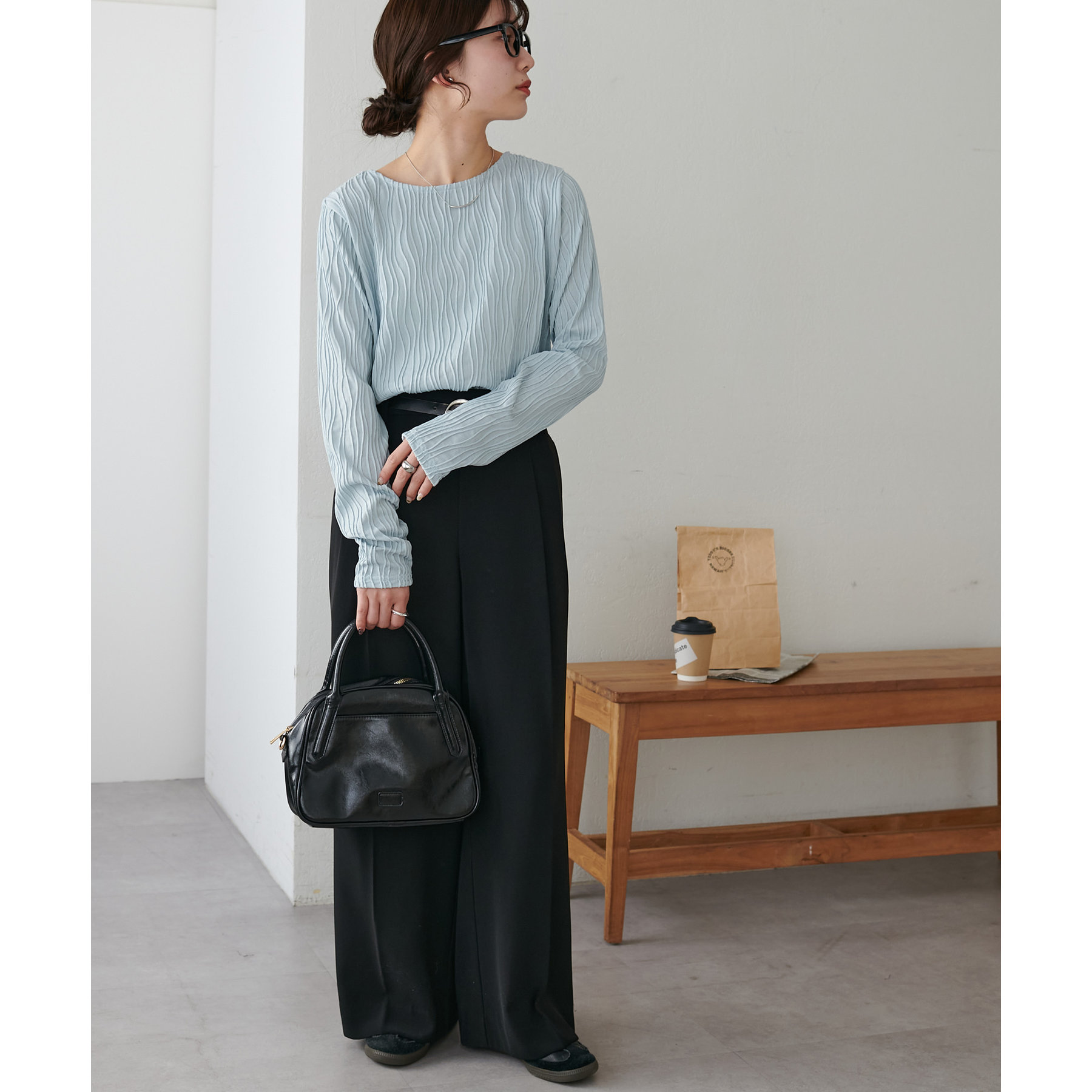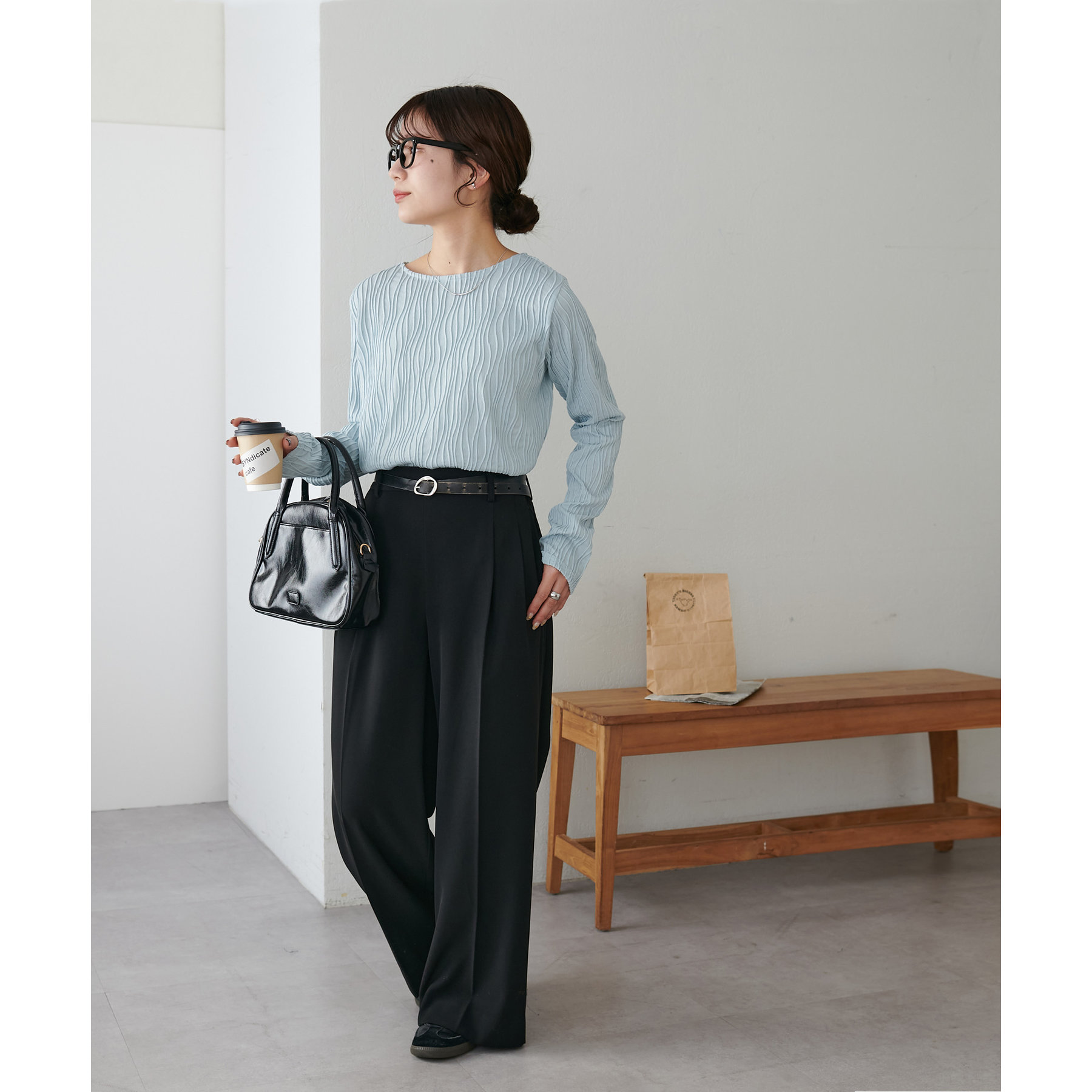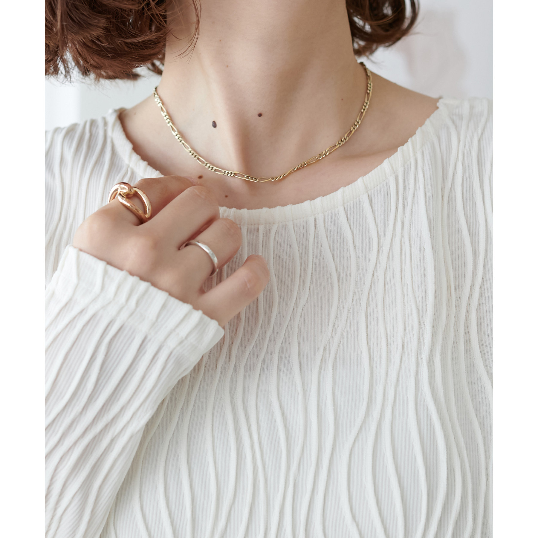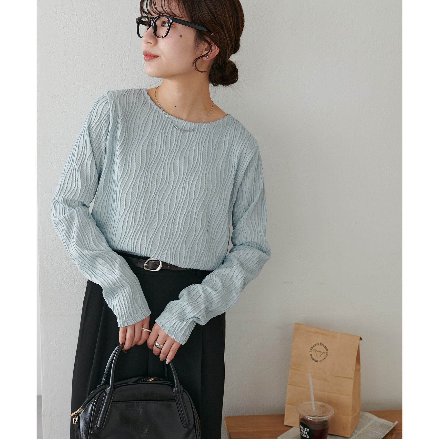首元は詰まりすぎていないので、お顔回りはすっきりとした印象で着ることができます〇