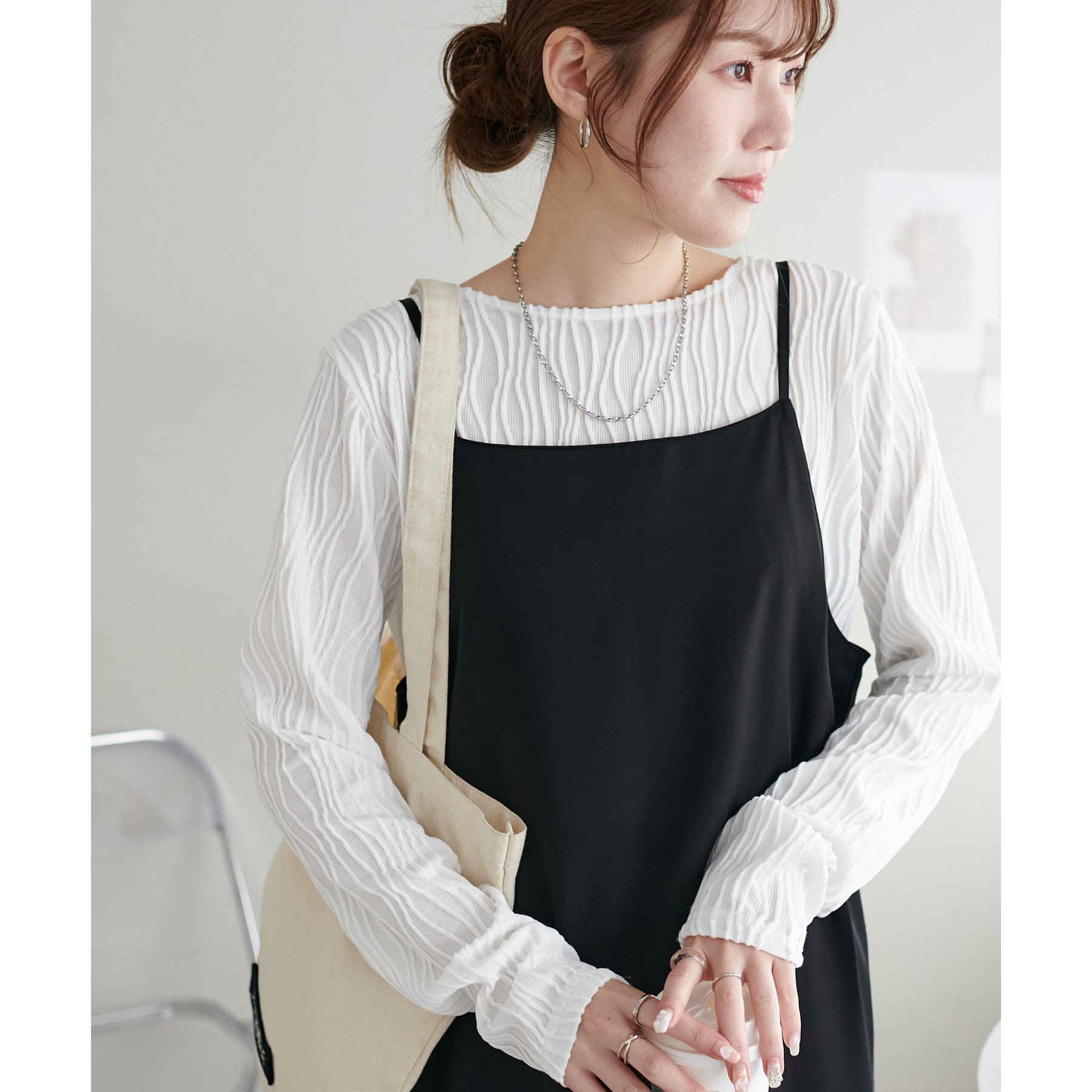 一枚ではもちろんジャケットやキャミワンピースのインナーとしても着回しが楽しめるアイテムです〇