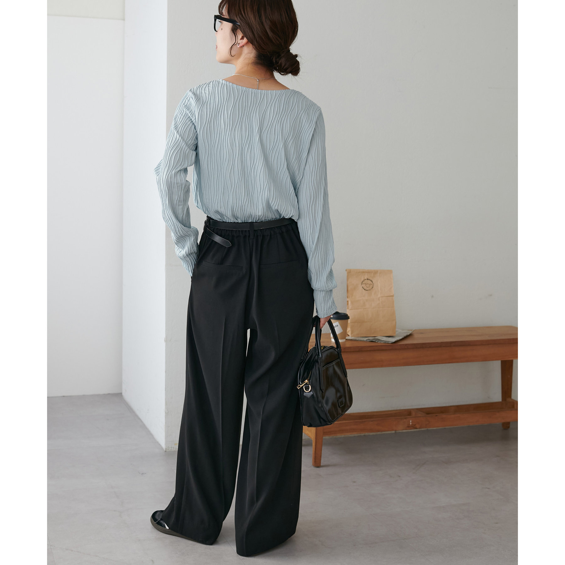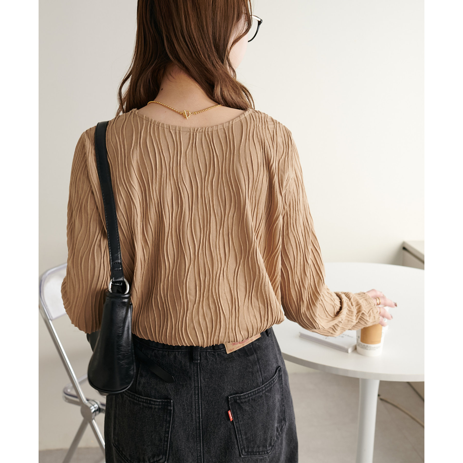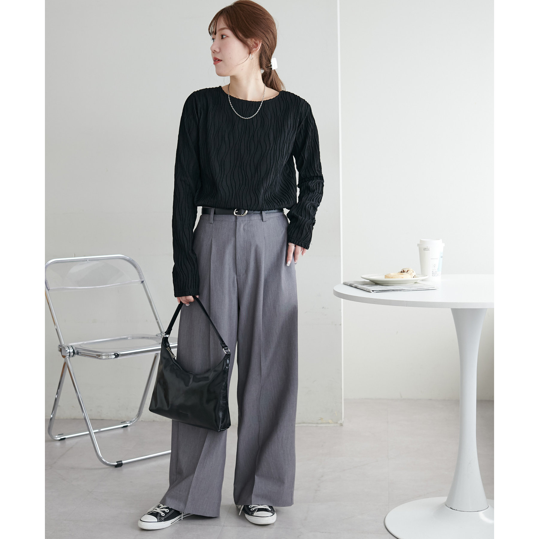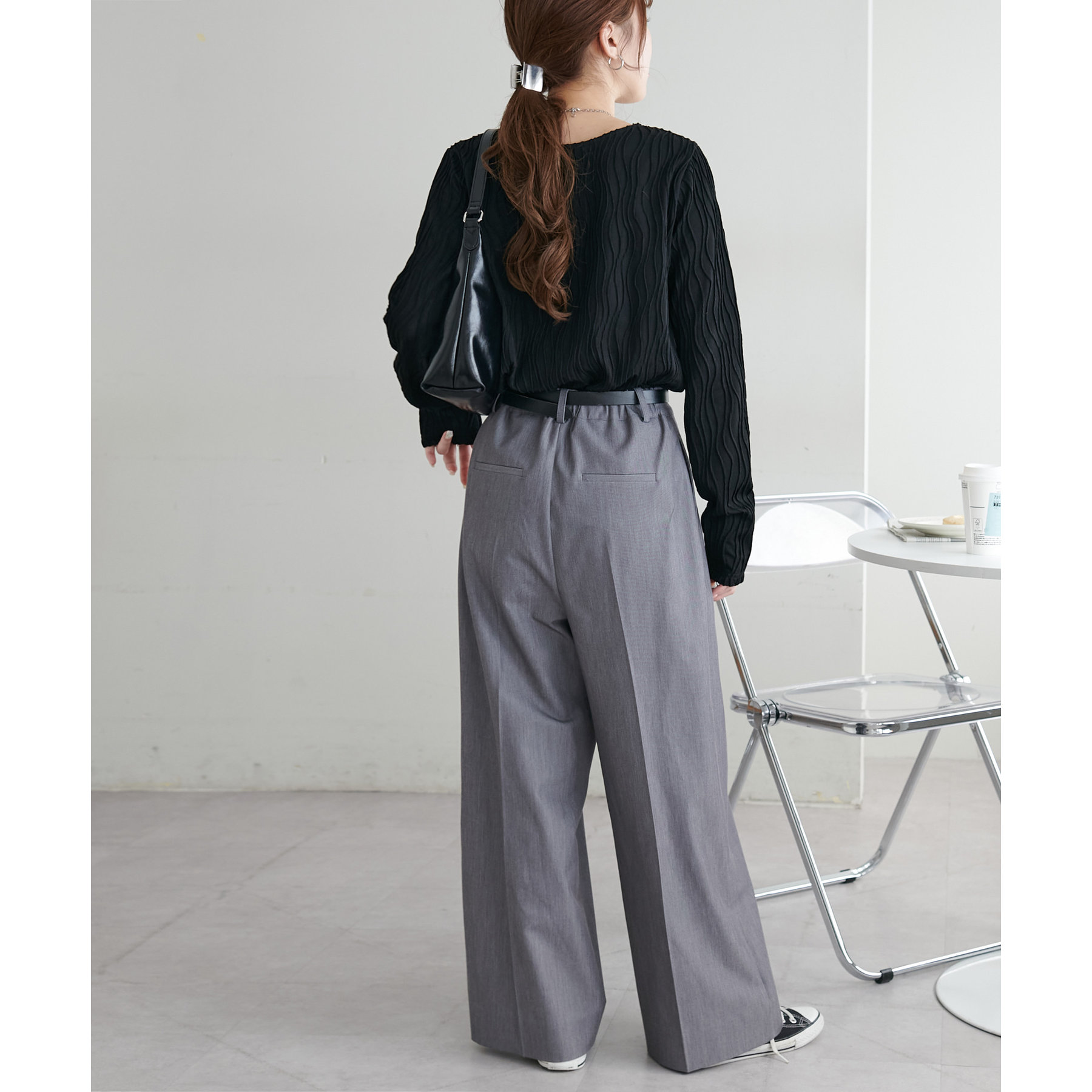 やや伸縮性のある素材感なので、ストレスフリーで着用していただけます。
