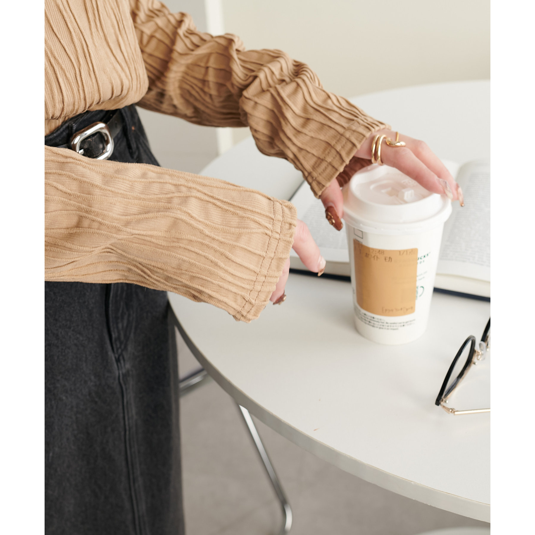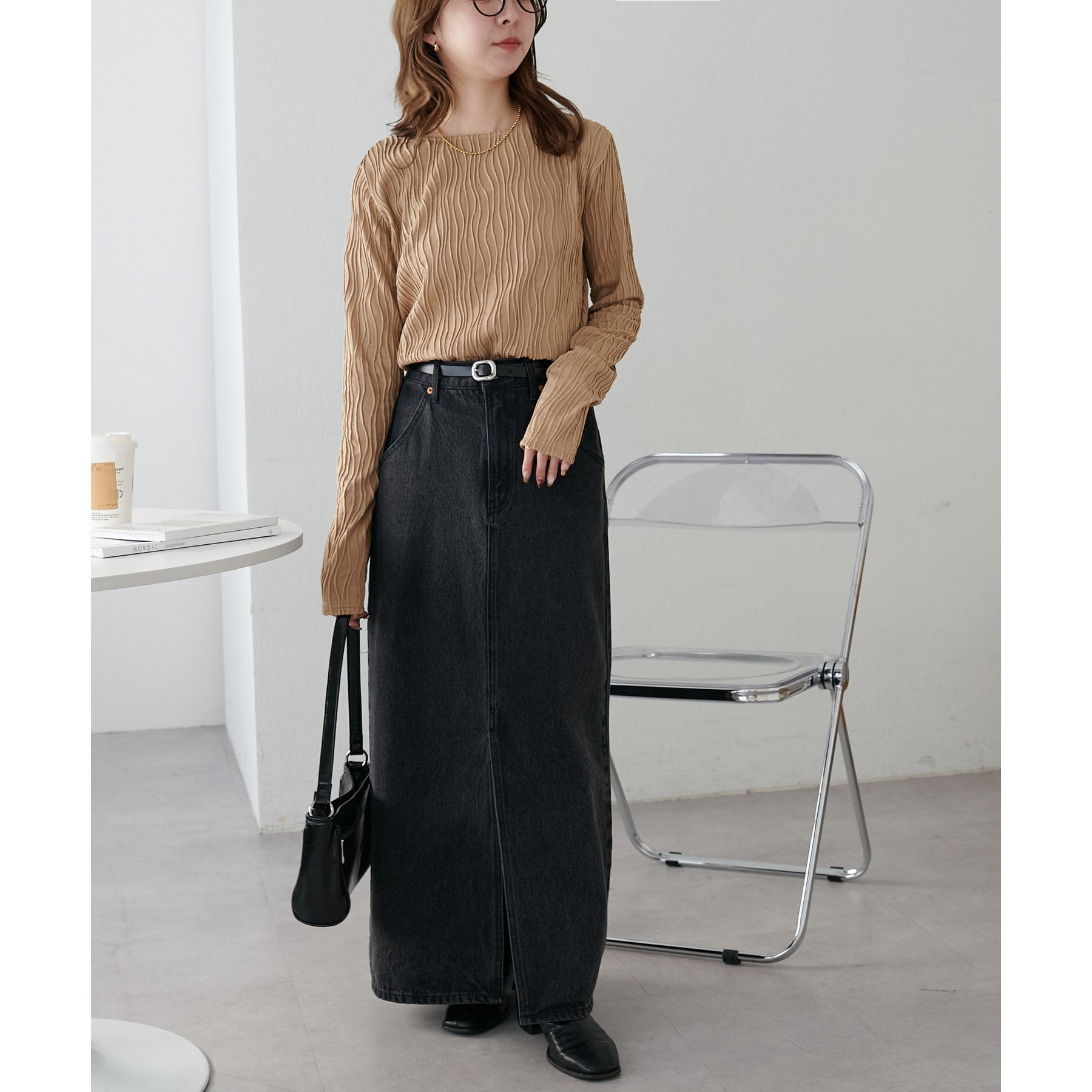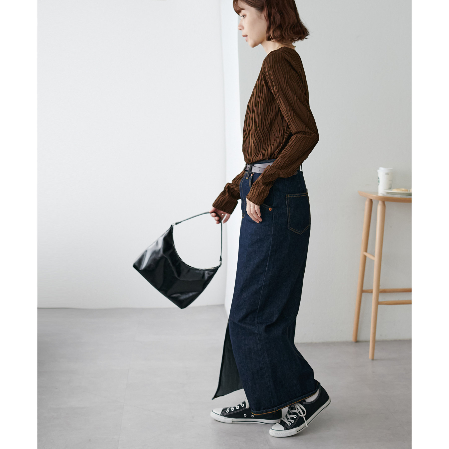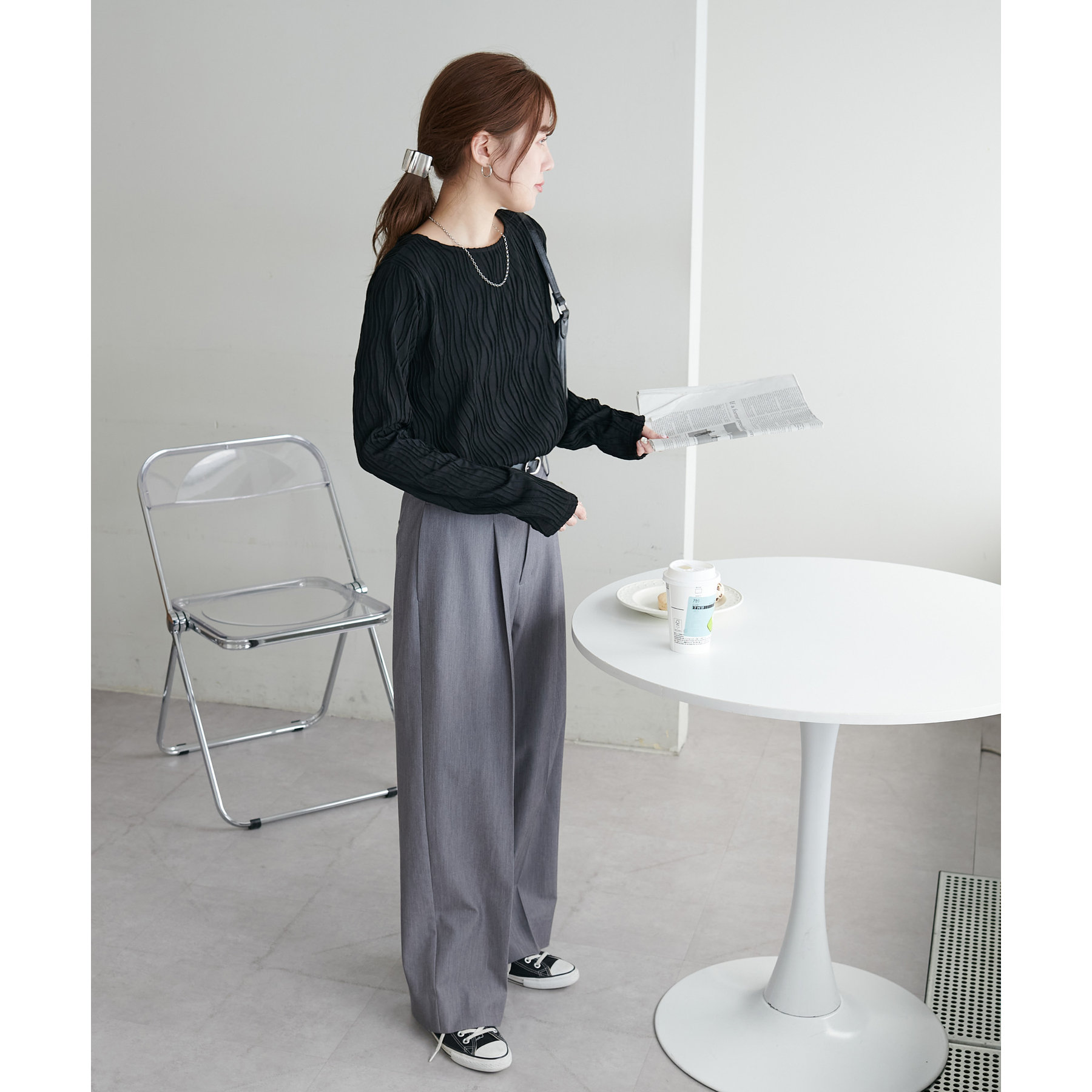 やや伸縮性のある素材感なので、ストレスフリーで着用していただけます。