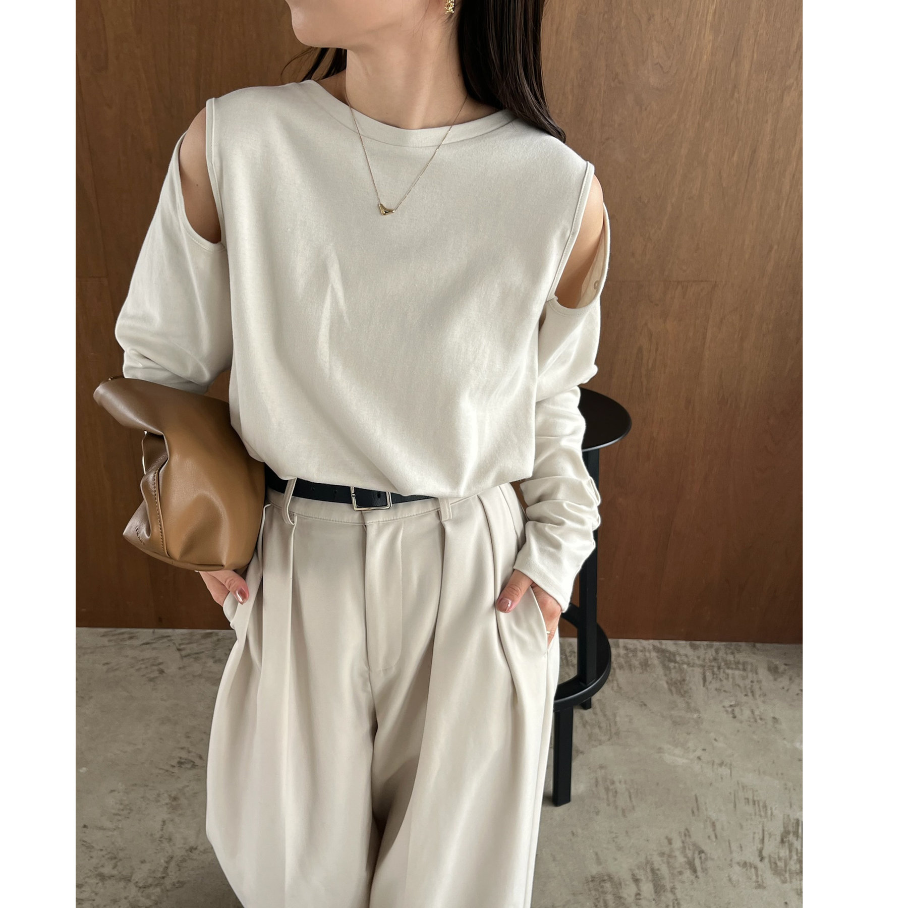 【グレージュ着用アイテム①】2タックワイドパンツ