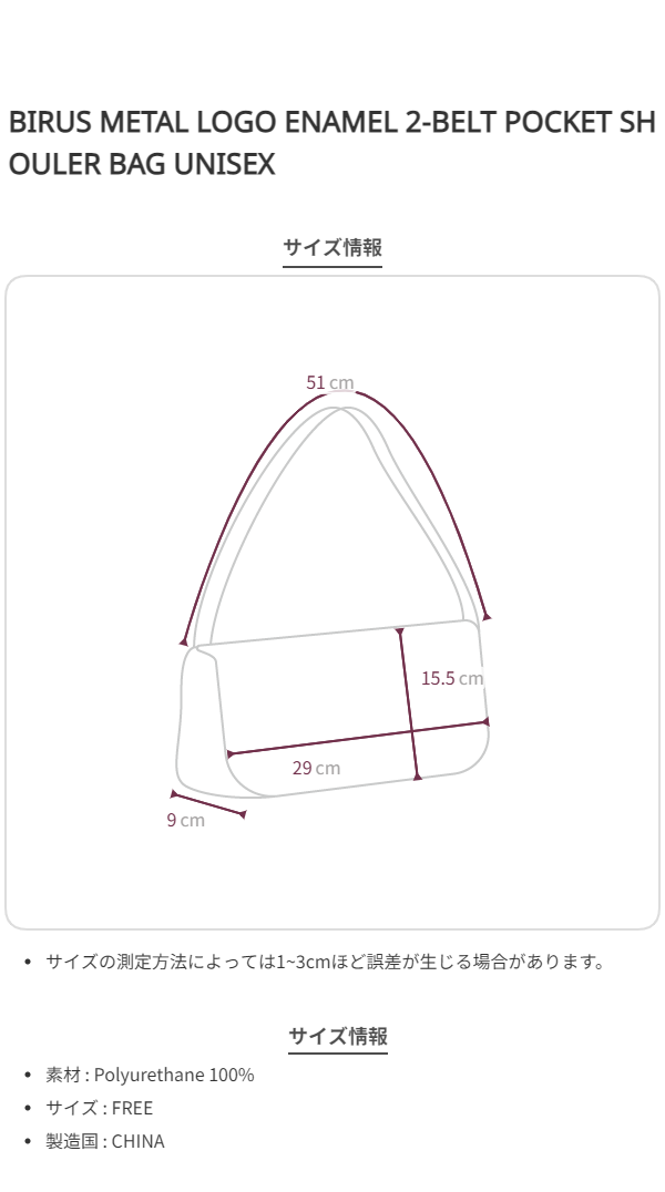 BIRUS METAL LOGO ENAMEL 2-BELT POCKET SHOULER BAG UNISEX