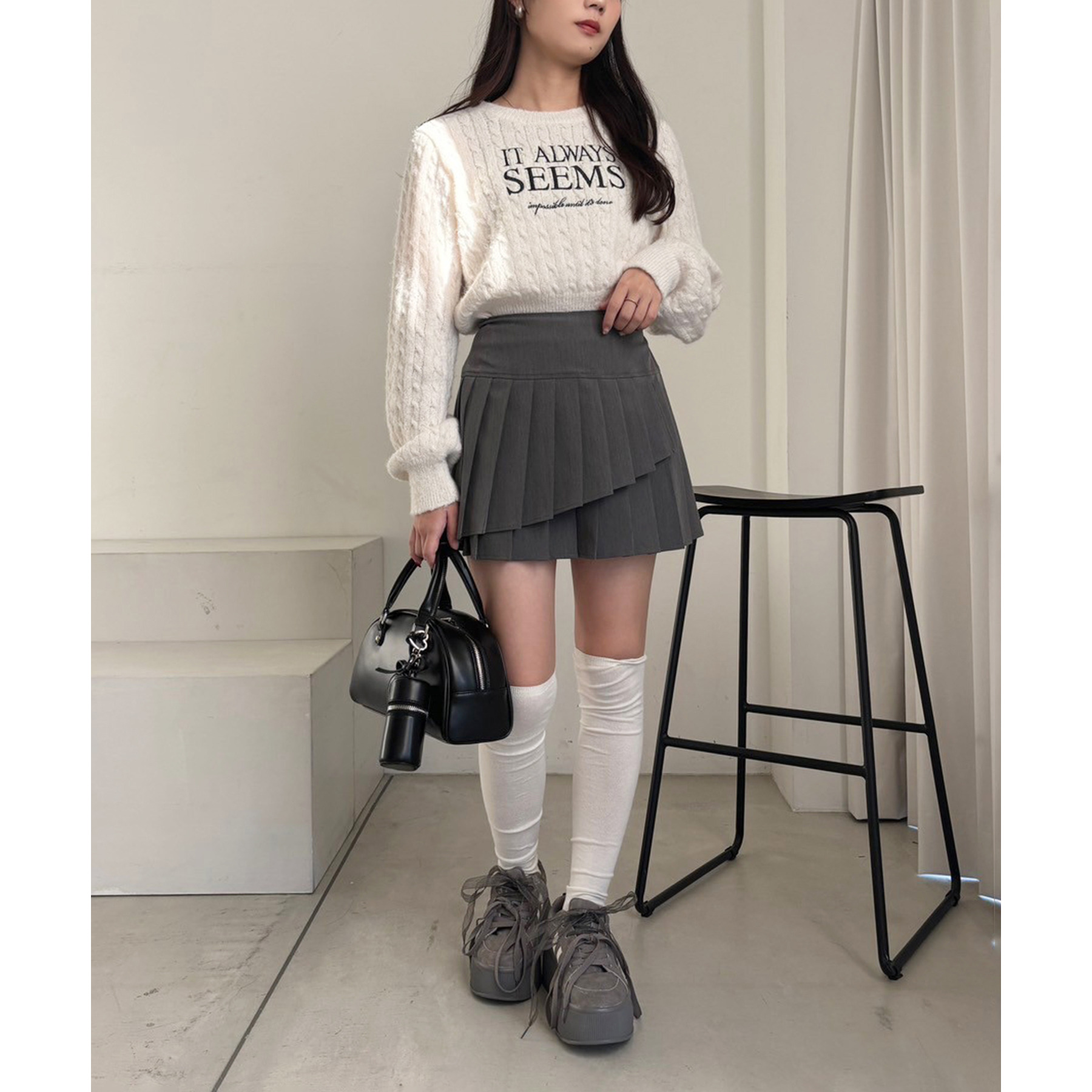 裾からスカートをチラ見せするスタイルも可愛いくてオススメ。