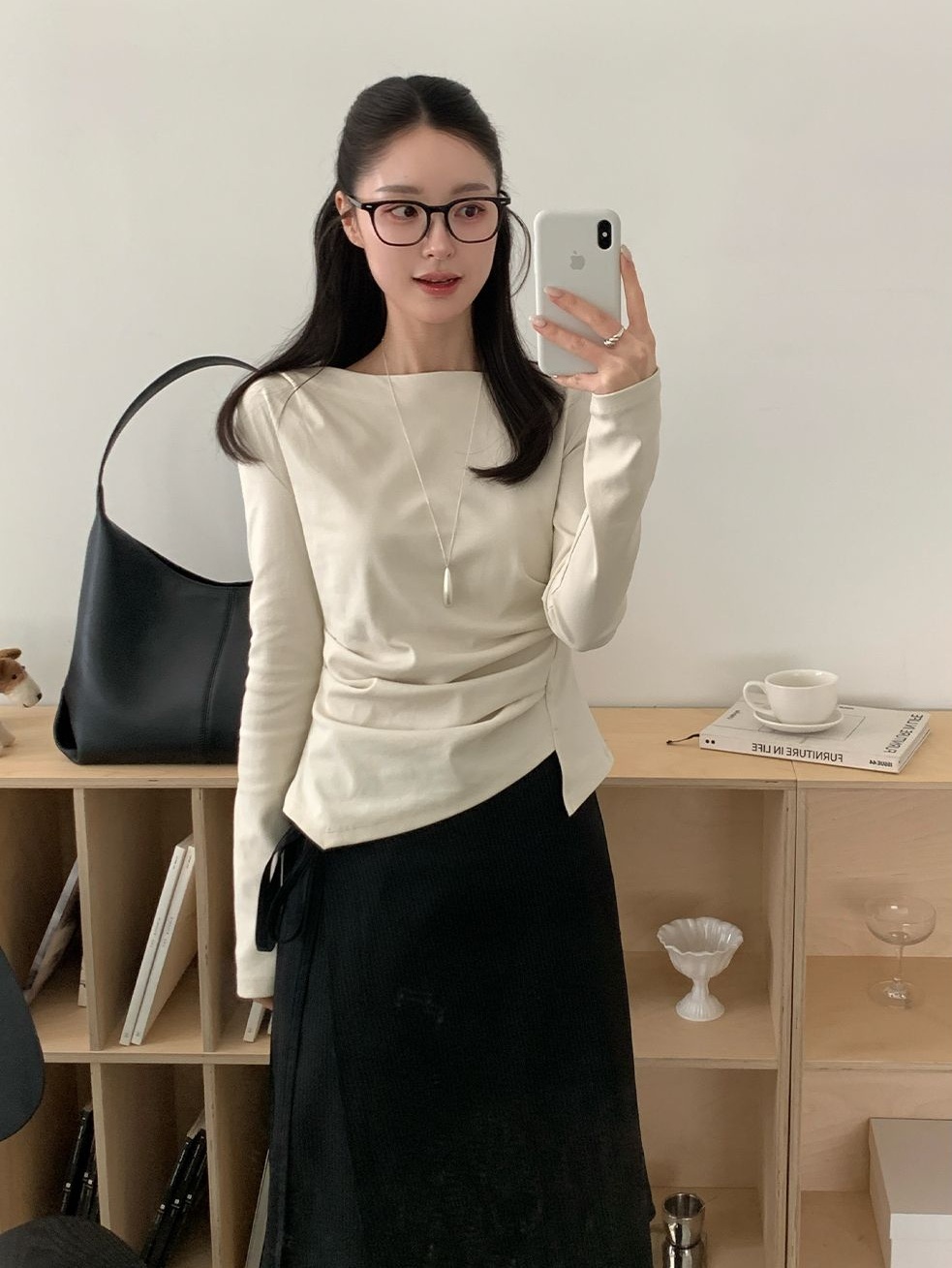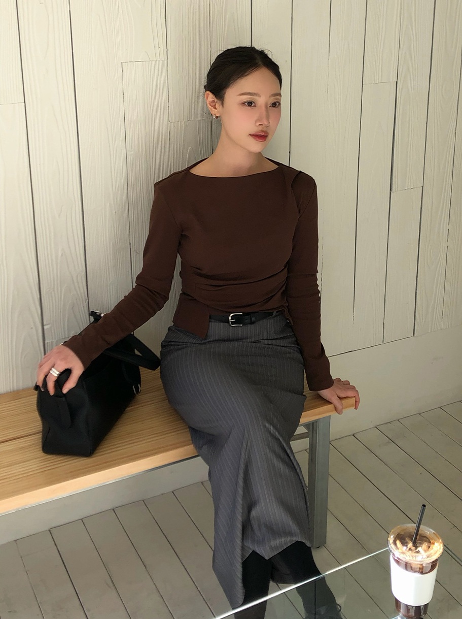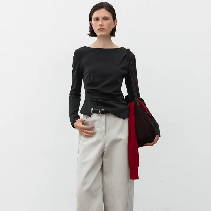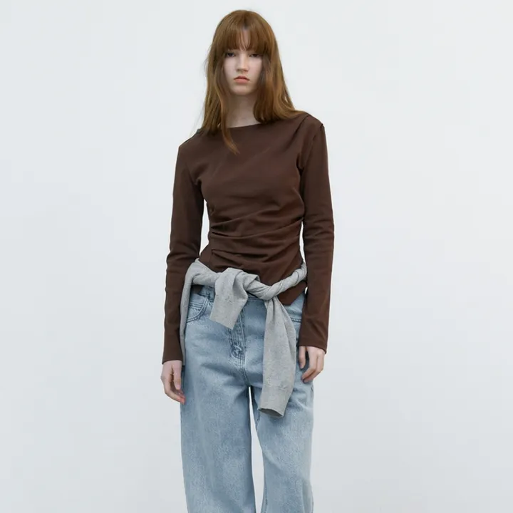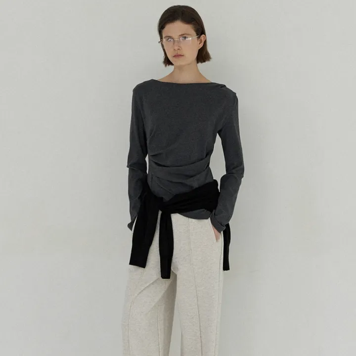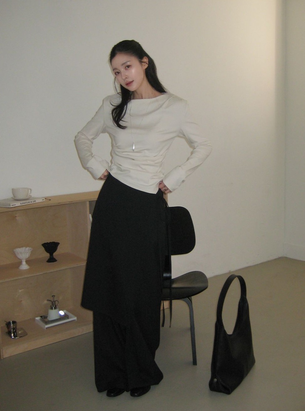 左右アシンメトリーなデザインで、Tブラウス感覚のスタイリングにもおすすめです。