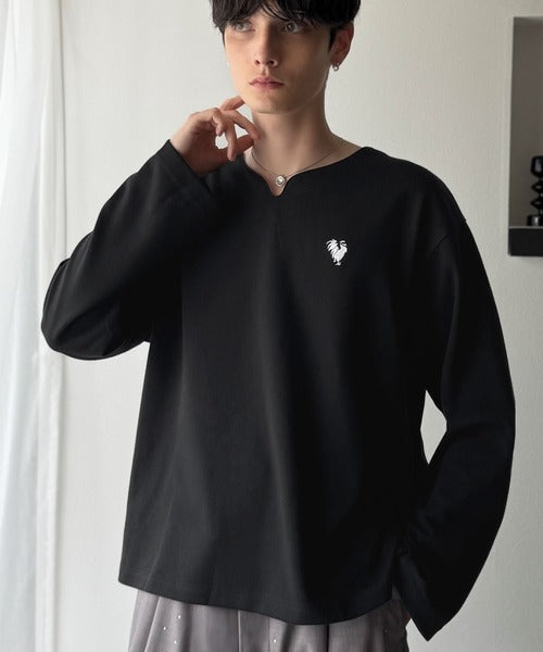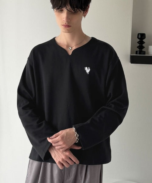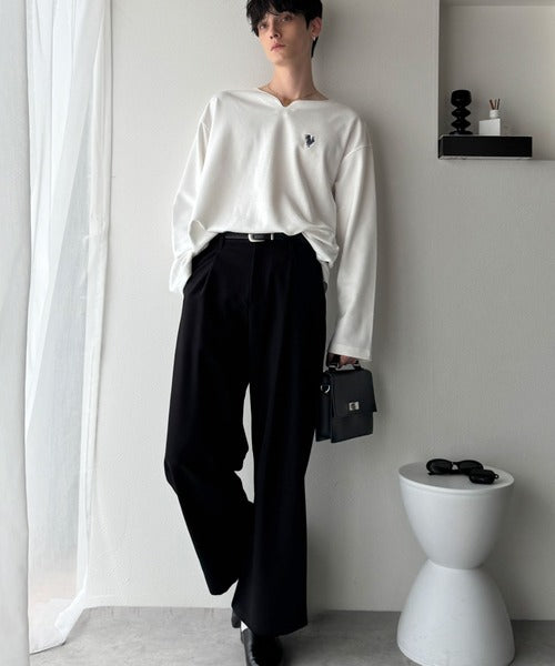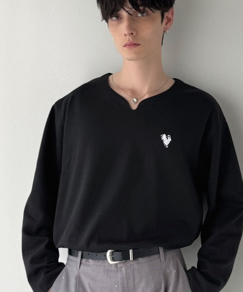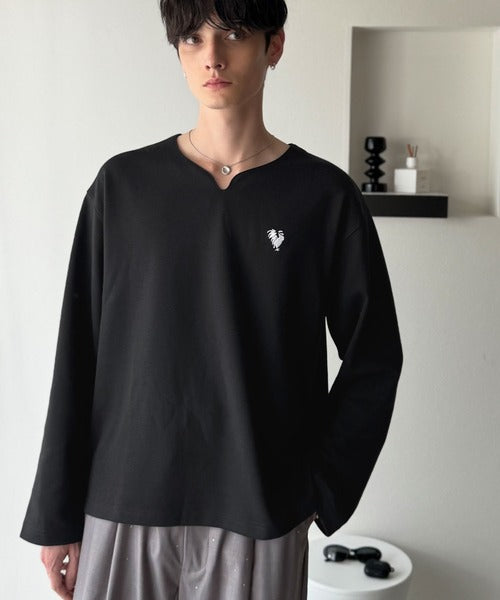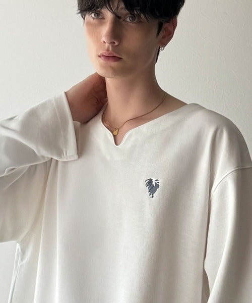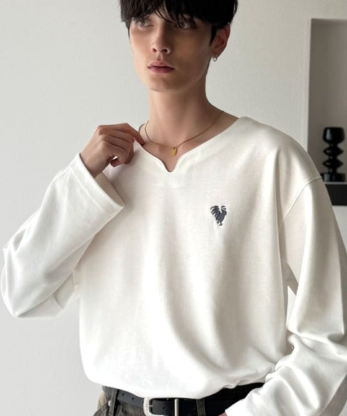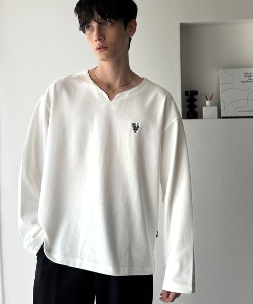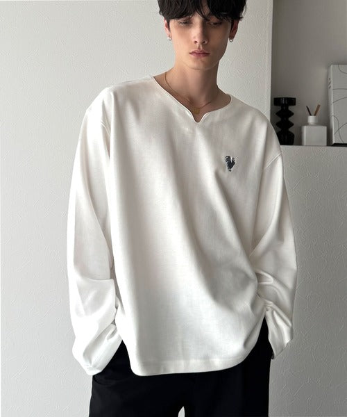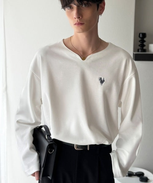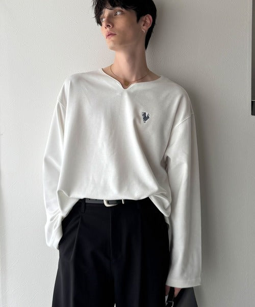 【Classical Origin】「着心地と、上質感と。」Soft Ponte V-Neck T-Shirt/ポンチ素材Vネック胸刺繍Tシャツ(長袖) co1150049