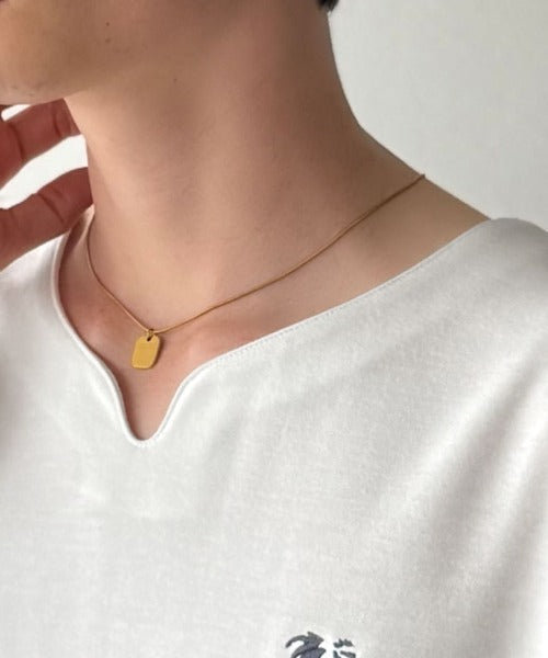 左胸のワンポイントと襟元のカッティング。