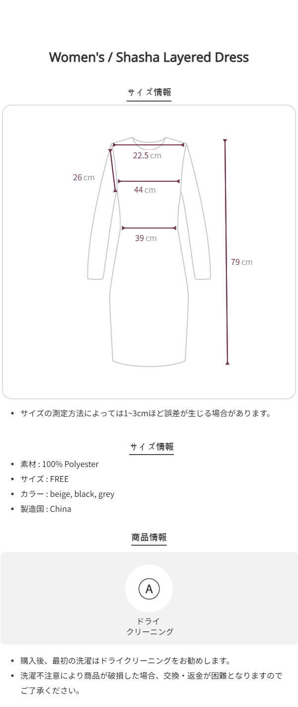 HEIGHT 170cm / BUST 81cm / WAIST 62cm / HIP 90cm